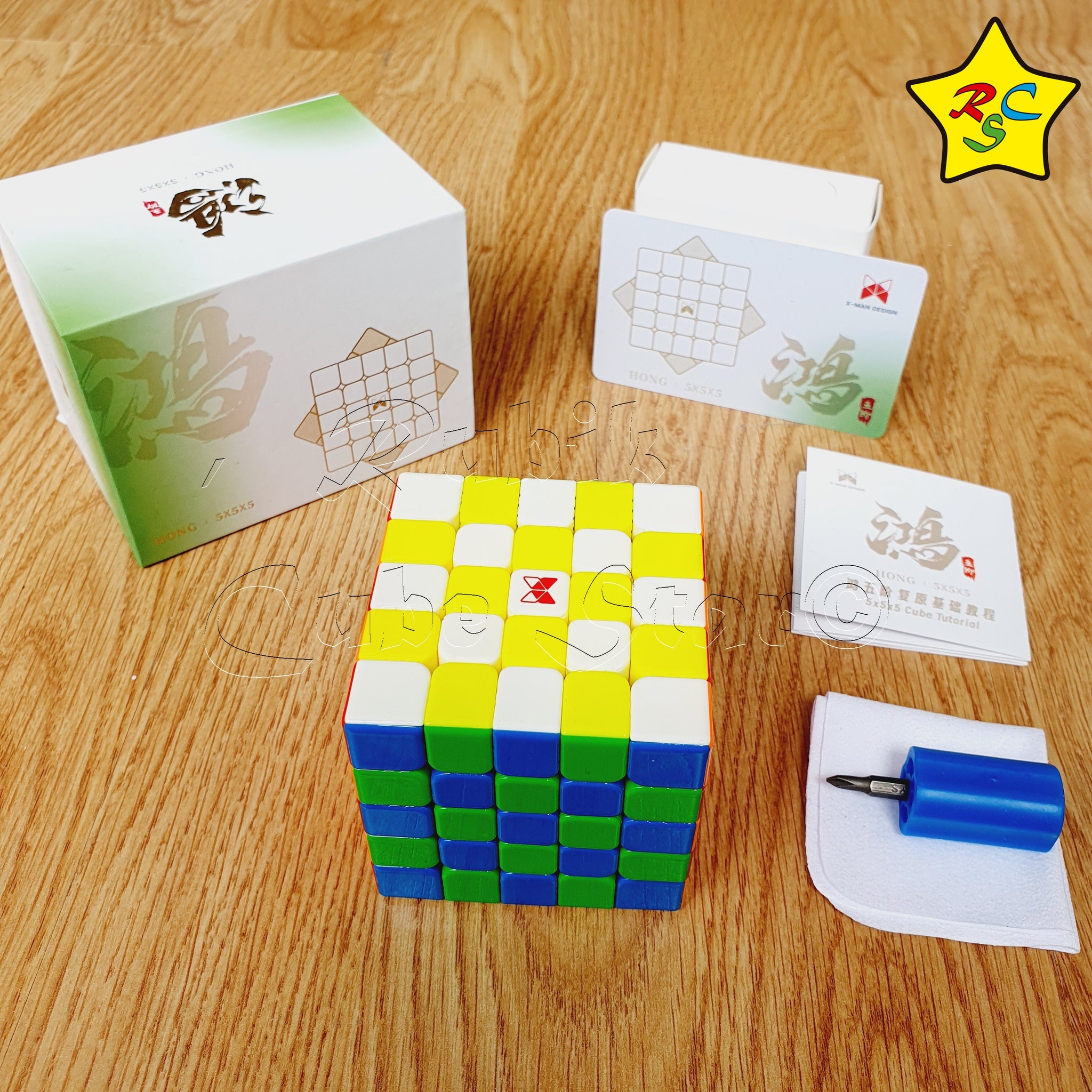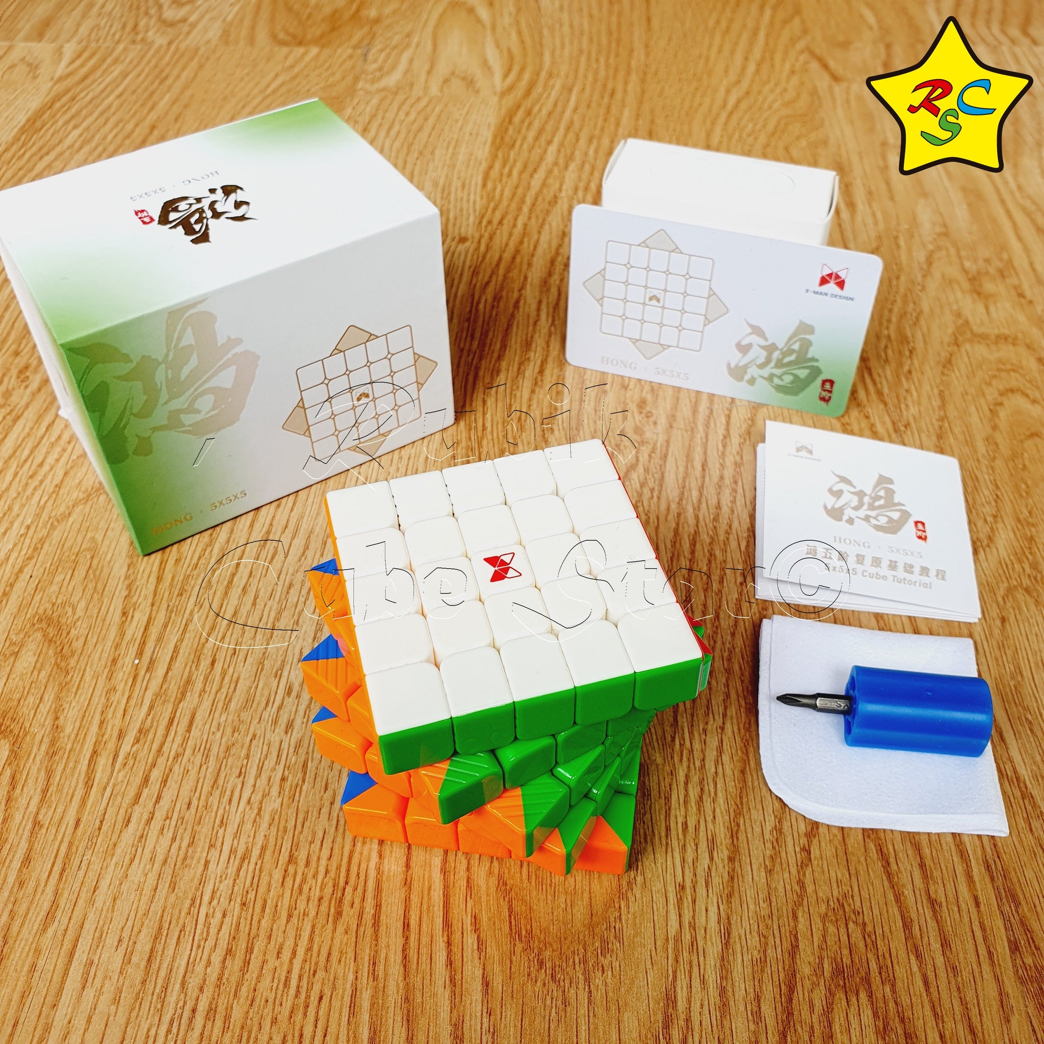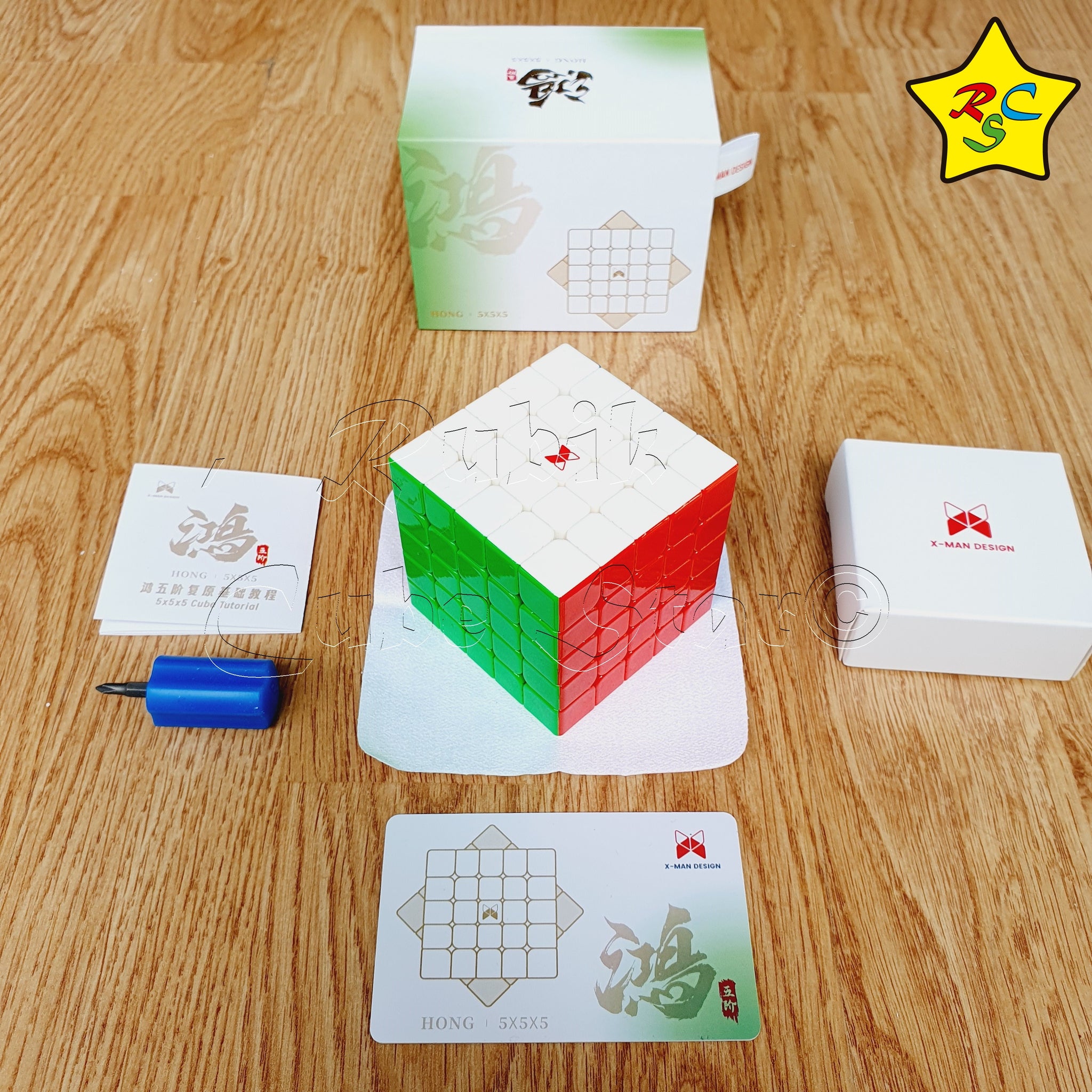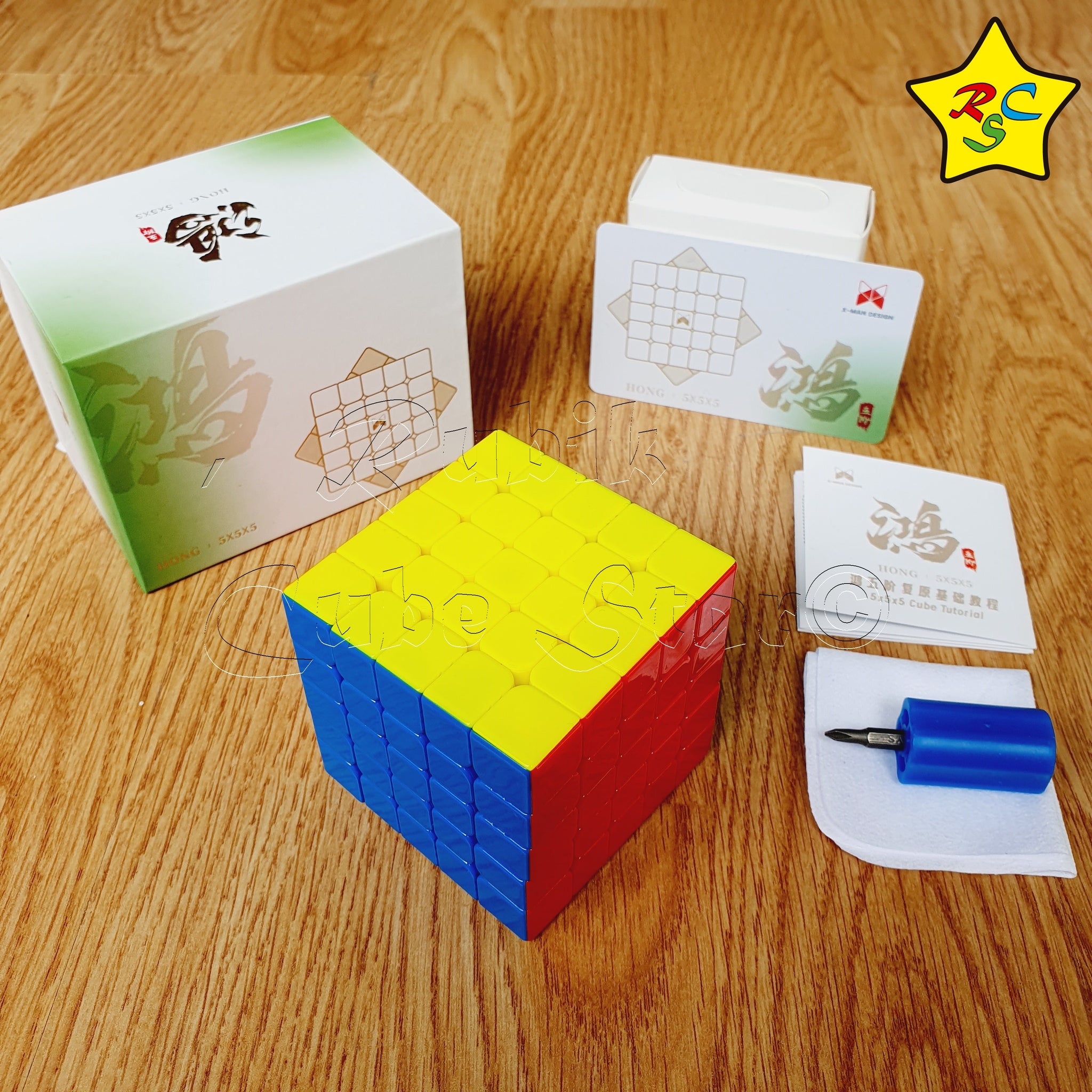Incluye: Cubo 5x5 Hong Xman Design, folleto de instrucciones, destornillador y paño para limpieza