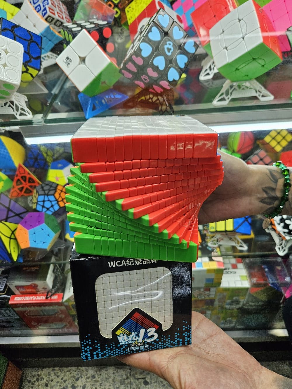 El Cubo 13x13 de Moyu Meilong es una opción ideal para entusiastas y coleccionistas que buscan un cubo de alta calidad con múltiples capas. Este modelo destaca por su diseño compacto y ergonómico, que facilita su manejo a pesar de su tamaño y número de piezas. Su sistema de giro es suave y fluido, lo que permite resolverlo cómodamente, convirtiéndolo en uno de los cubos 13x13 más accesibles en términos de precio y calidad.