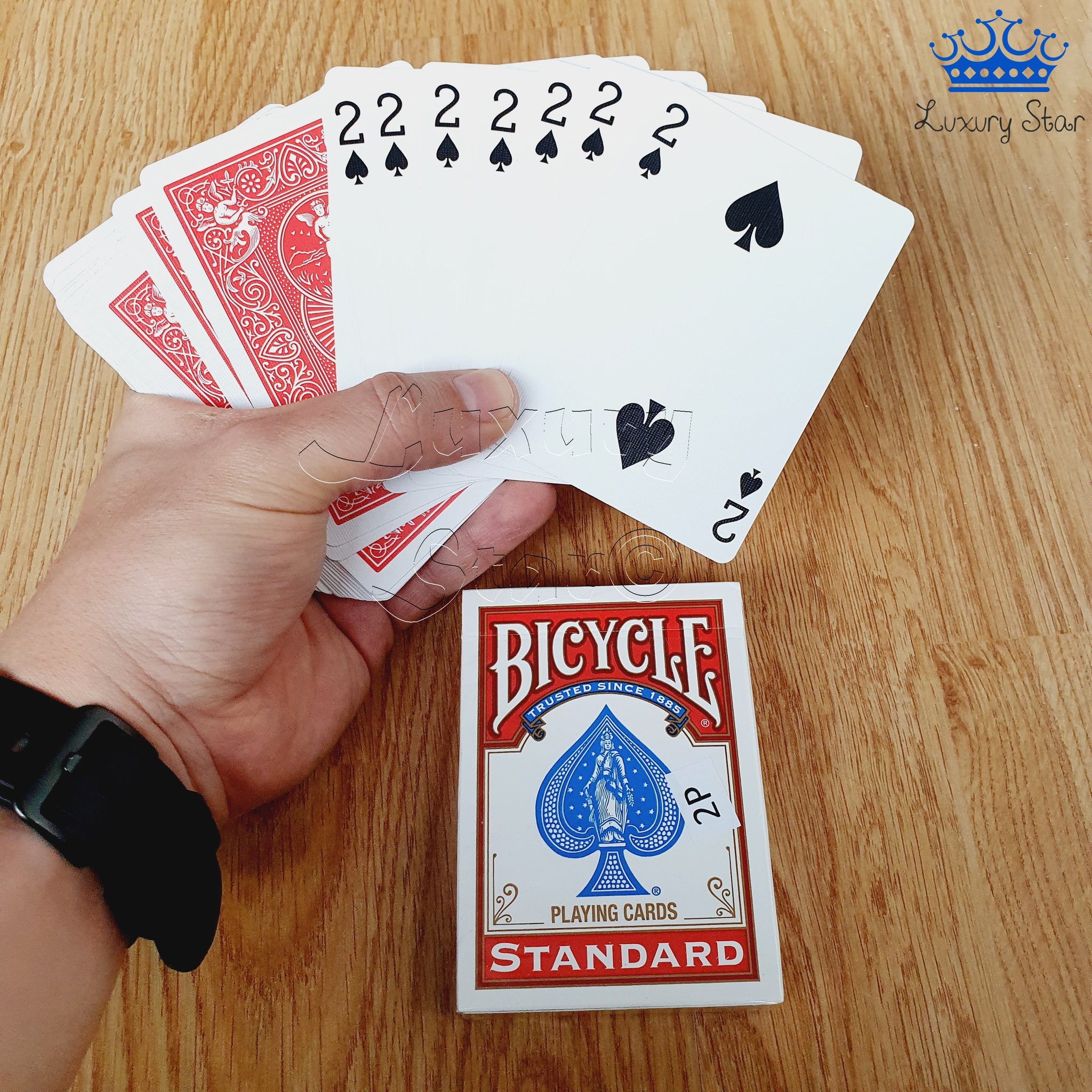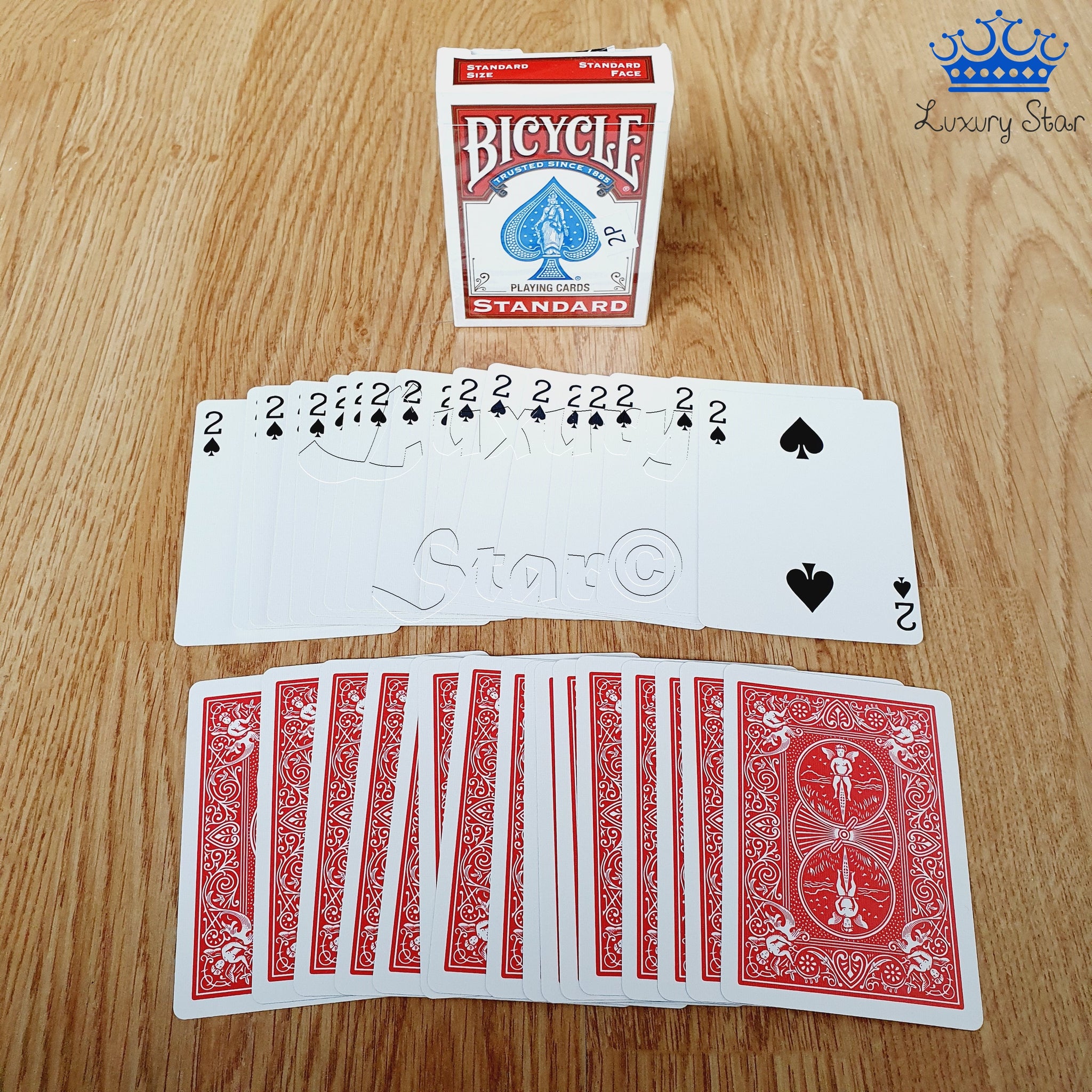En esta ocasión la baraja es trucada, cuenta con 52 cartas clásicas standard dorso rojo pero todas las caras son el 2 de picas negro, esto, con el fin de ser usada para algunos trucos especiales y/o ser combinada con otras barajas para diferentes trucos.