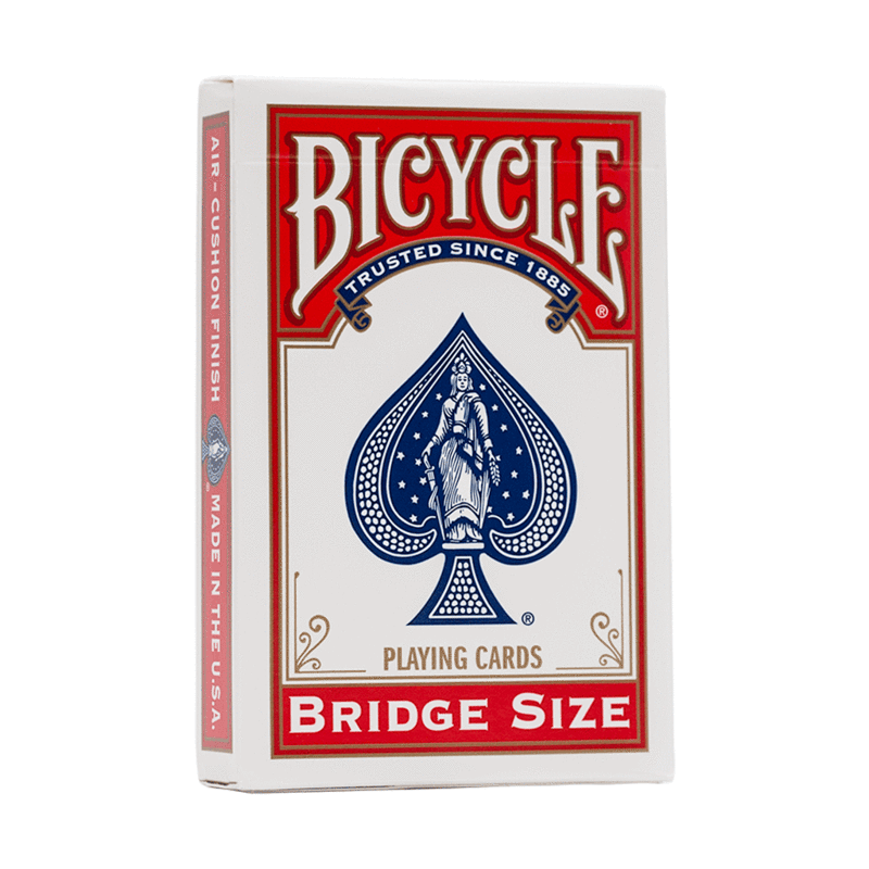 La marca Bicycle se caracteriza por manejar Cartas de excelente calidad, con diferentes diseños y funcionalidades. Fueron creadas a mediados del siglo XIX, es utilizada por su alta calidad, su precio accesible y su textura Air Cushion (Tramado con aspecto de tela o nylon), ideal para un mejor agarre y mayor duración.Las cartas Bicycle son utilizadas por profesionales para Cartomagia, Poker, juegos de destreza y todo tipo de juegos de mesa. La Baraja Bicycle Bridge cuenta con un diseño de Ciclas de forma Simétrica en su dorso. Se diferencia de las demás por tener ¼ de pulgada de ancho más pequeño, teniendo unas medidas 5.7cm de ancho por 8.8cm de largo, ideales para un mejor agarre y manejo.