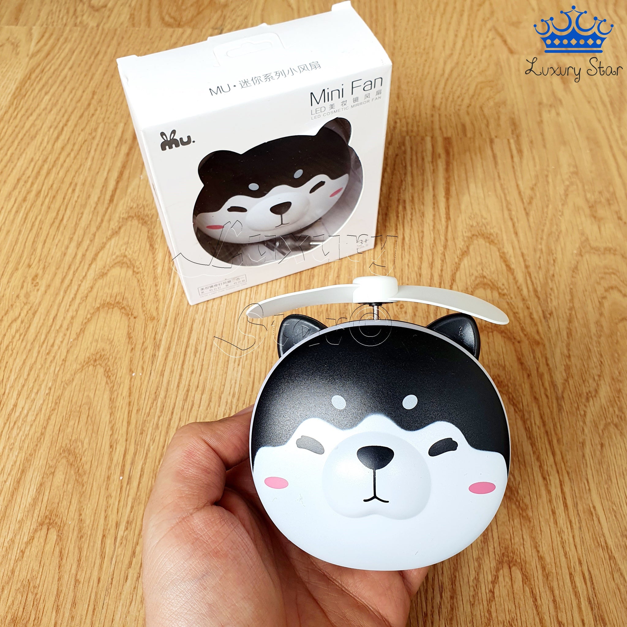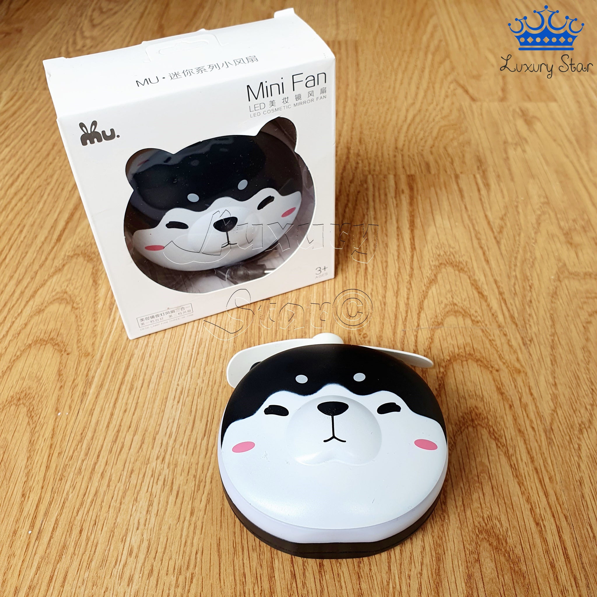 Espejo Mini Ventilador Perro Recargable Portatil Con Luz Led