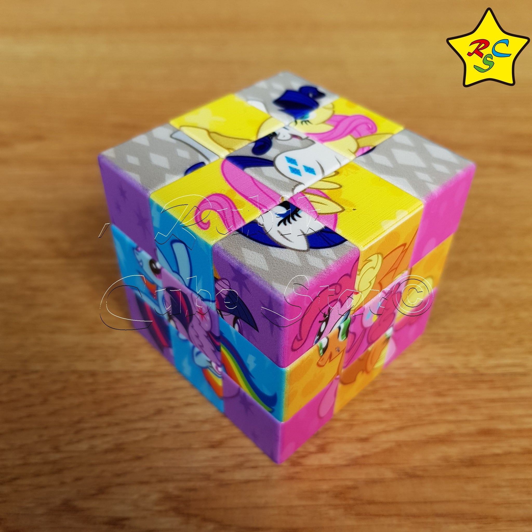 Excelente modificación del cubo de 3x3x3 un gran diseño y cabados geniales de My Little Pony, una de las mejores modificaciones del cubo agregando un poco de dificultad al identificar las piezas y orientar las piezas, con un diseño único y llamativo para los niños que se interesen en los cubos.Es un gran pasatiempo que desarrolla habilidades cognitivas y destreza motriz, muy bueno para niños pequeños.
