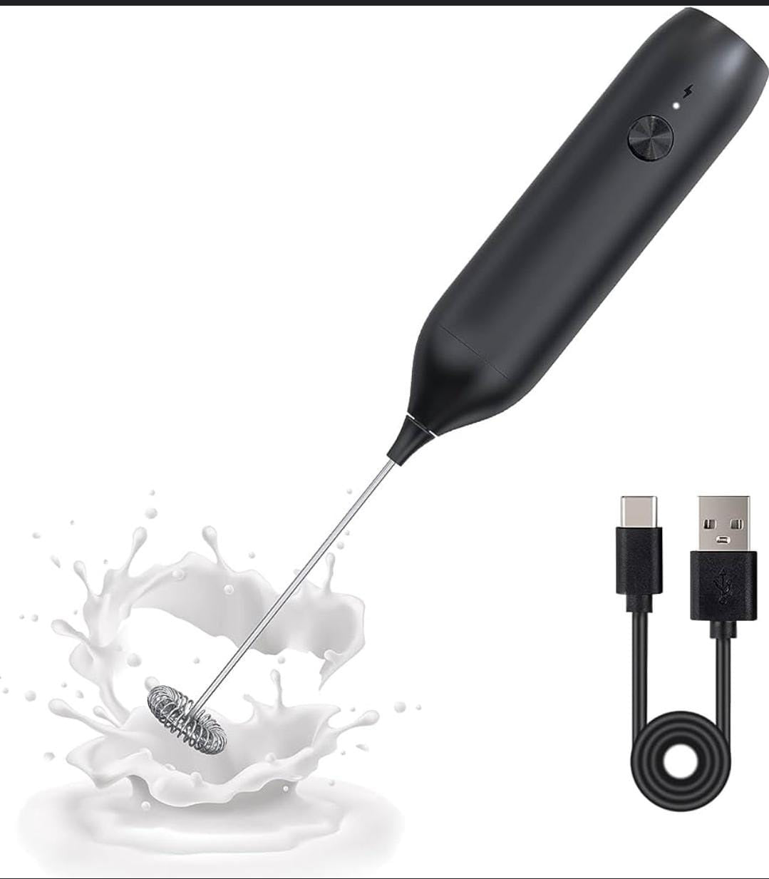 Incluye: 1 mini batidor/espumador portátil con su caja, manual de instrucciones en inglés y cable de carga