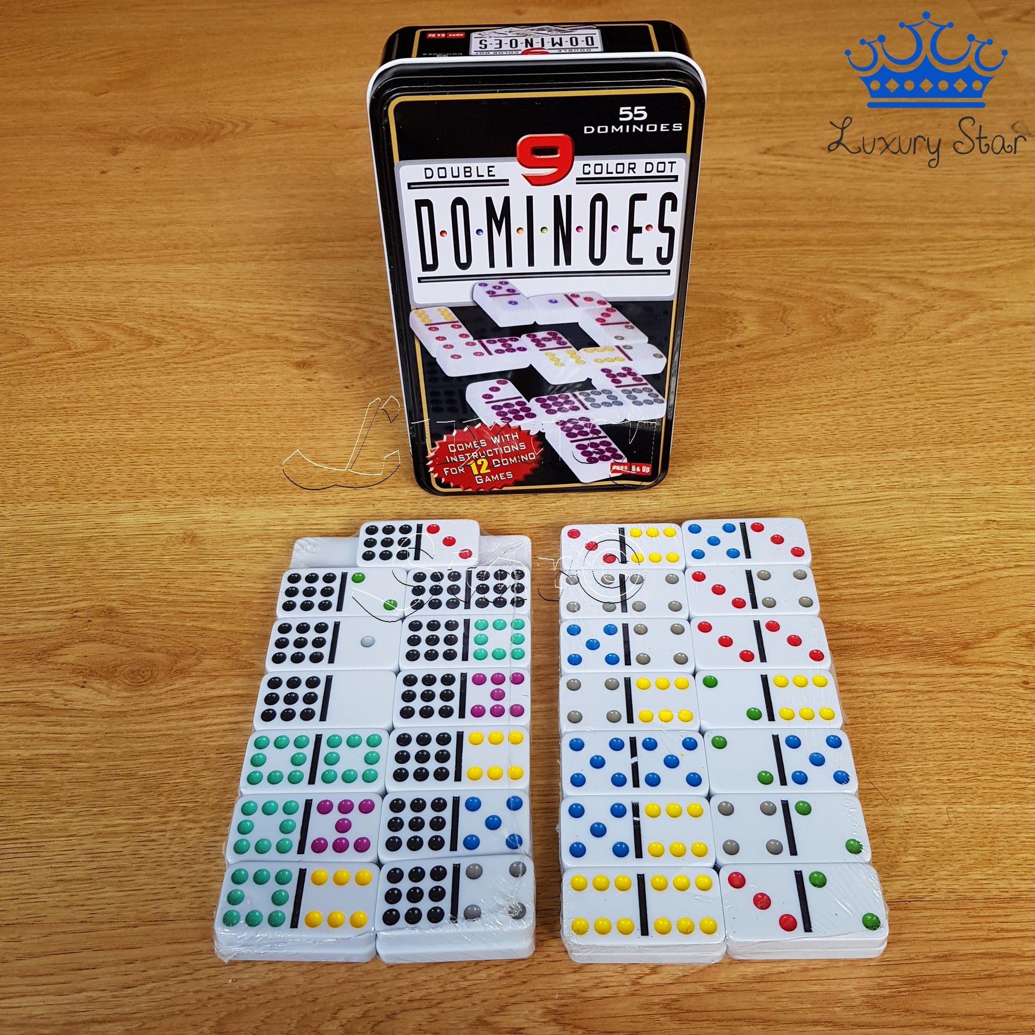 Domino 55 Fichas Color Doble 9 Juego Mesa Caja Metalica