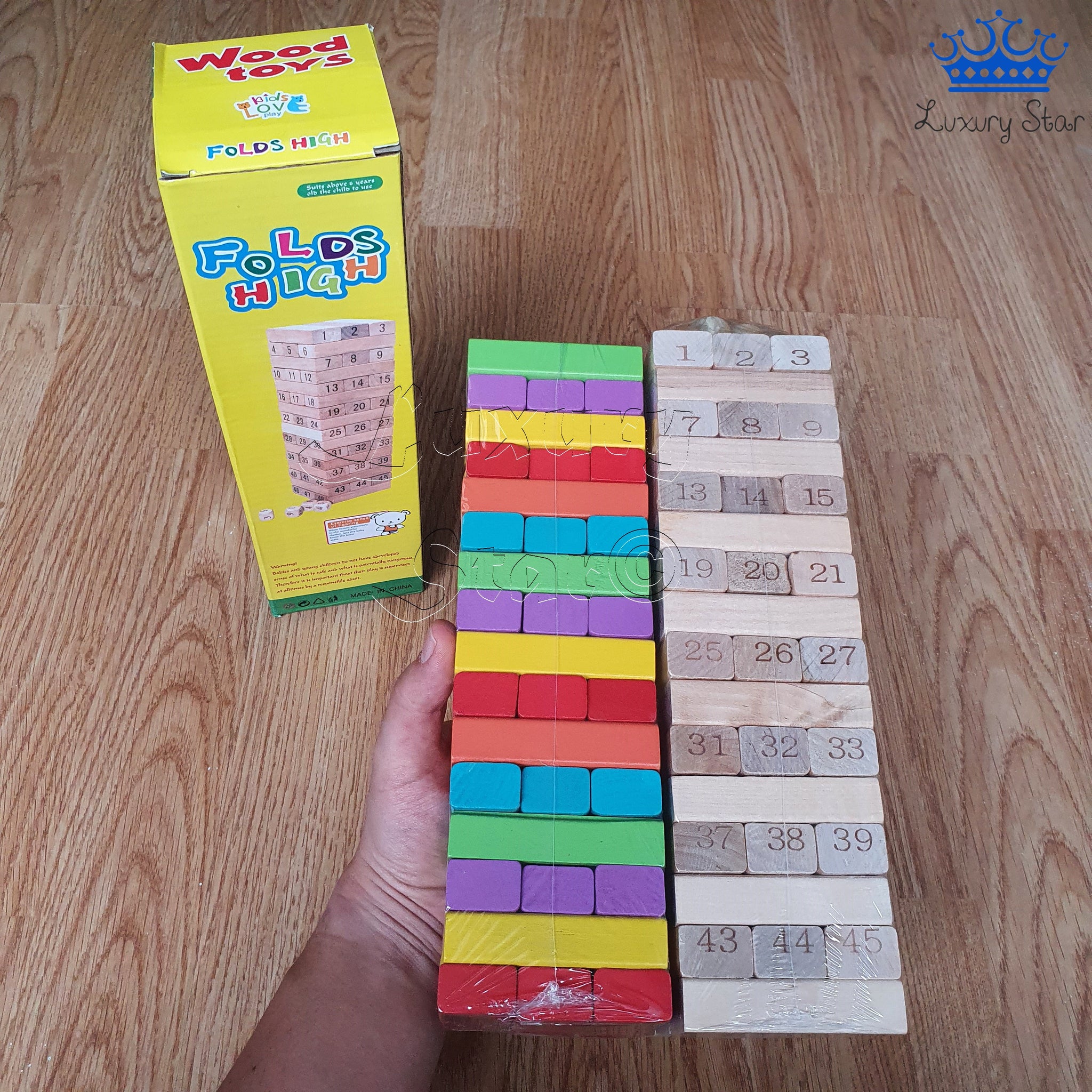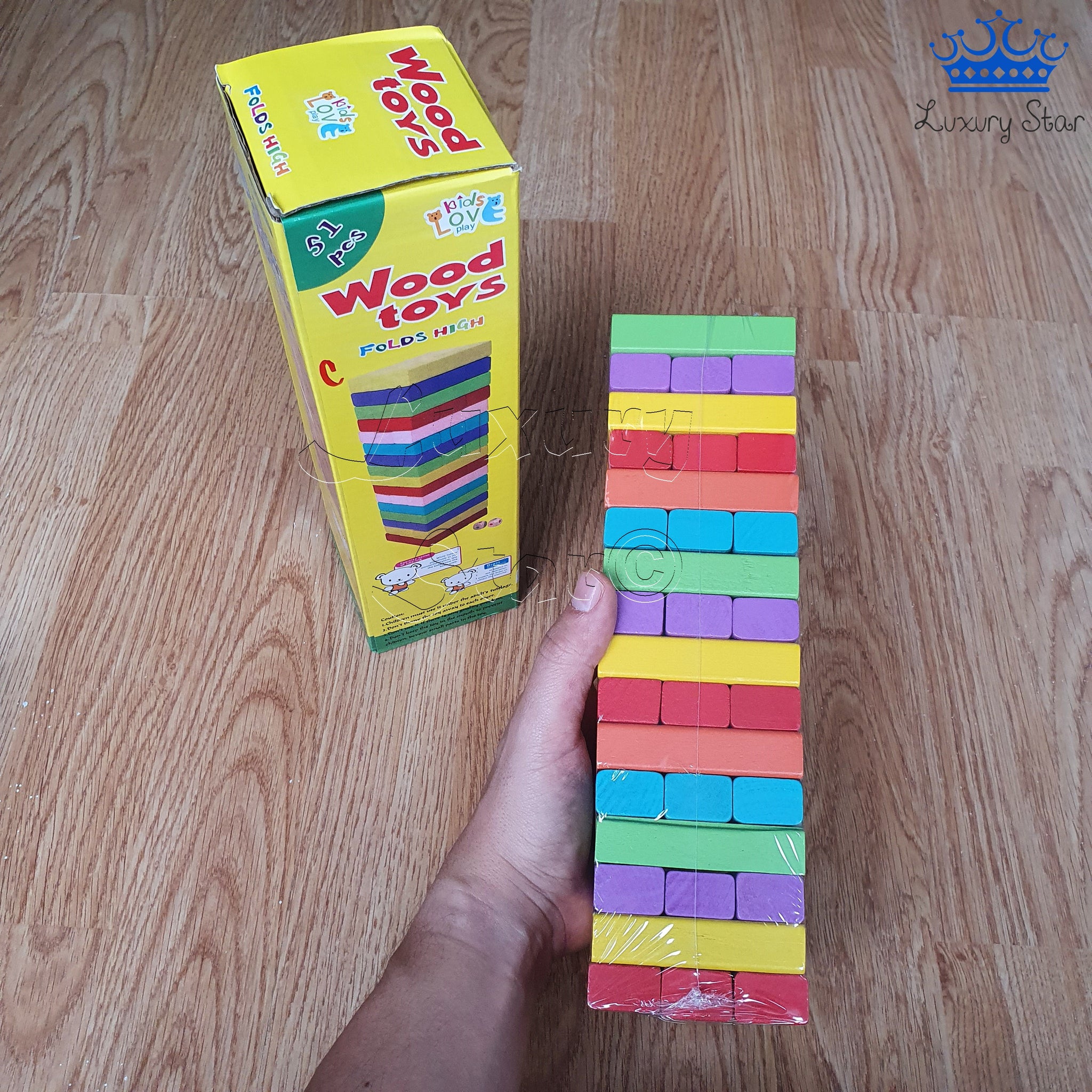 Jenga Madera Grande Apilar Bloques Numerico o Multicolor + Dados