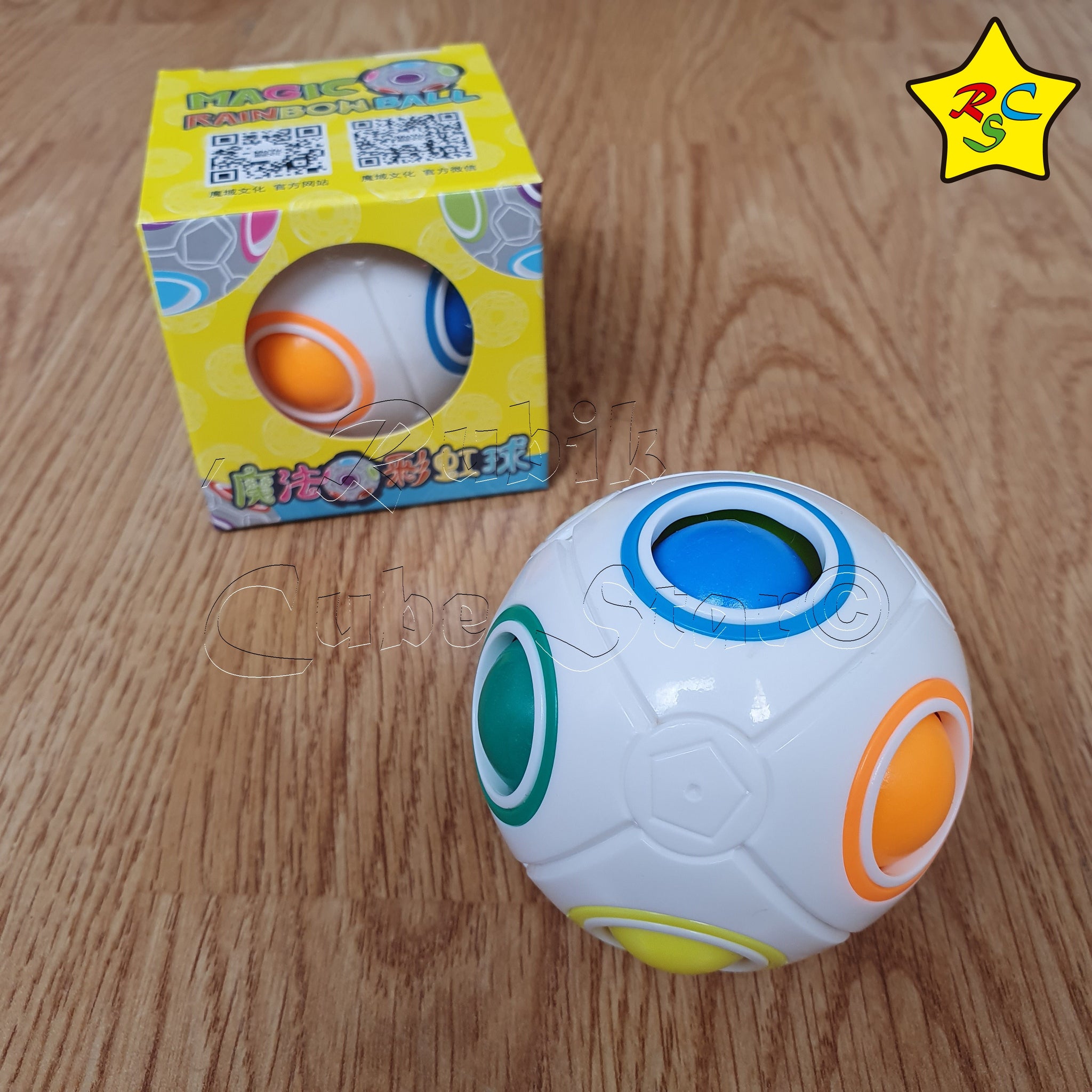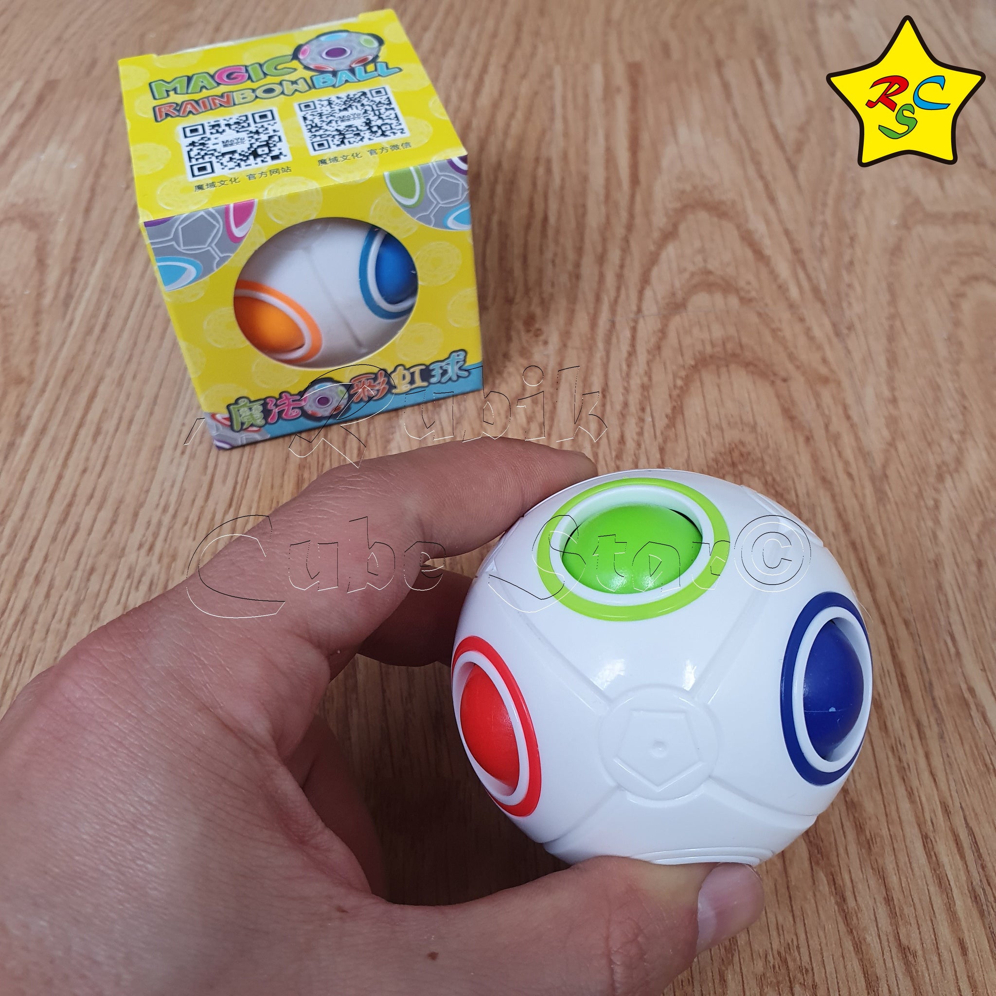 La Rainbow es un puzzle didáctico en forma de esfera que cuenta con 8 orificios y 7 bolas de diferentes colores que se puede ir desplazando a lo largo de la esfera utilizando el orificio vacio y ayudándose del dedo indice o pulgar para desplazarlas, el objetivo del rompecabezas es conseguir que el color del anillo coincida con el color de la bola quedando vacio unicamente el orificio con el anillo de color blanco