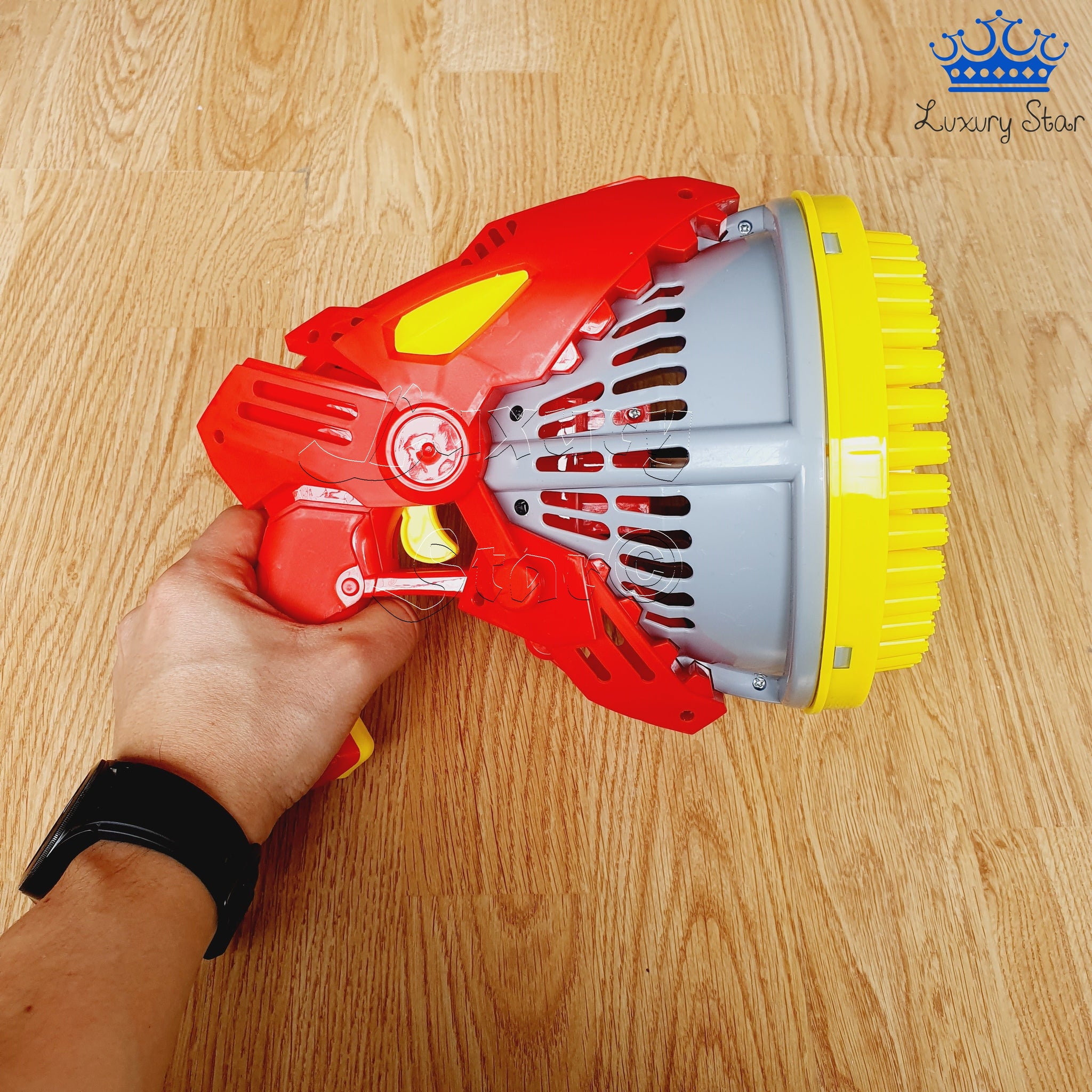 El Burbujero Gigante es una innovadora versión eléctrica del tradicional juego de hacer burbujas, transformándolo en una experiencia mágica y espectacular. Diseñado como una pistola futurista, este dispositivo cuenta con un plato grande en su boquilla, perforado con múltiples agujeros para la creación de burbujas. Al accionar el gatillo, se activa un potente ventilador ubicado detrás del plato, que al combinarse con la solución jabonosa en la boquilla, genera un verdadero torrente de burbujas al "disparar". Este asombroso efecto crea un espectáculo visual único, ideal para disfrutar en compañía de familiares y amigos, llenando cualquier ambiente de alegría y diversión.