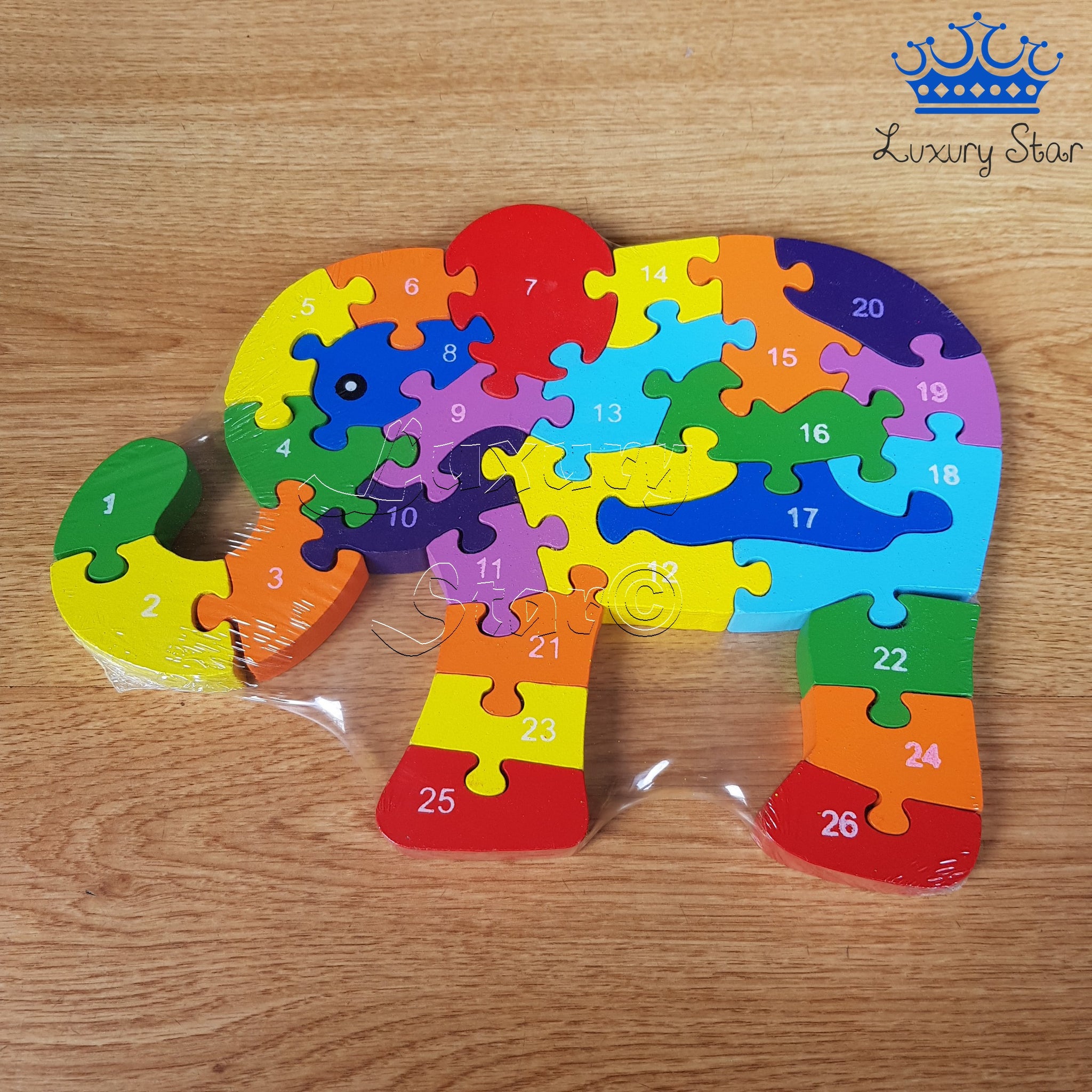 Hermoso juguete educativo que consta de 26 bloques de madera con excelente acabados, Consiste en fichas moldeadas de rompecabezas de diferentes colores, con números y letras por sus dos caras.