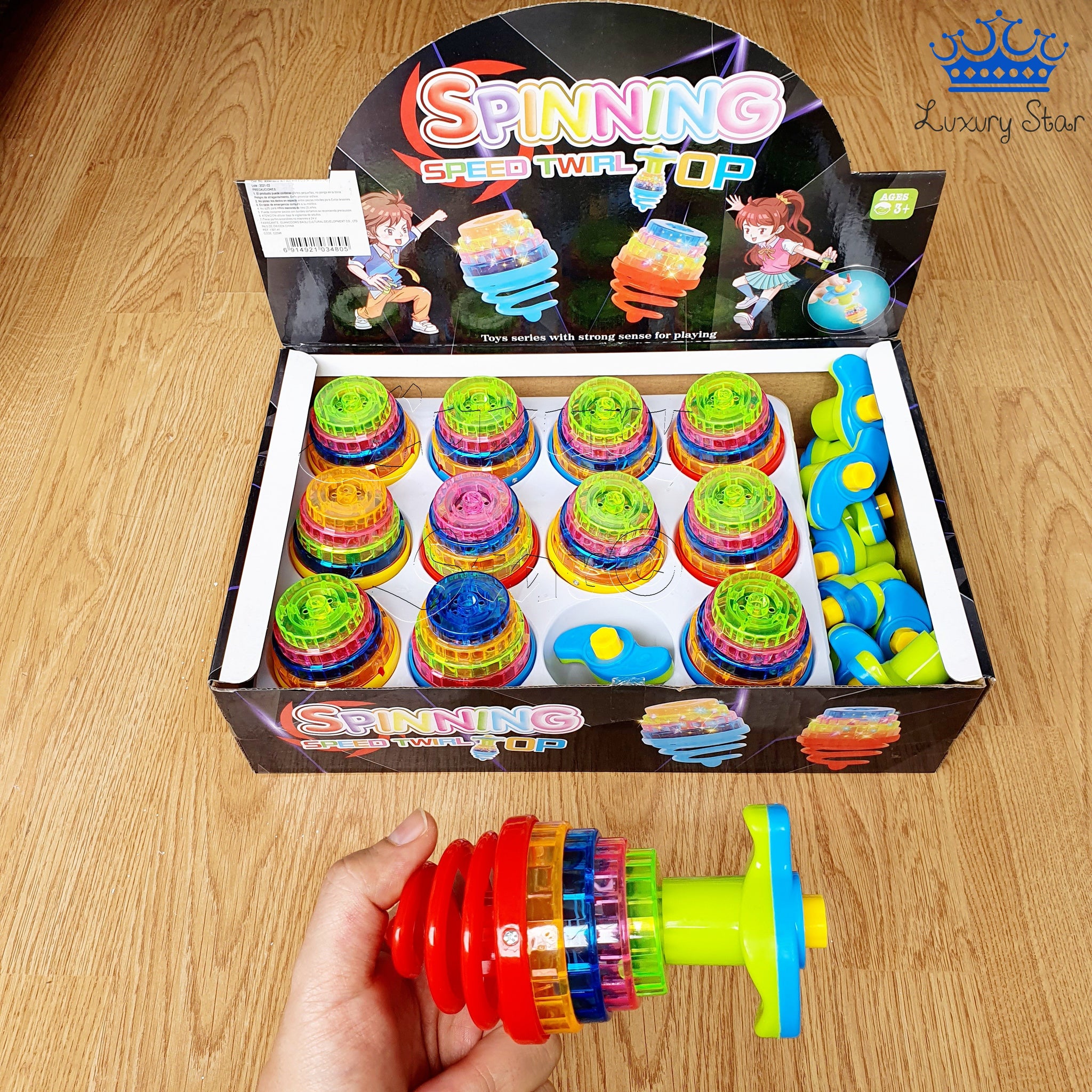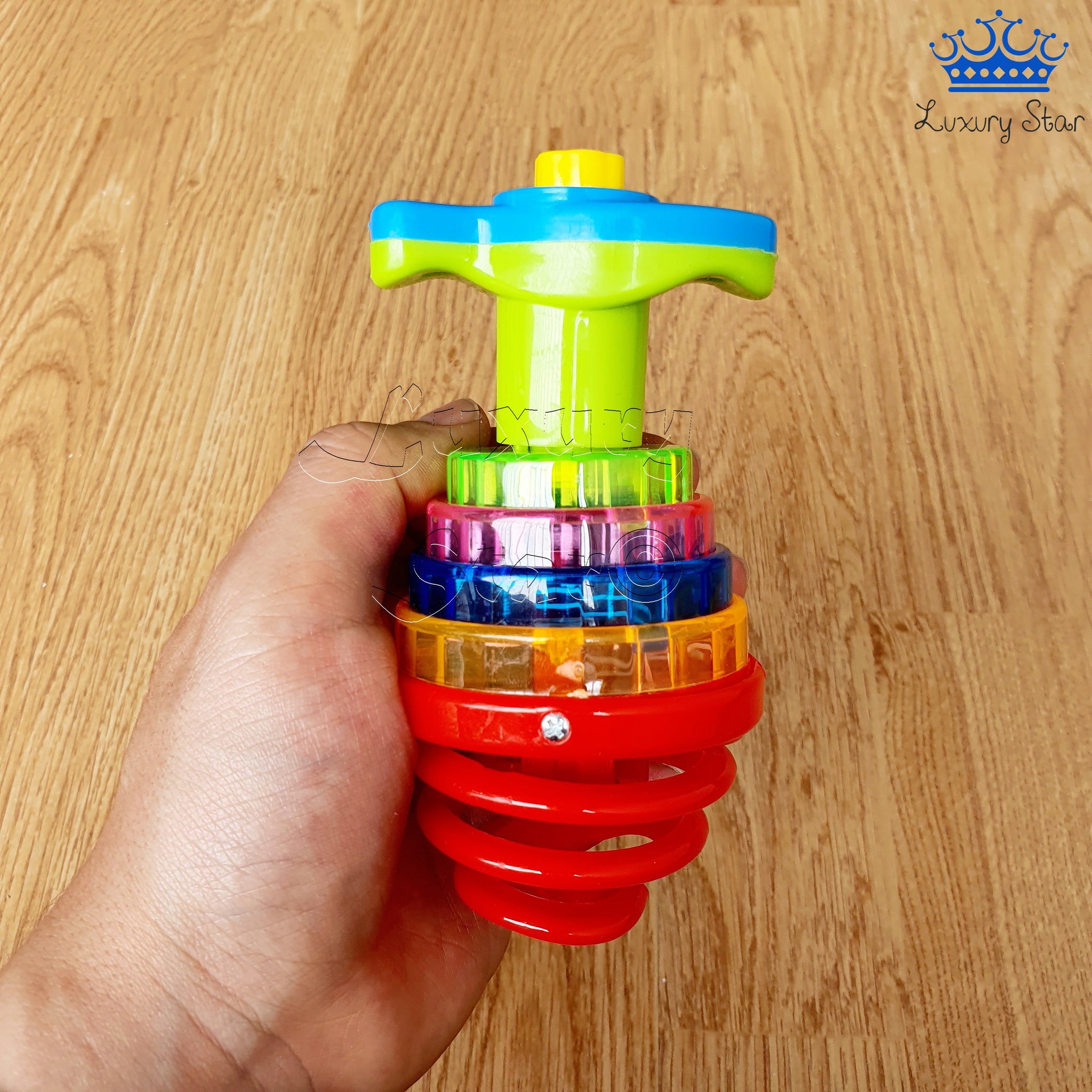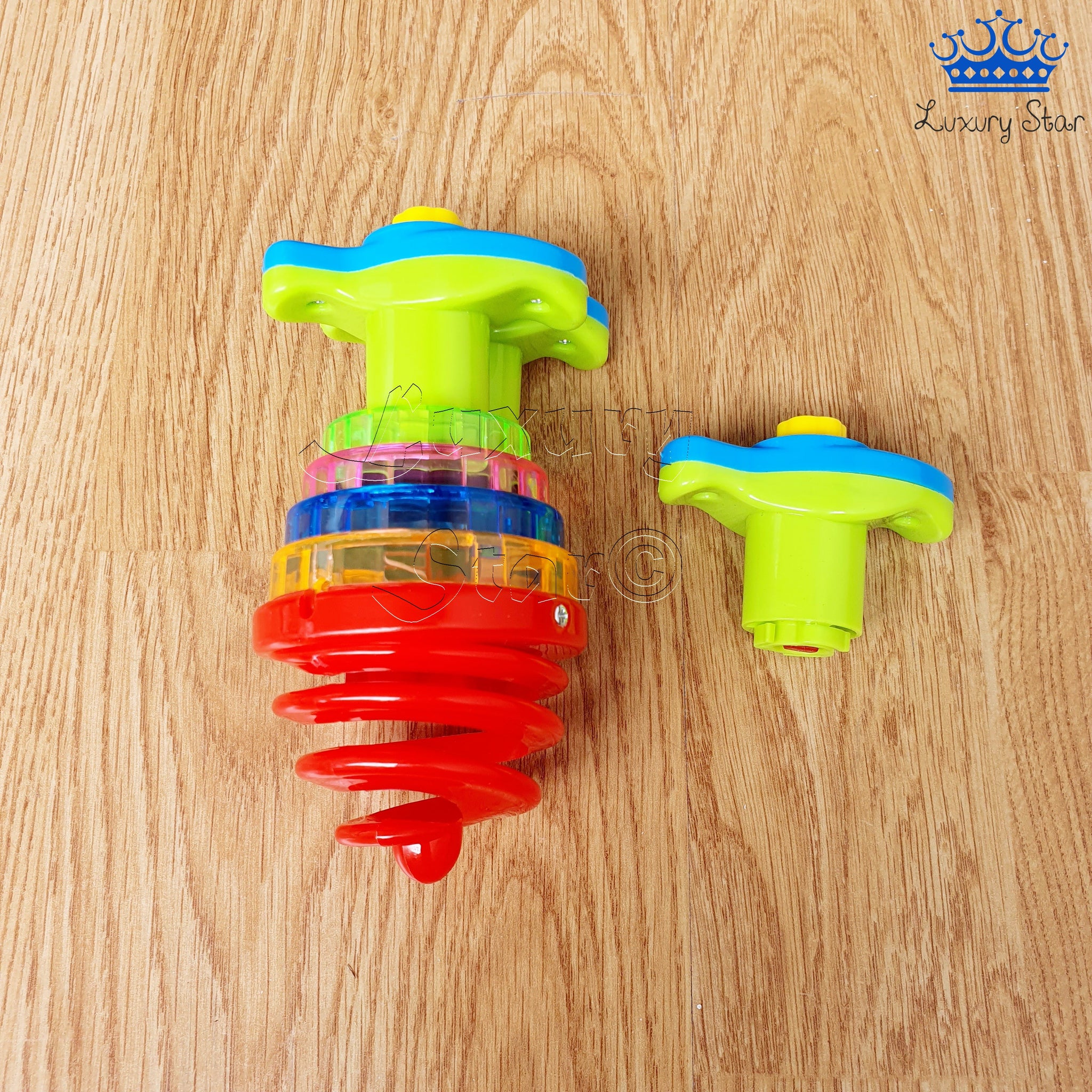 El trompo es el clásico juguete de todos los tiempos, esta versión se sale un poco de lo tradicional y nos muestra un diseño muy colorido en forma de helado con luces, para activarlo se encaja el lanzador en las ranuras de la superficie del "helado" se le dan algunas vueltas, se coloca el trompo en una superficie, luego se presiona el boton del lanzador para soltarlo y este empezara a girar, automaticamente se encienden las luces led y empieza a sonar una melodía, haciendo que sea un verdadero espectáculo, es un detalle muy bonito para los niños.Material: Plástico