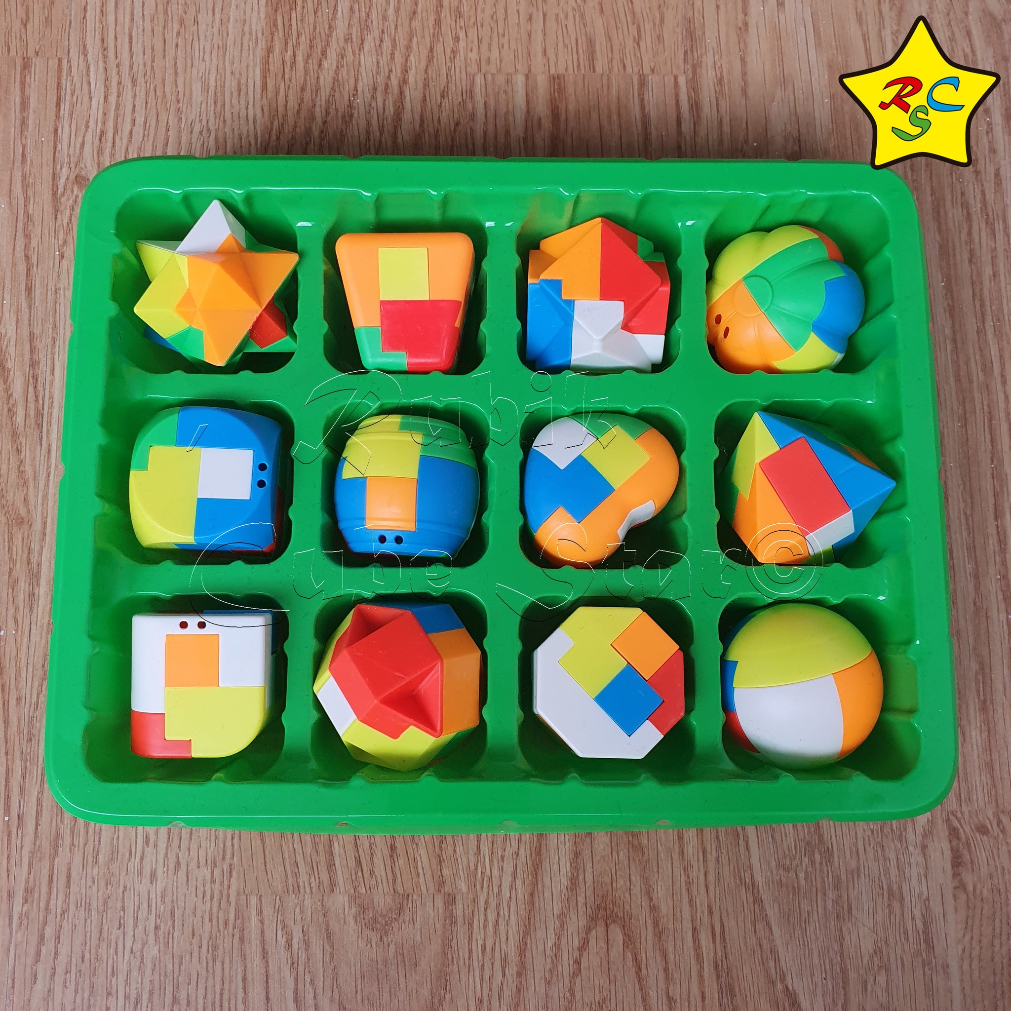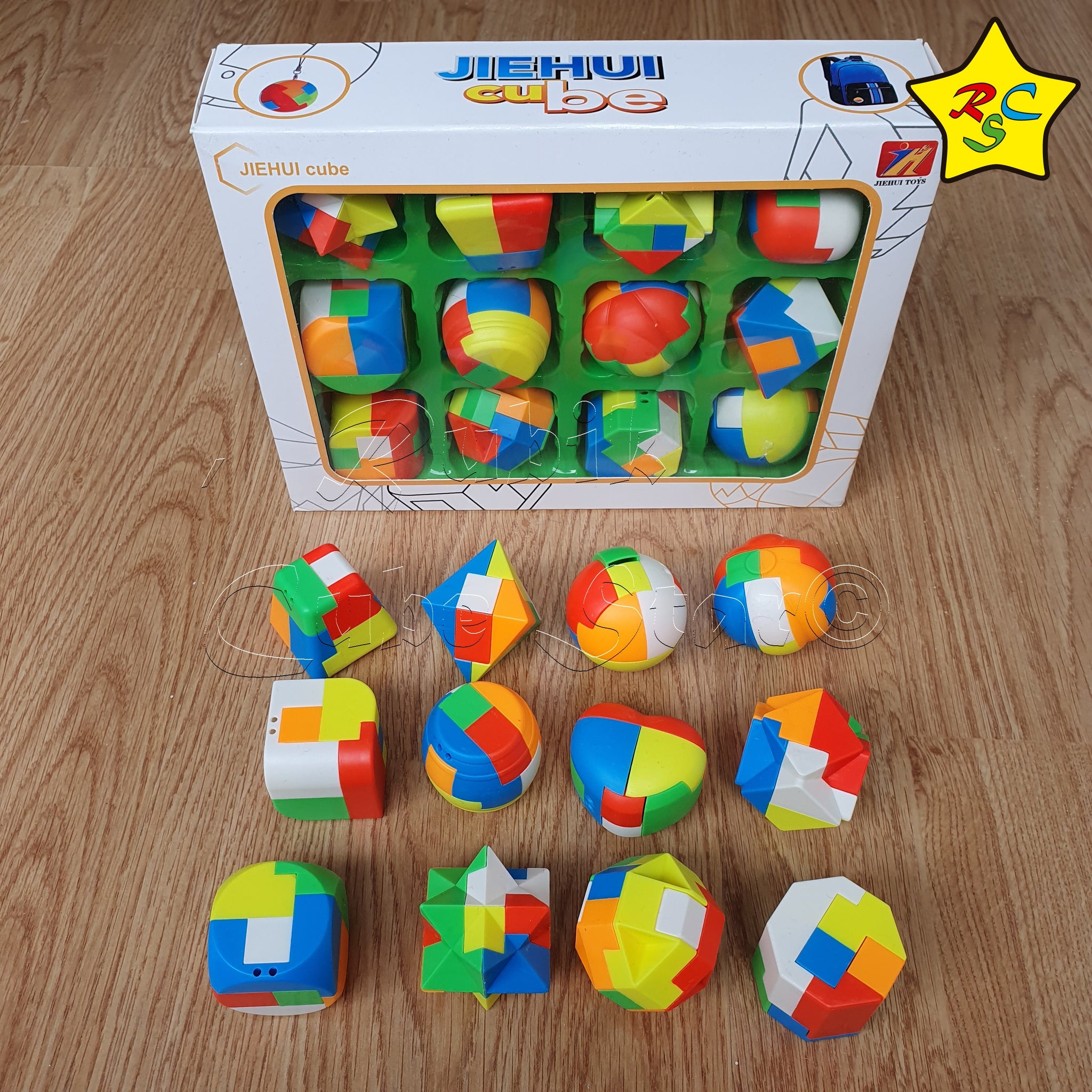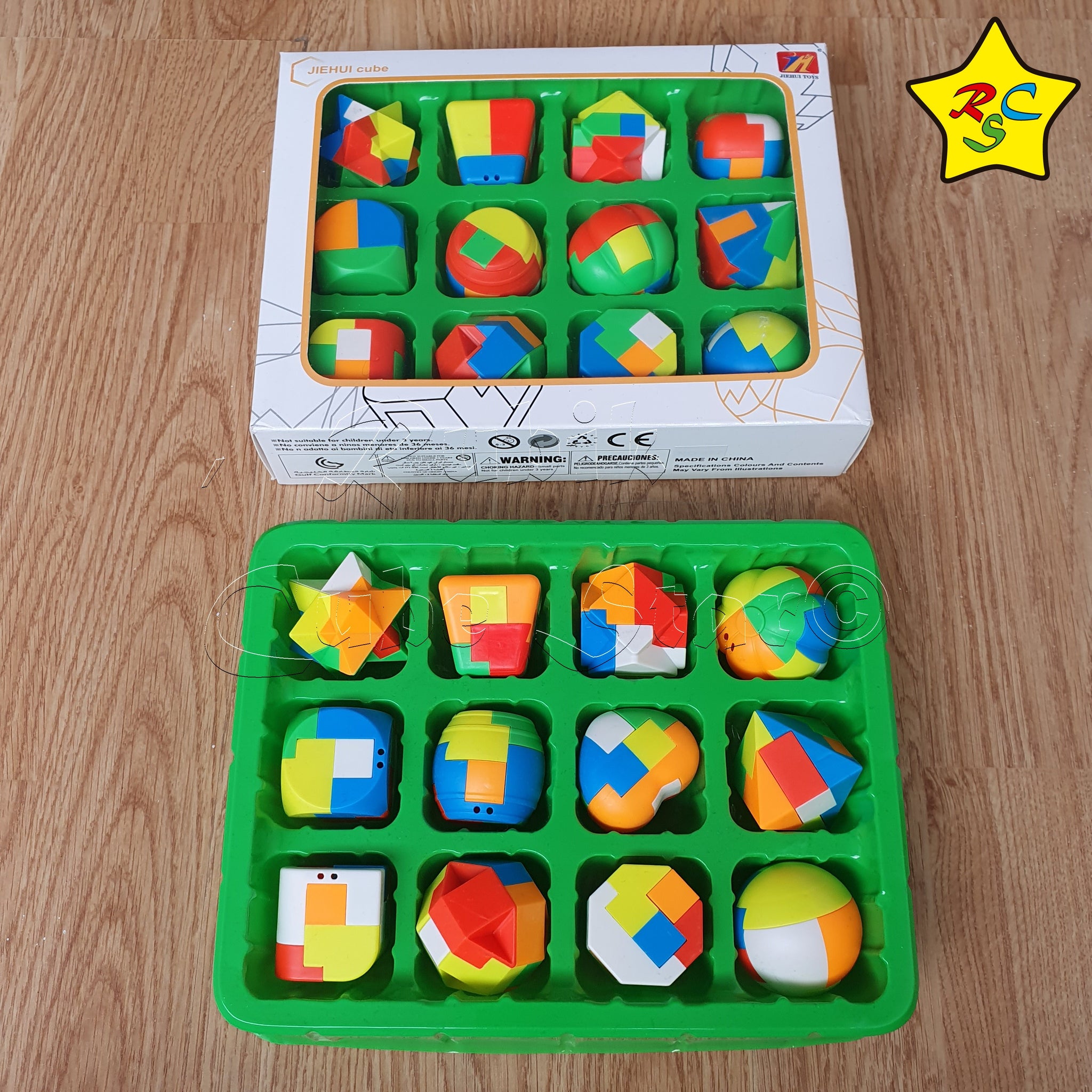 En esta presentación el set incluye 12 puzzles de diferentes formas y tamaños, cada una dificultad diferente.