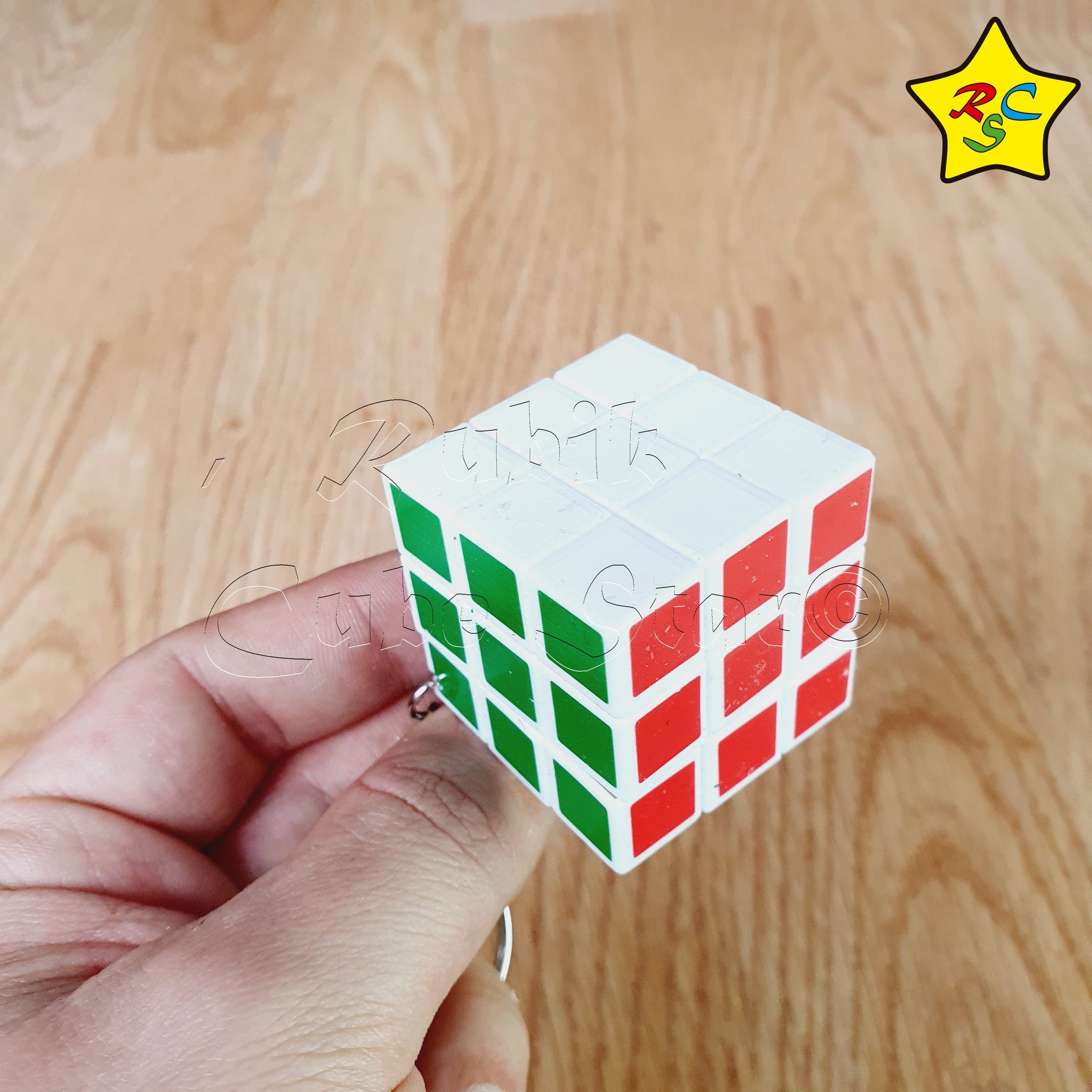 Llavero de Cubo 3x3 en fondo blanco con colores pintados (susceptible a rayones y/o peladuras), mide 3cm, es completamente funcional y cuenta con buen giro, gracias a su tamaño es ideal para llevar en la maleta de decoración y jugar con el en cualquiero momento.