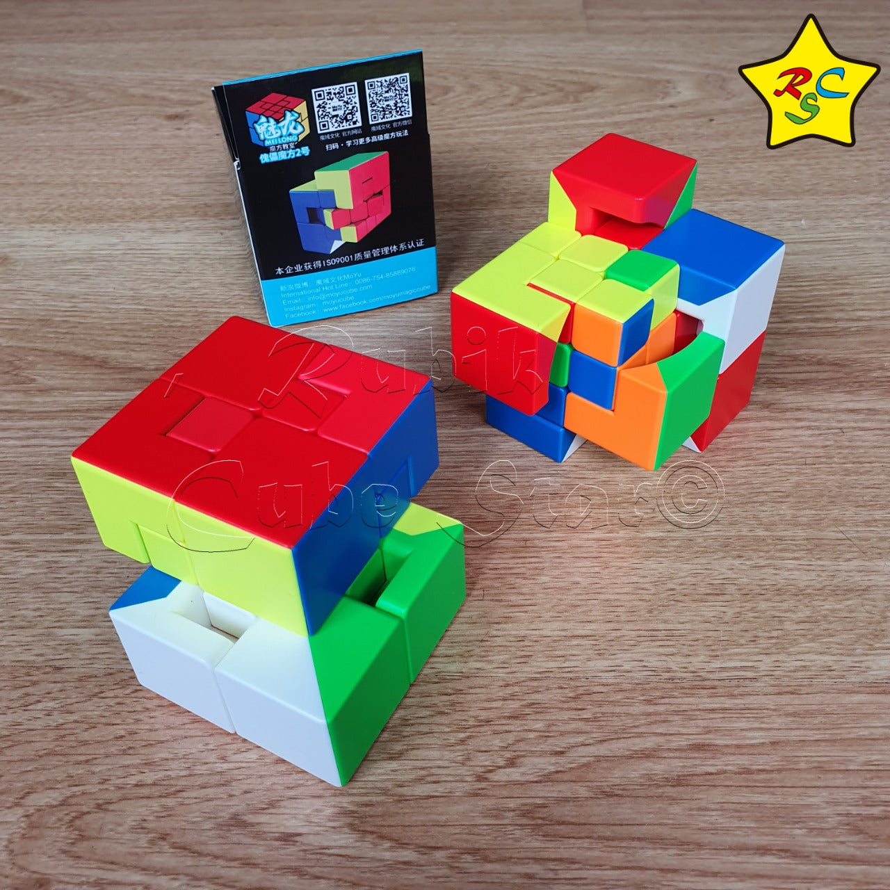 El Meilong Puppet es una modificación del clásico Cubo de 3x3, tiene la particularidad de tener algunas esquinas de tamaño mas grande a sus aristas, por lo que cuando realizas un giro el cubo pierde su forma original y se puede presentar bloqueos en sus giros, aumentando bastante su complejidad de resolución, ya que tendrás que armar el 3x3 con métodos diferentes a los habituales debido a las restricciones de giros en sus caras.El Meilong Puppet cuenta con 2 versiones, la versión 1 cuenta con menos piezas haciéndolo parecer un Cubo 2x2 pero que esto no te engañe ya que su complejidad puede ser mayor que la versión 2 que tiene con mas piezas. Es de la marca Moyu por lo que es de buena calidad y tiene un buen giro, es una excelente opción para todos aquellos que buscan una modificación del Cubo 3x3 muy llamativa y compleja en su resolución.