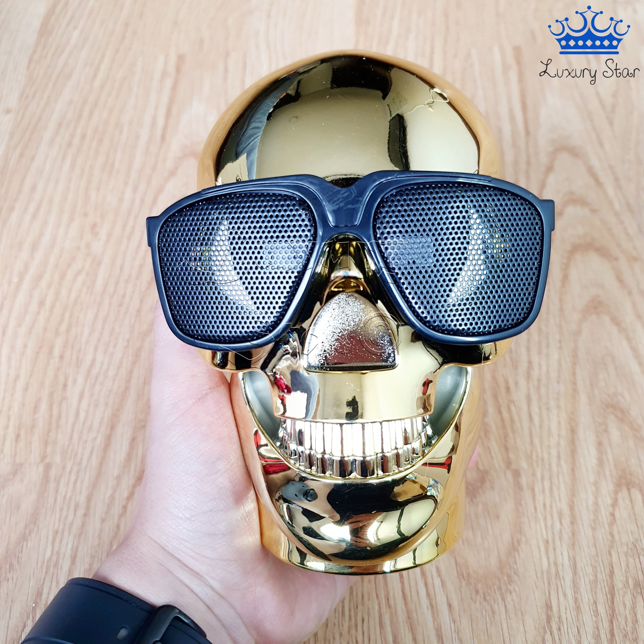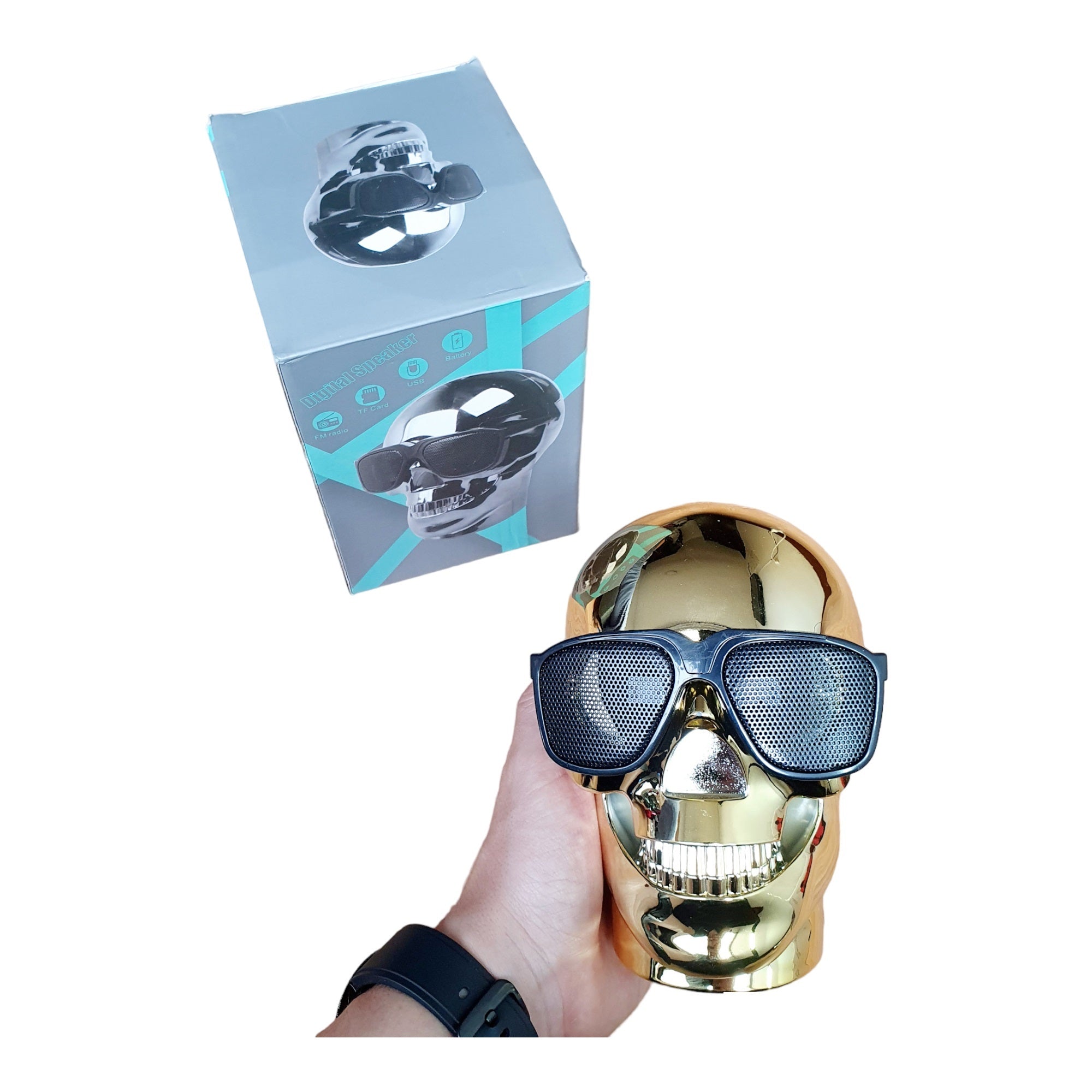 Parlante Calavera Gafas Metalizado Sonido Decorativo Musica