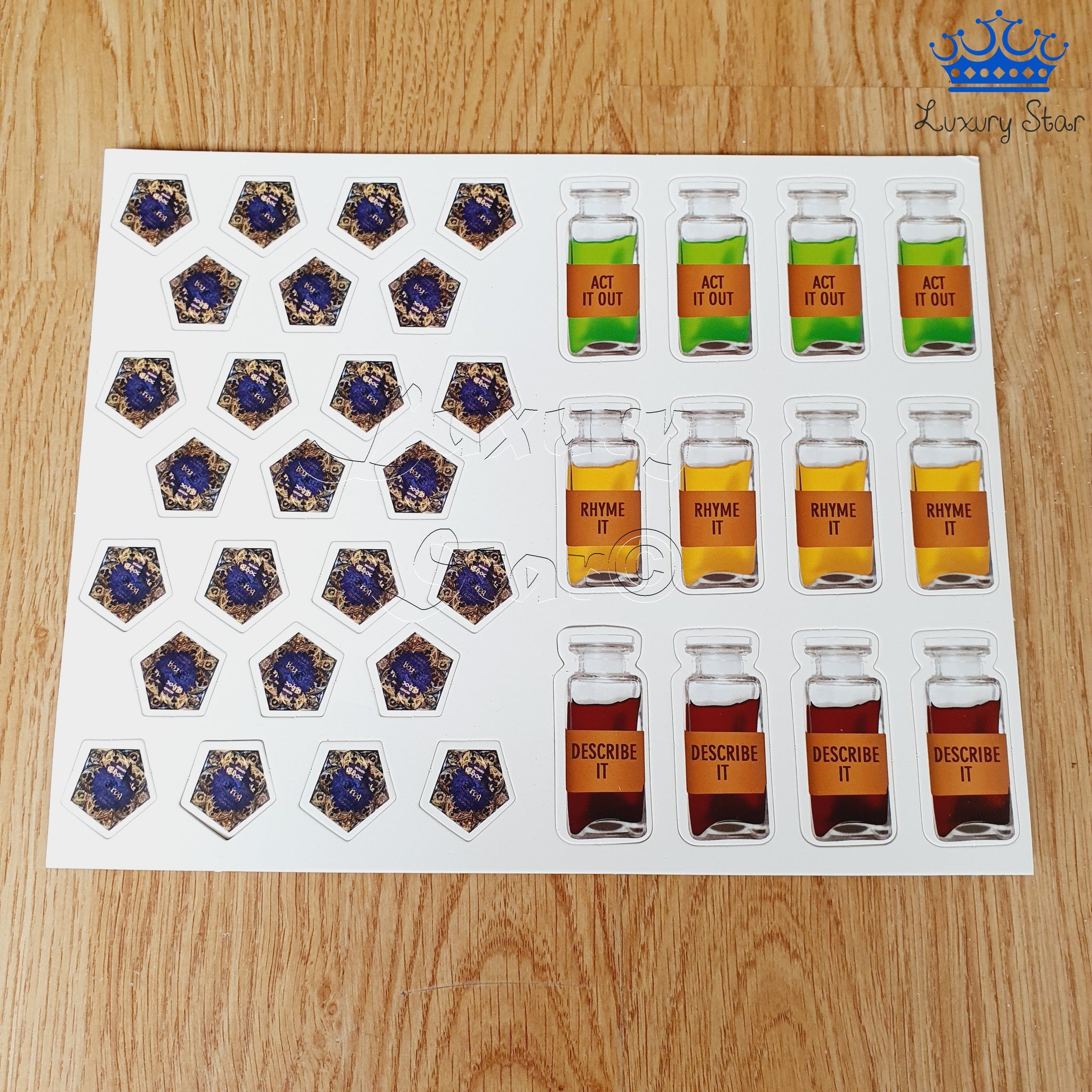 - Poción Multijugos: El jugador que la recibe actúa lo que aparece en la carta.