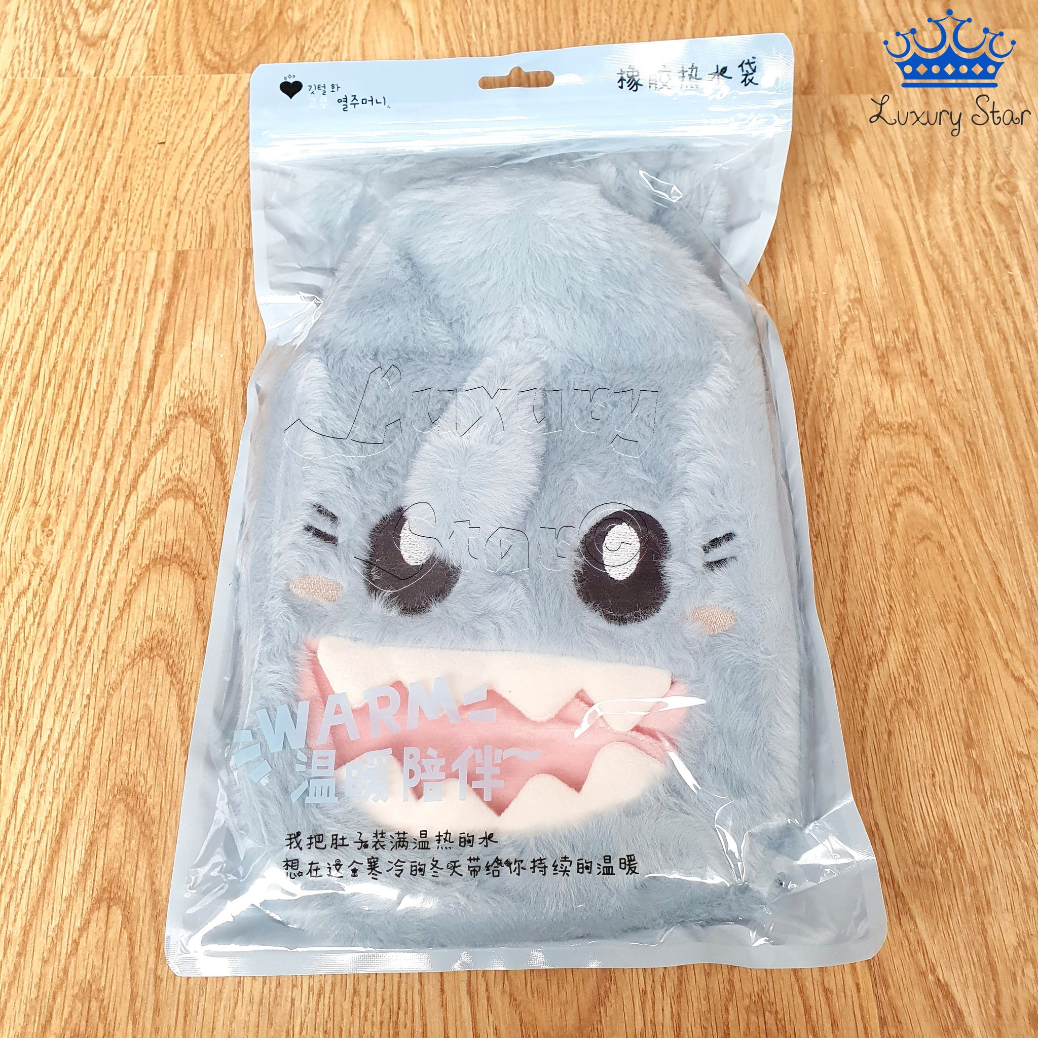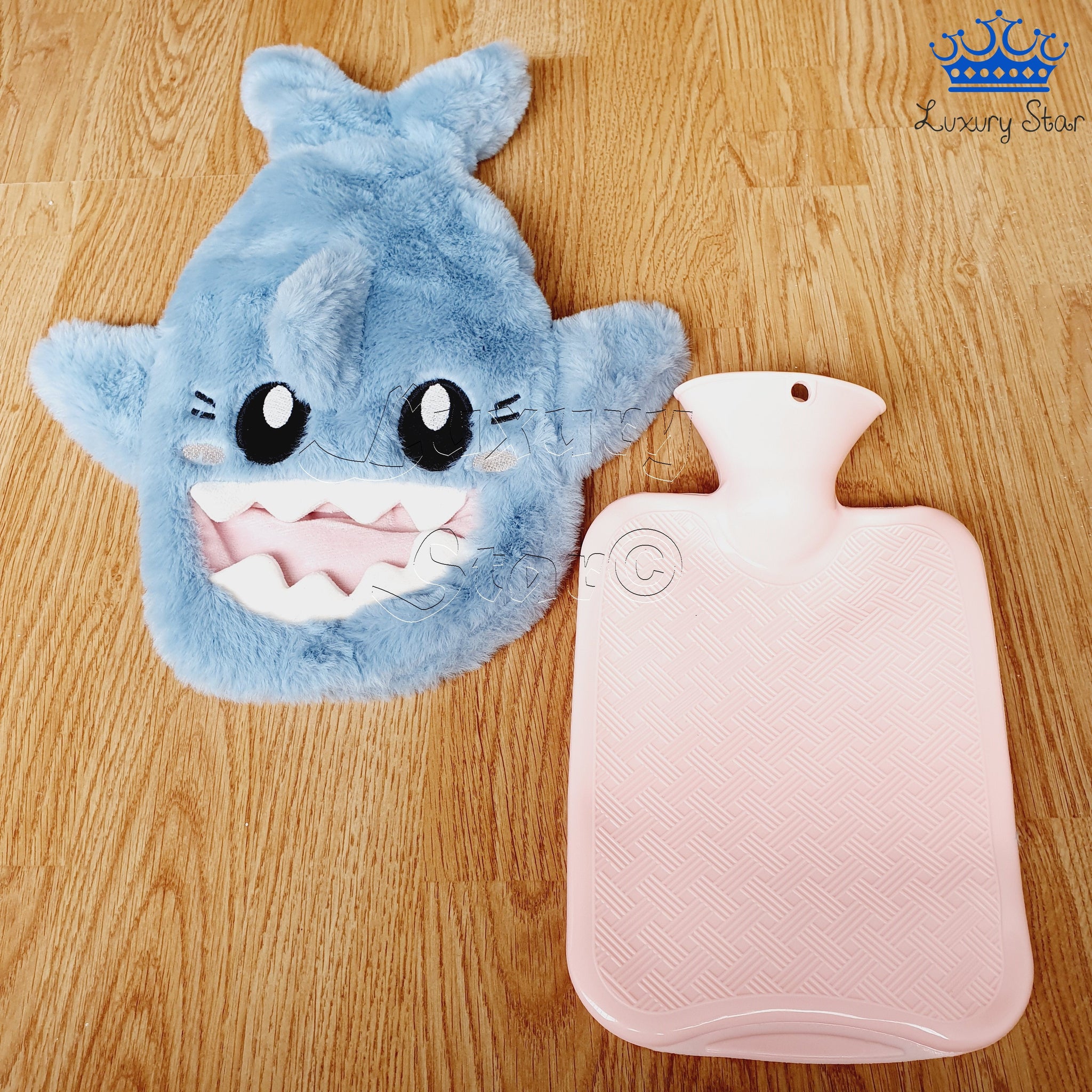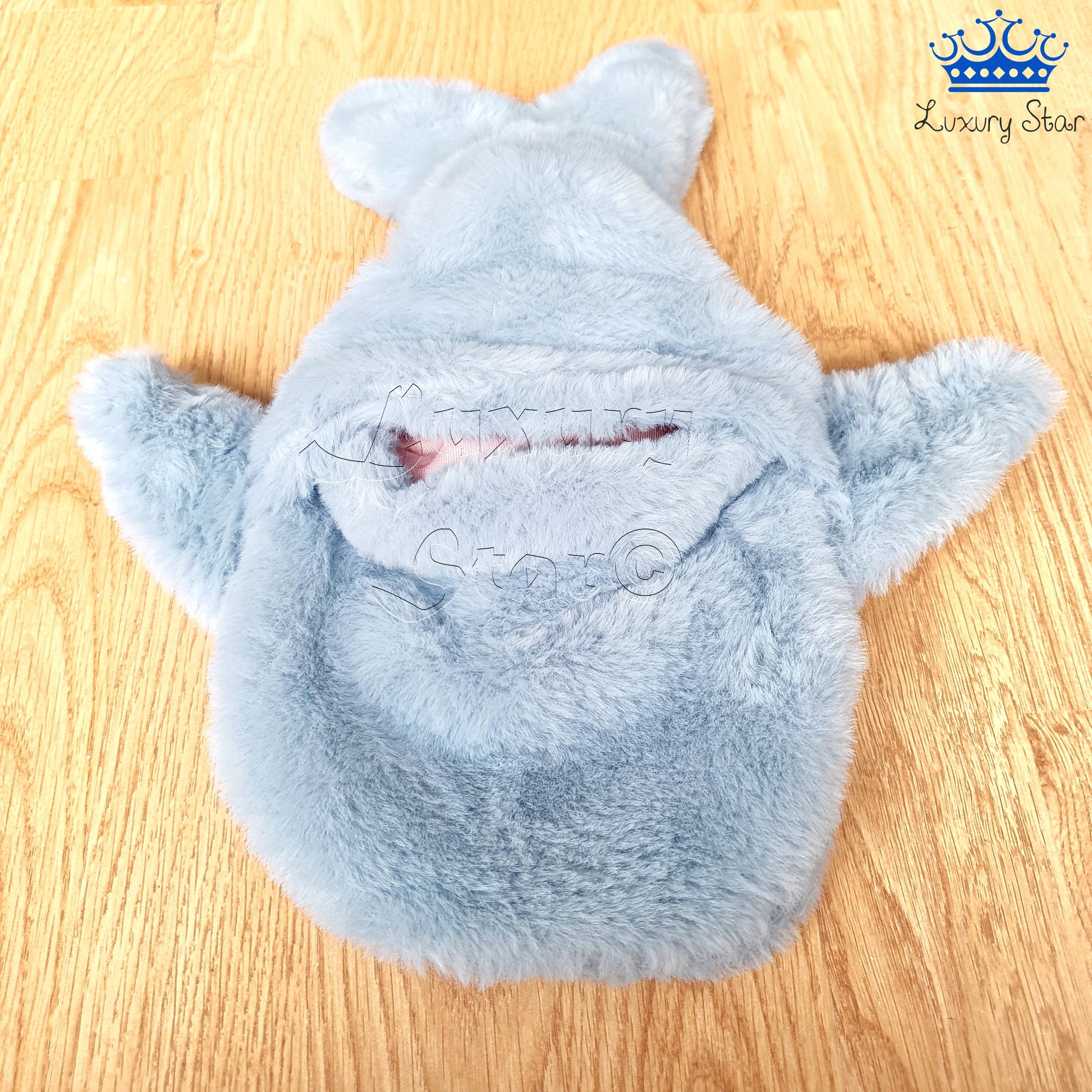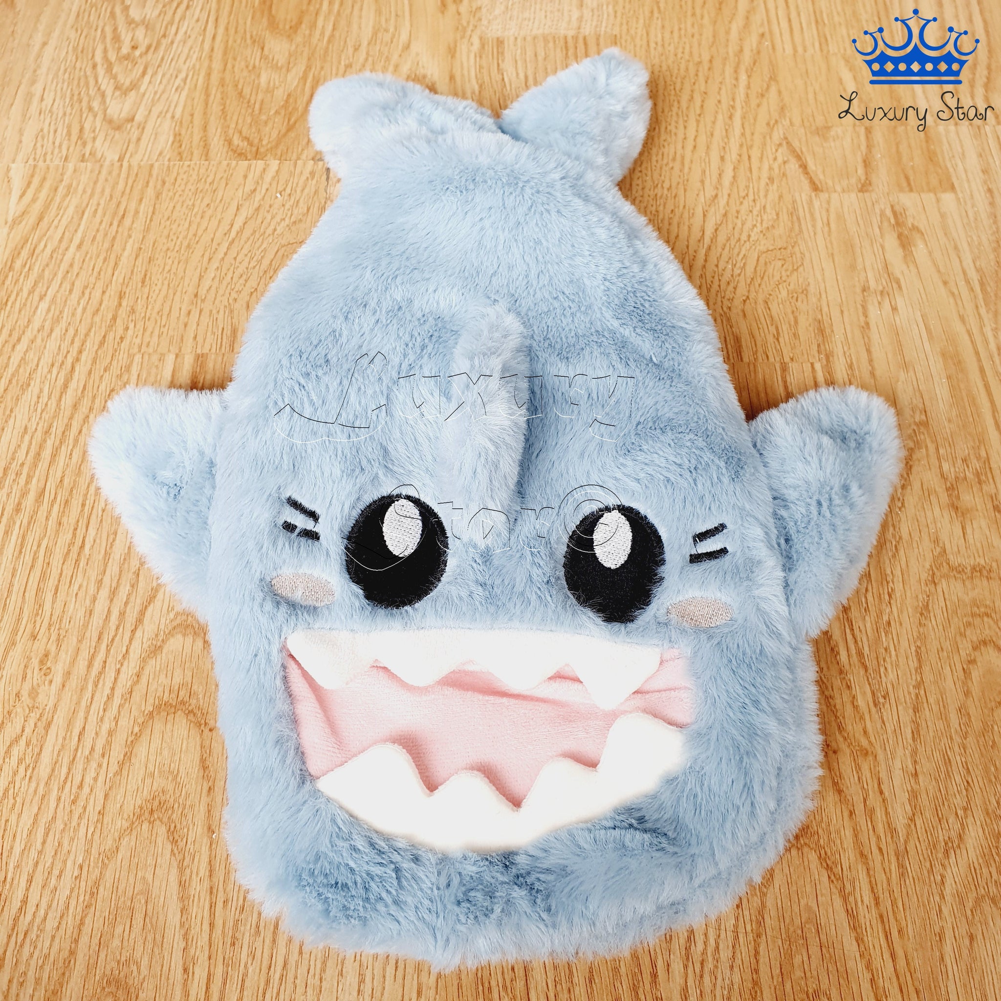 Incluye: 1 bolsa térmica perra de agua caliente con funda de tiburón de peluche.