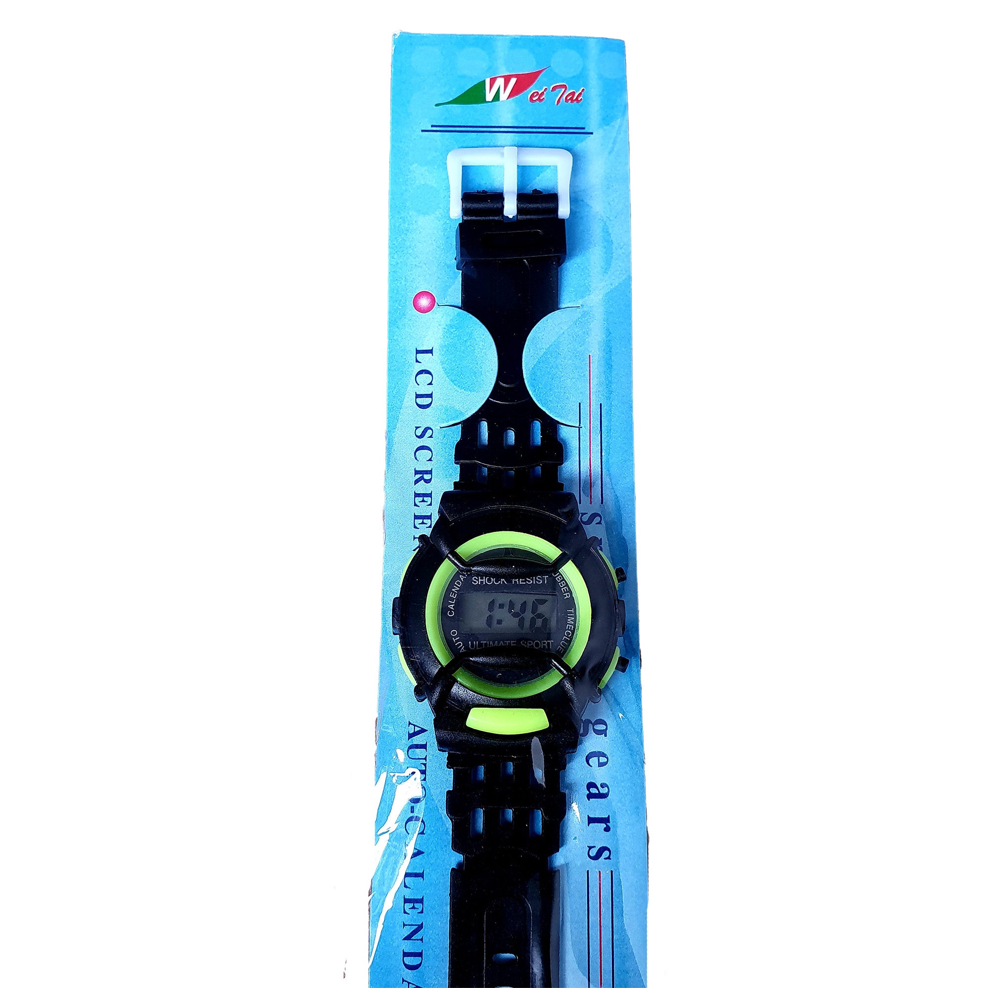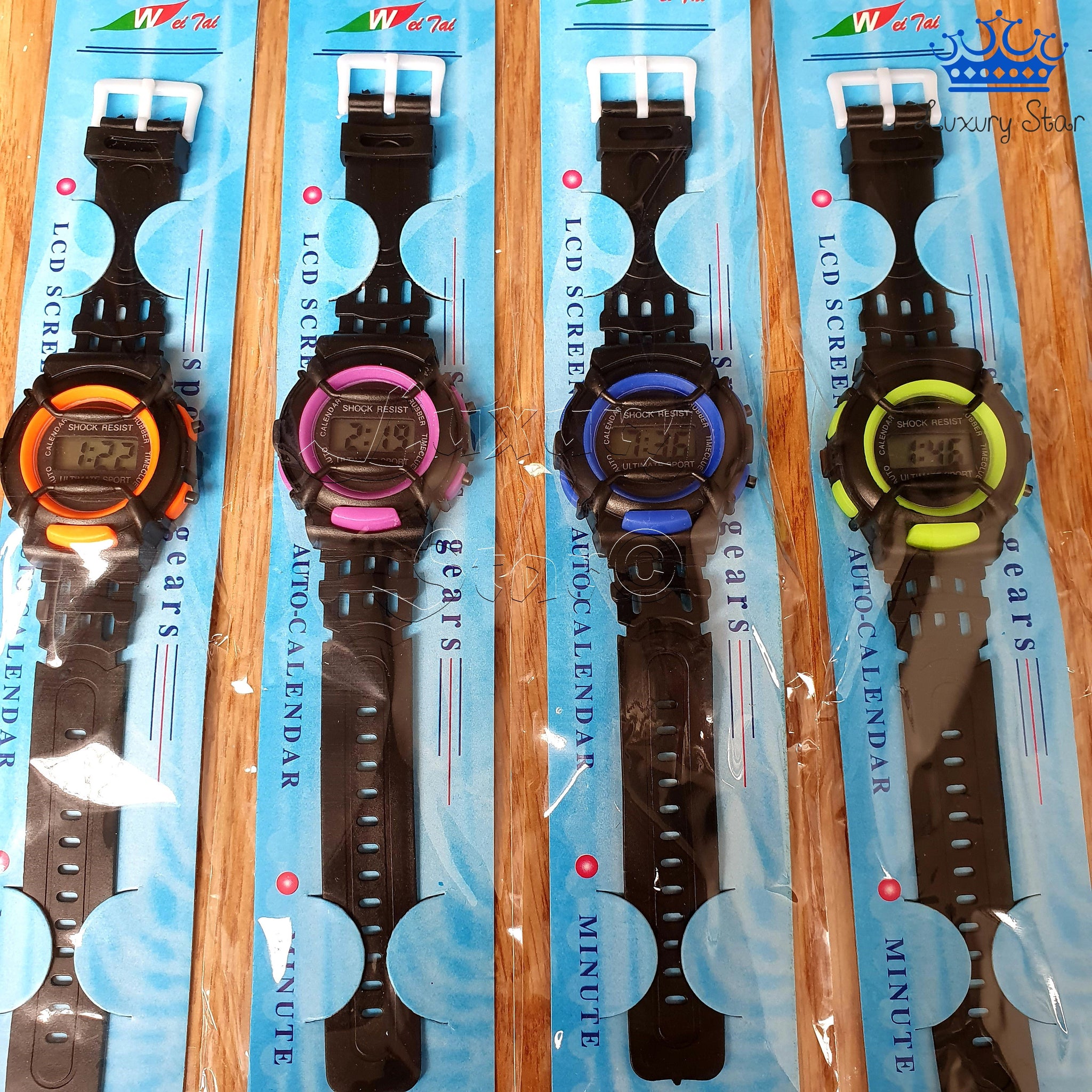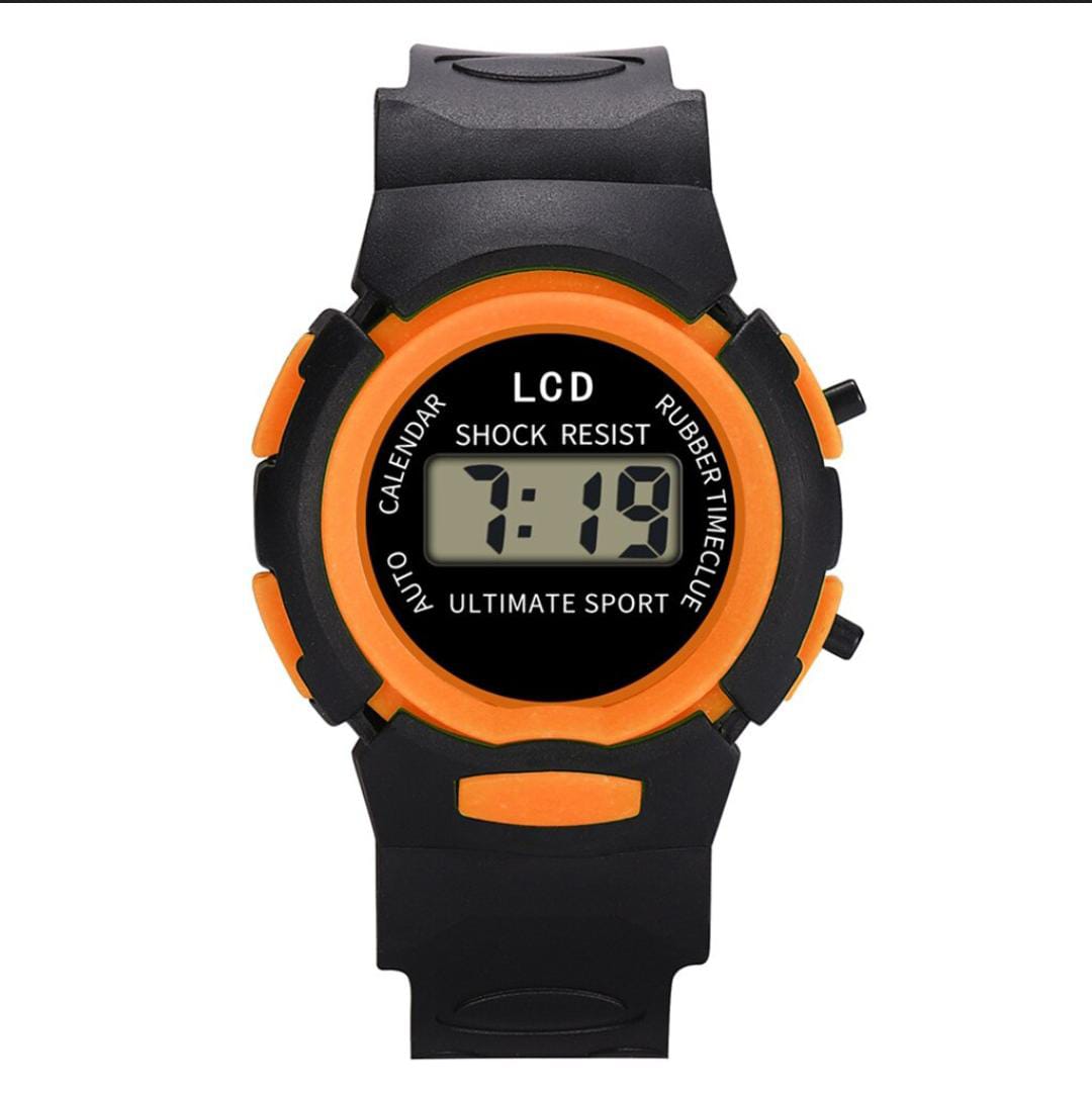 Este reloj es un excelente detalle para lo niños o personas que quieran un reloj sencillo y económico. Maneja una pequeña pantalla LCD monocromatica donde muestra la hora digitalmente, aparte de la hora tambien puedes configurar la fecha. La pulsera esta fabricada en goma de color negro, el color del bisel varia segun disponibilidad (rosado, azul, verde, naranja y morado) la hebilla es en plástico y trae unas barritas de goma para proteger la pantalla en caso de caída o para que no se raye tan fácil.