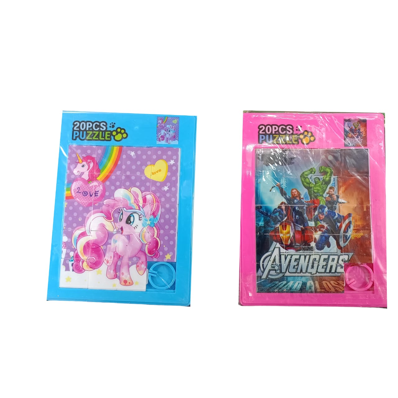 El puzzle 2d es un rompecabezas de piezas cuadradas encajadas en una superficie base, las cuales solo se pueden deslizar gracias a un espacio del tablero que esta vacio, al igual que un rompecabezas normal, el objetivo de este es acomodar todas las piezas de tal forma que le den forma a una figura, como las piezas no se pueden separar del tablero, para desarmarlo solo hay que deslizar las piezas de forma aleatorea y asi se desarmara la figura, debido a su mecanismo es mas dificil de solucionar que otro tipo de rompecabezas, ayudando a desarrollar el pensamiento logico y habilidad mental, esta version es de 19 piezas con letras y numeros, el objetivo es ubicar los numeros o letras en el orden correcto.