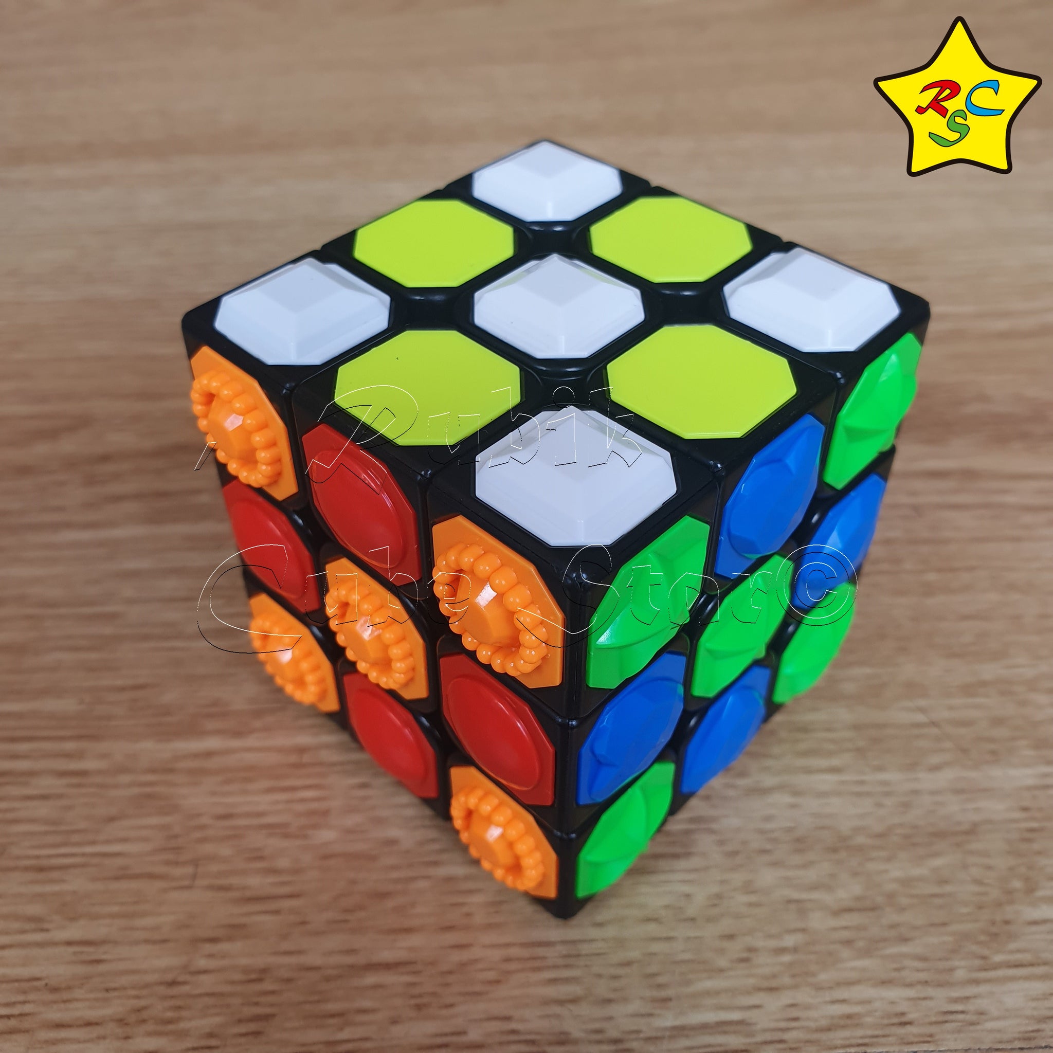 Este genial cubo de es un clásico 3x3 con la particularidad de tener un relieve diferente en cada una de las caras del cubo, esta textura puede sentirse al tacto por lo que puede ser posible reconocer las diferentes formas que pertenecen a cada color, de esta manera seria posible armarlo sin la necesidad de mirar el cubo o con los ojos cerrados al estilo Blind o tipo Braille.El 3x3 YJ Blindo tiene un genial giro y cuenta con un mecanismo tipo Tile, es decir, trae tapas en lugar de tener pegatinas por lo que no tendrás q preocuparte por que se te estropeen los Stickers.