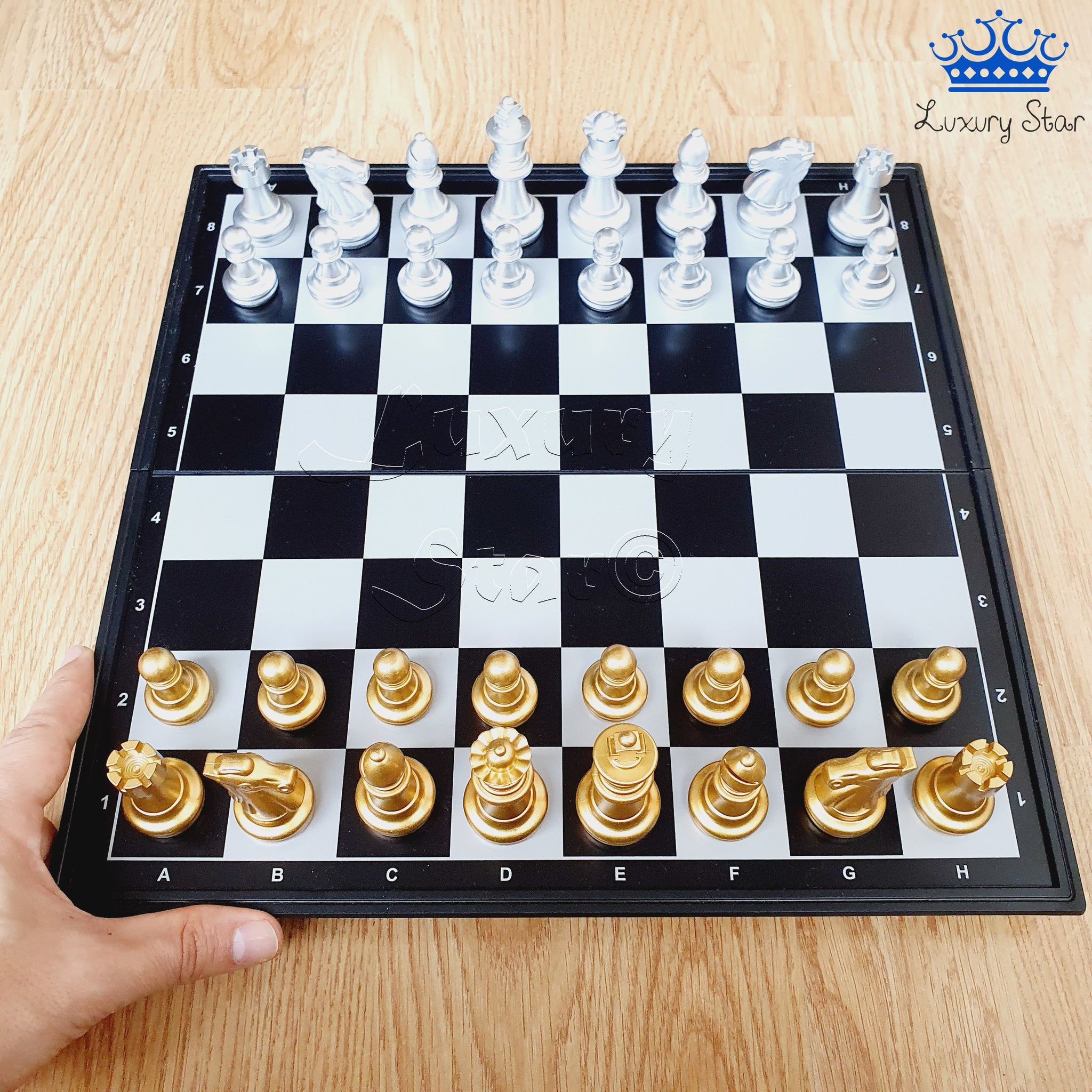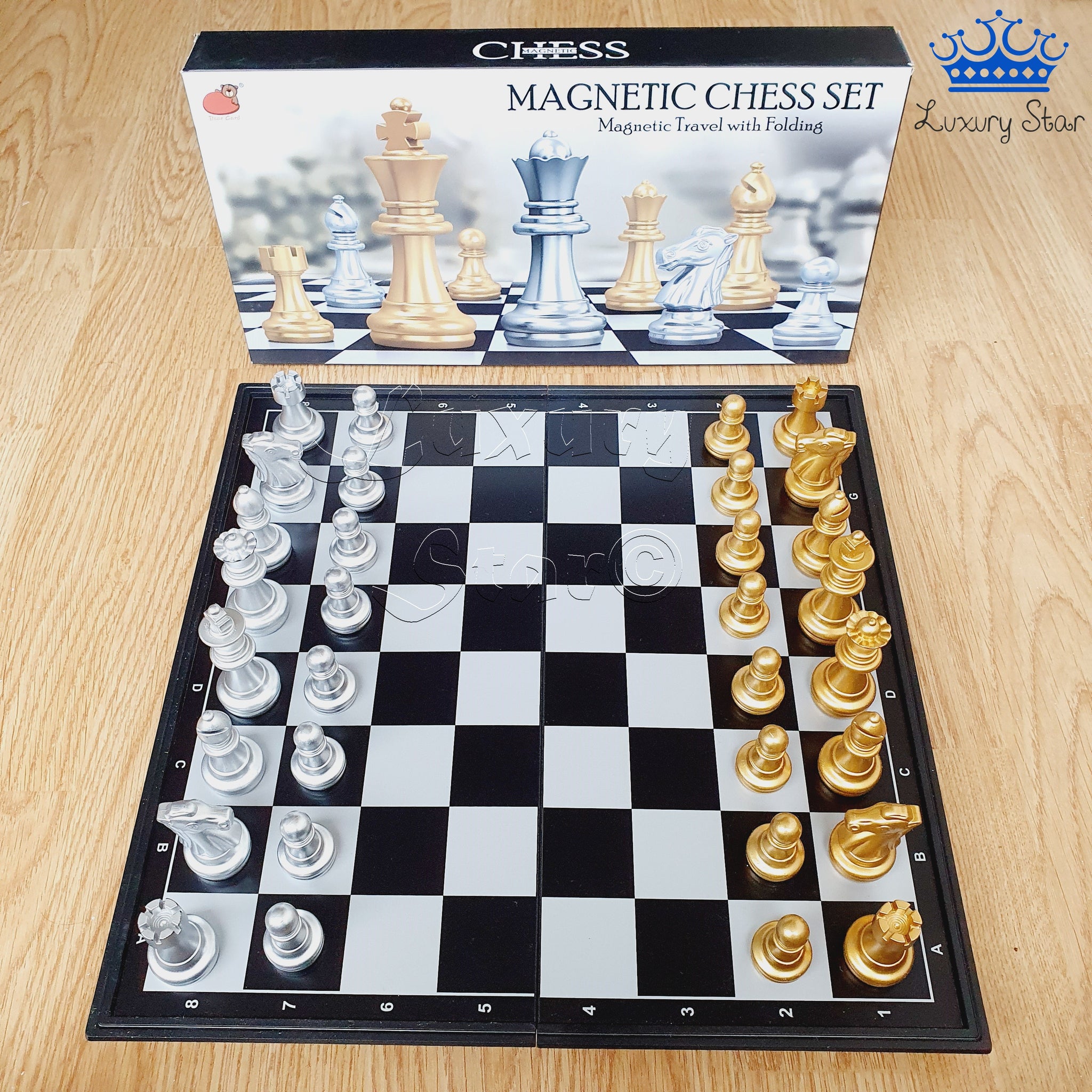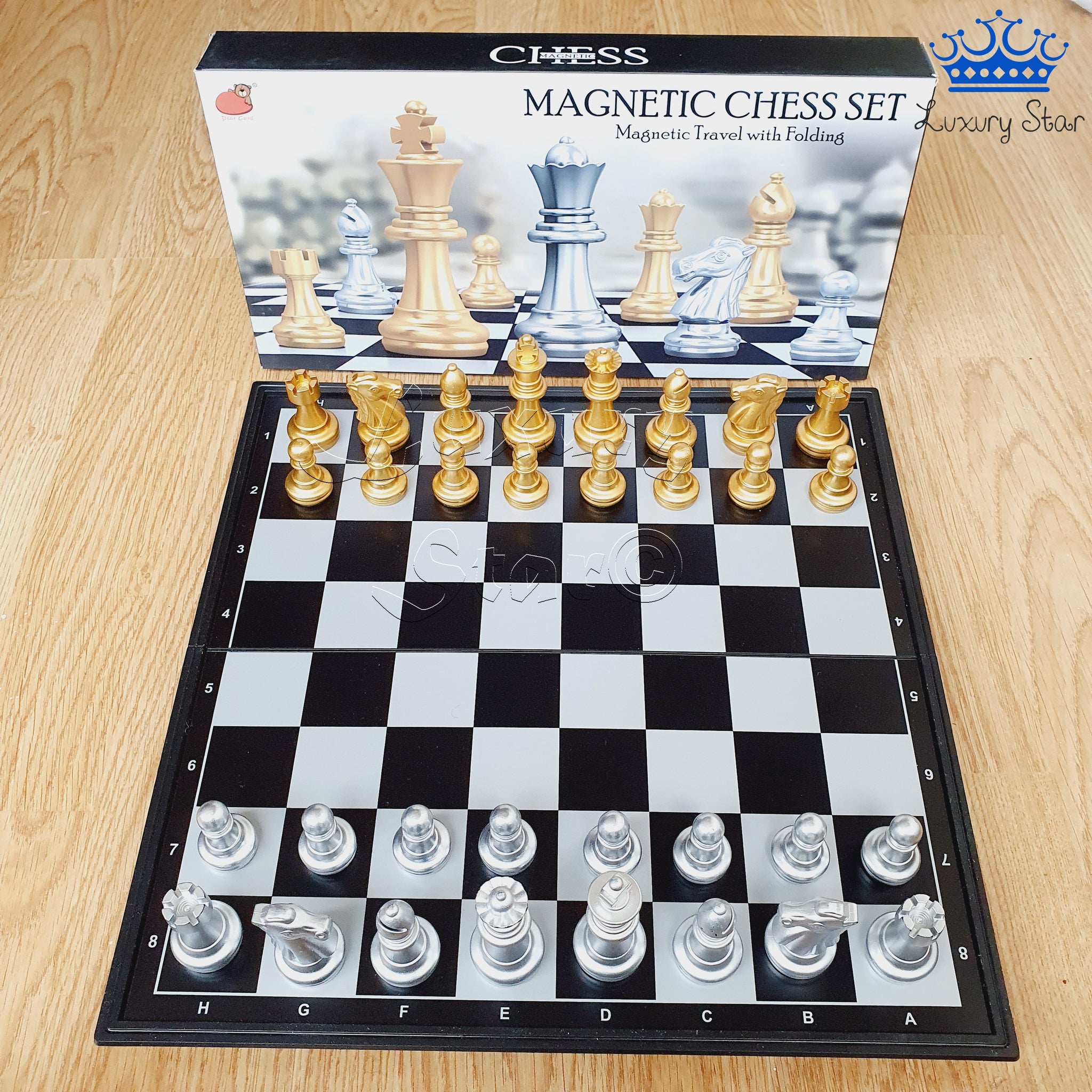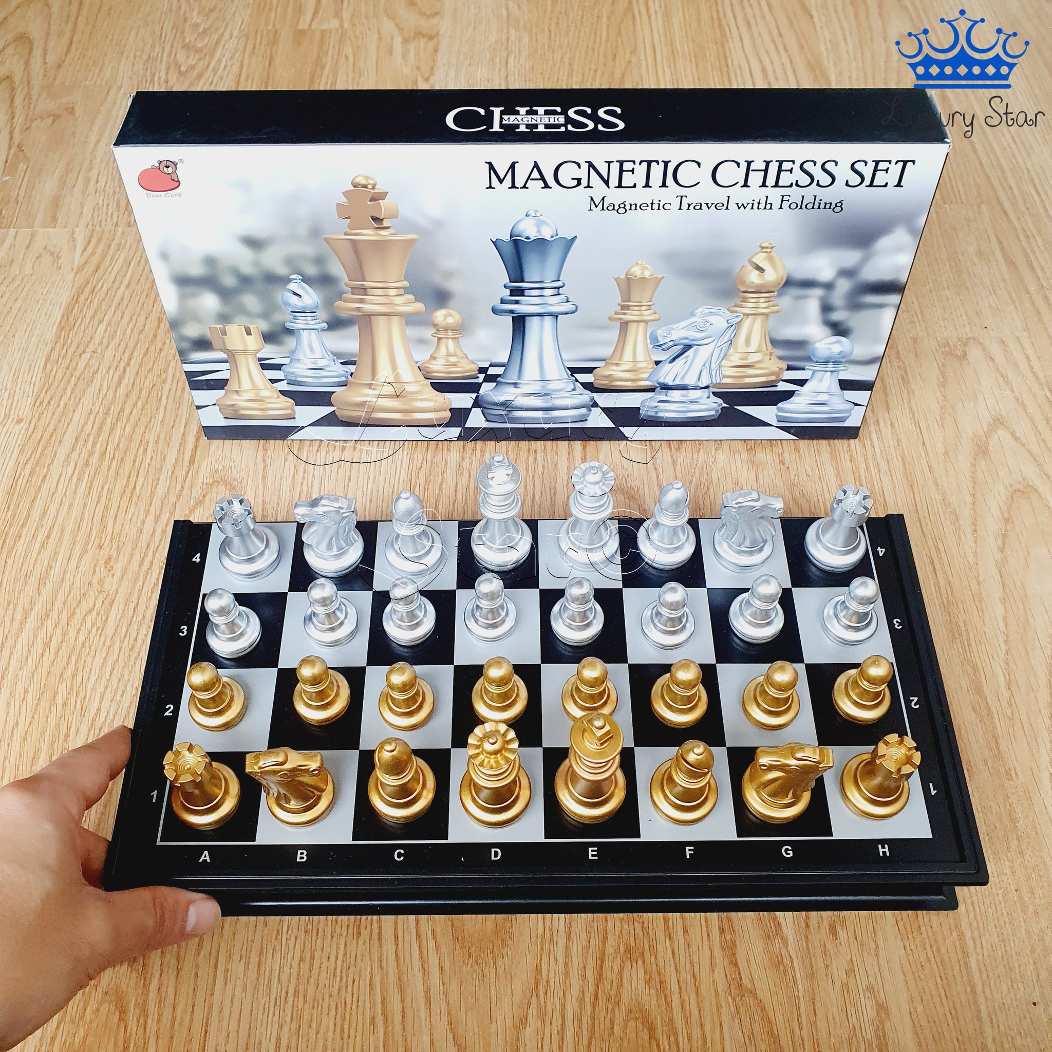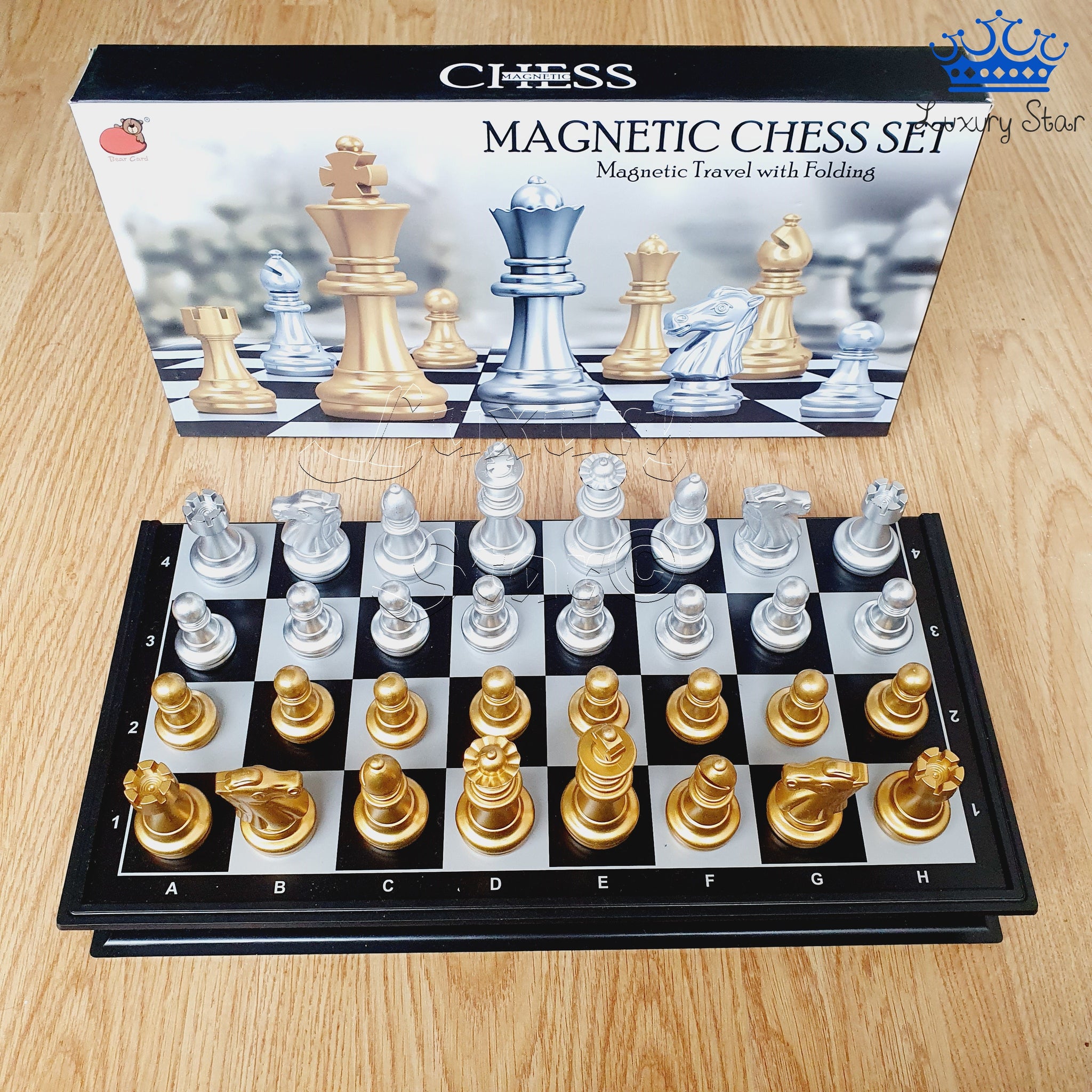 El juego incluye un tablero magnético de gran tamaño con acabados de alta calidad, ideal para disfrutar tanto en casa como en viajes. Las piezas, en tonos dorado y plateado, tienen un diseño sofisticado y un peso equilibrado, lo que garantiza estabilidad y evita movimientos accidentales durante las partidas. Su sistema magnético asegura que las piezas se mantengan en su lugar incluso en superficies inestables.