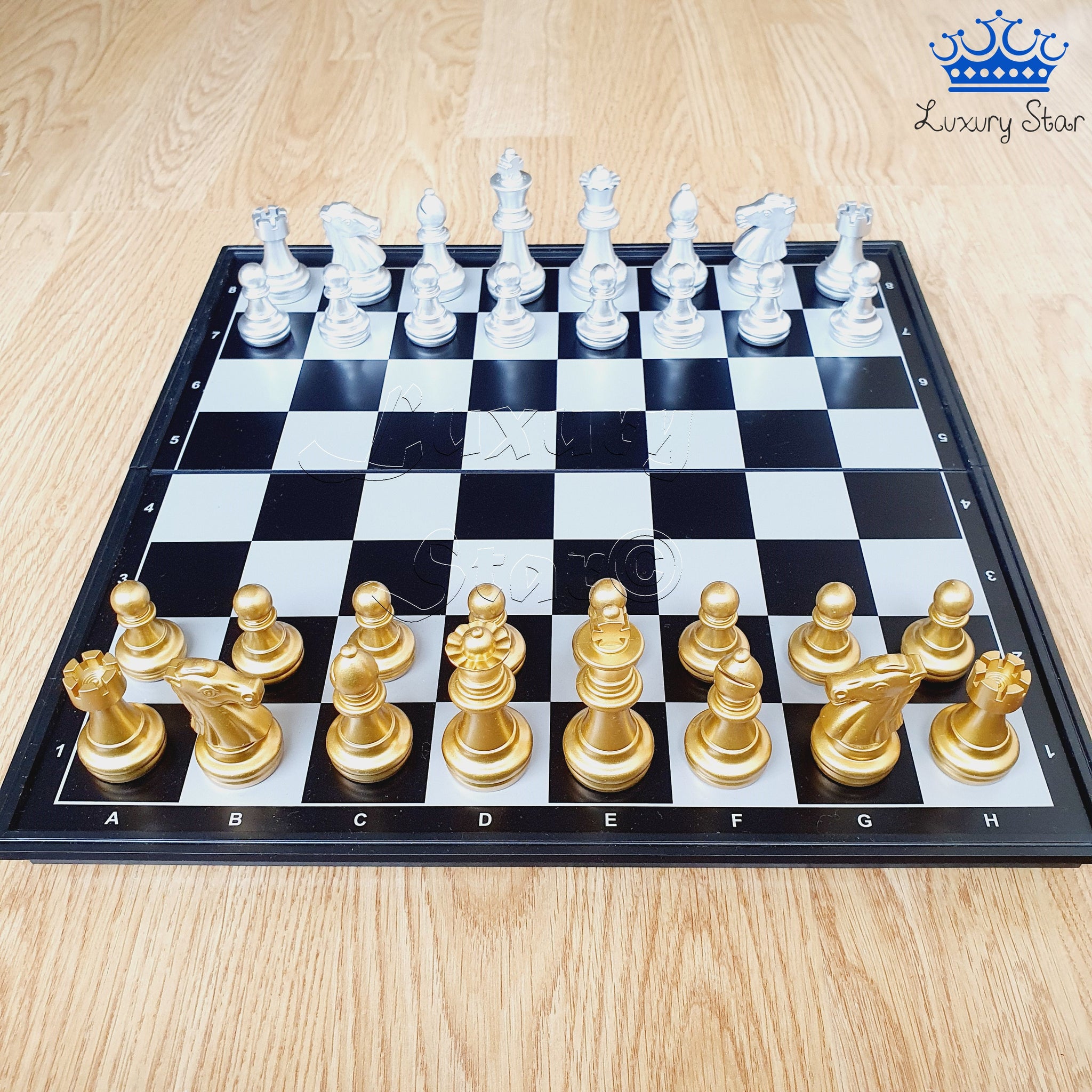 Ajedrez Premium Metalizado Plateado Dorado Grande Magnetico