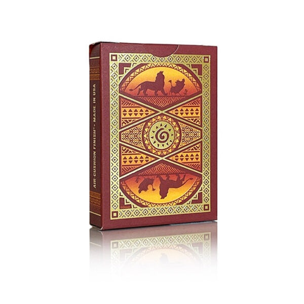La Marca Bicycle nos está sorprendiendo con algunas colaboraciones con Disney, en esta ocasión con la reconocida película El Rey León con un empaque metalizado dorado con colores naranja y café.