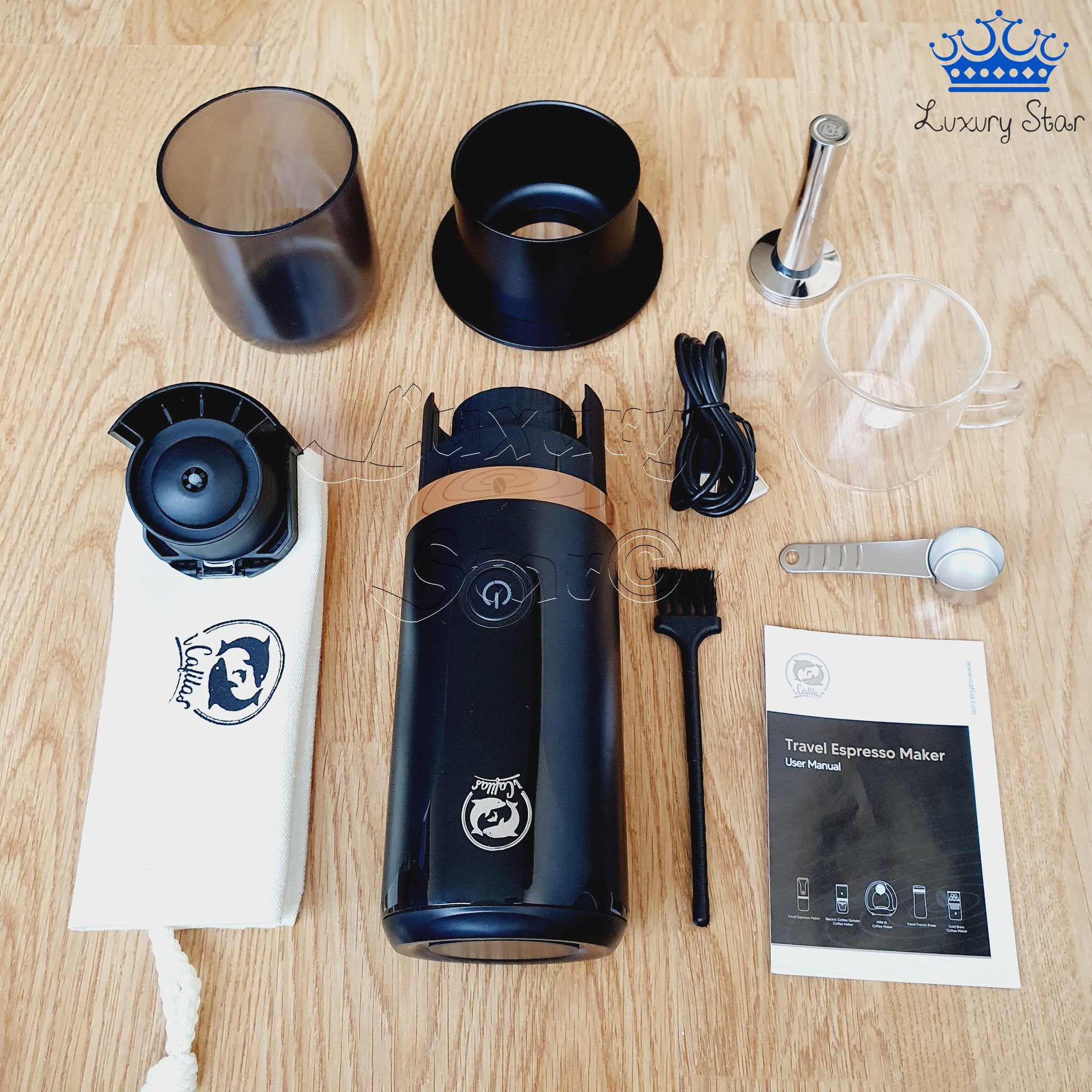 **Incluye una máquina de café expresso portátil con todos los accesorios mencionados e instrucciones en inglés.