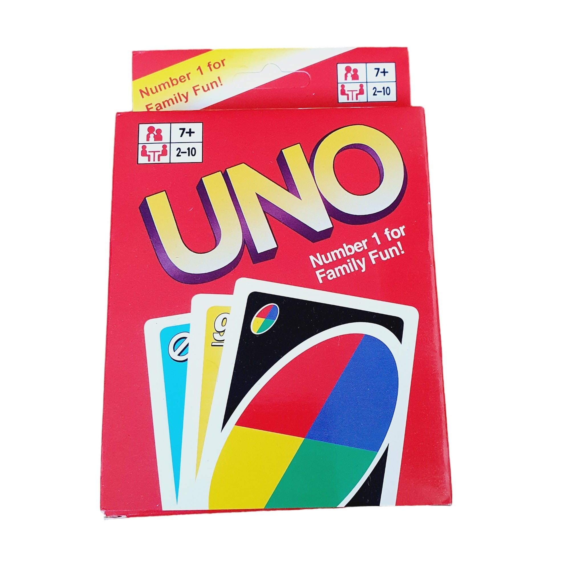 UNO es un clásico juego de cartas ideal para disfrutar en familia o con amigos. La baraja cuenta con 108 cartas en cuatro colores (rojo, verde, azul y amarillo), cada uno con 25 cartas numeradas y cartas de acción como saltar turno, cambiar de sentido, +2, comodín y +4.