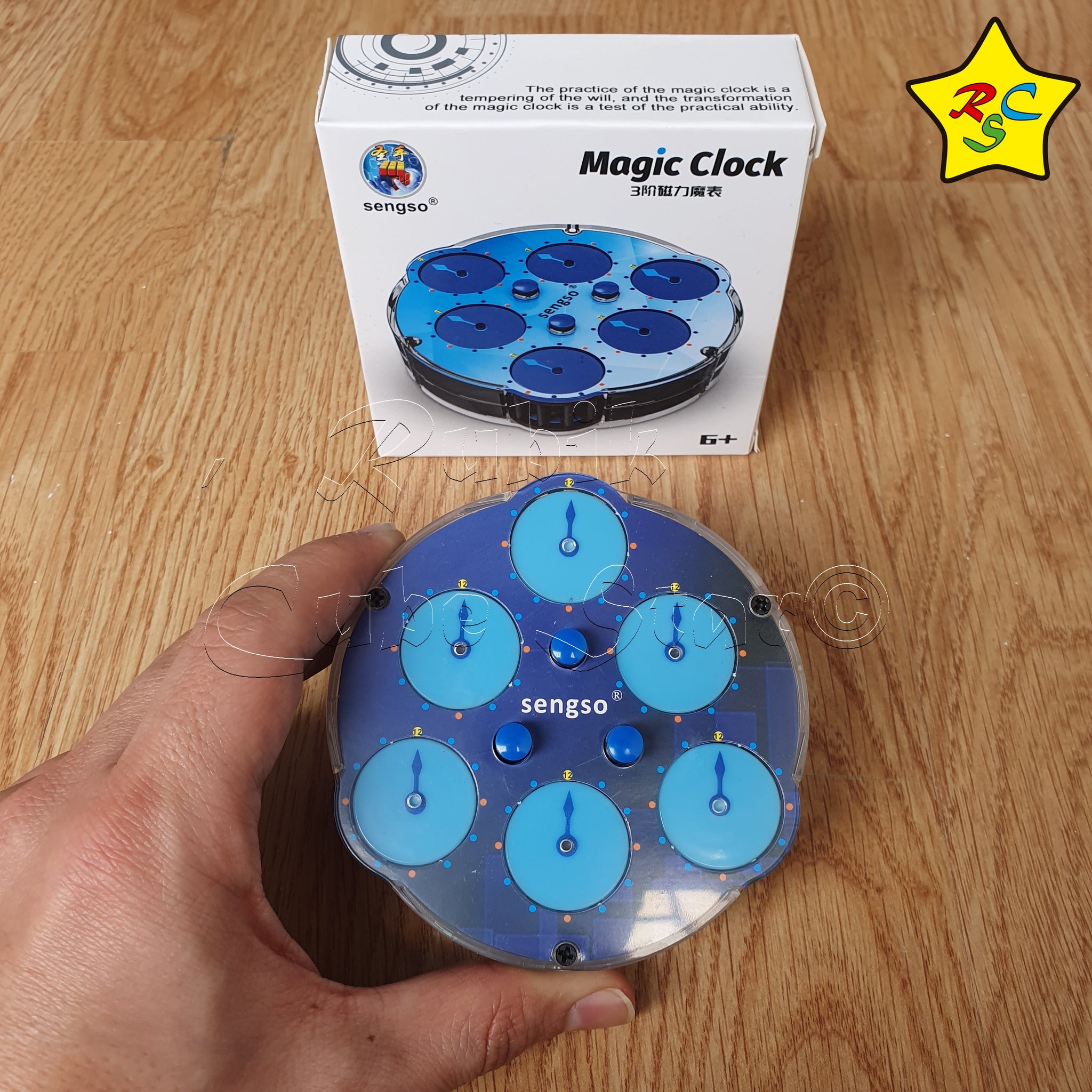 El ShengShou Clock 3 va un paso más allá del clásico Magic Clock tradicional de competición que todos conocemos, el cual cuenta con 9 relojes en una matriz de 3x3, el nuevo clock 3, cuenta con 6 relojes colocados en forma triangular por cara y 3 engranajes giratorios lo que lo hace un poco mas pequeño pero un reto muy entretenido.