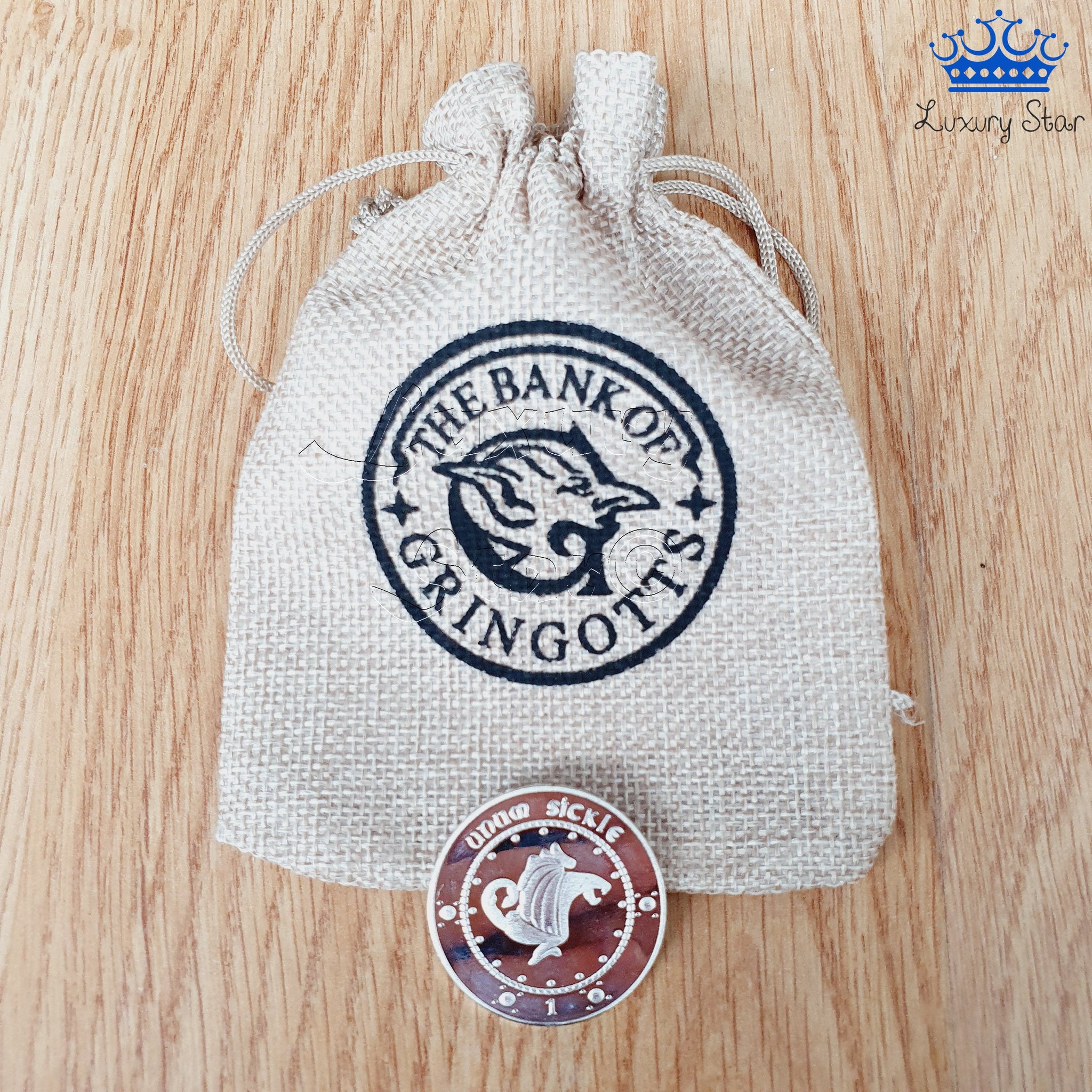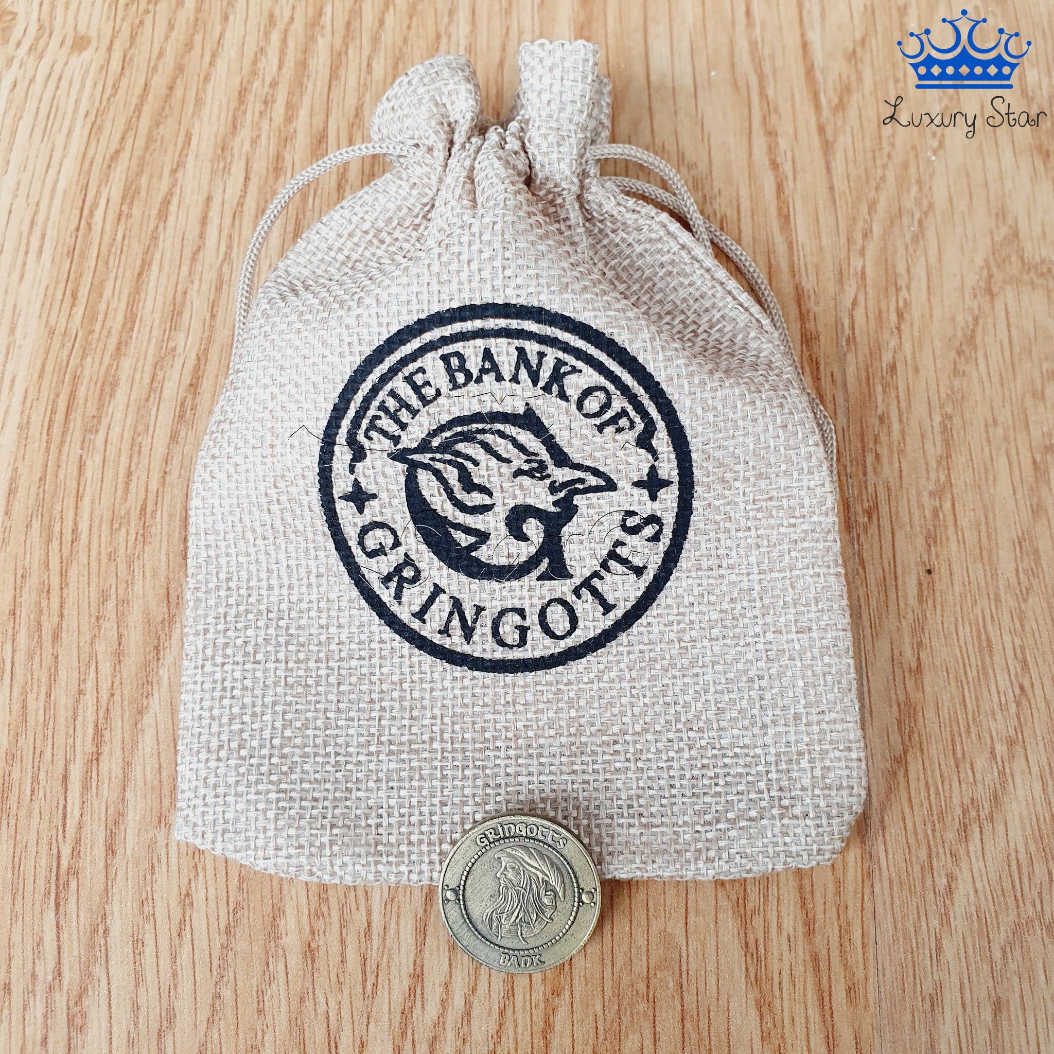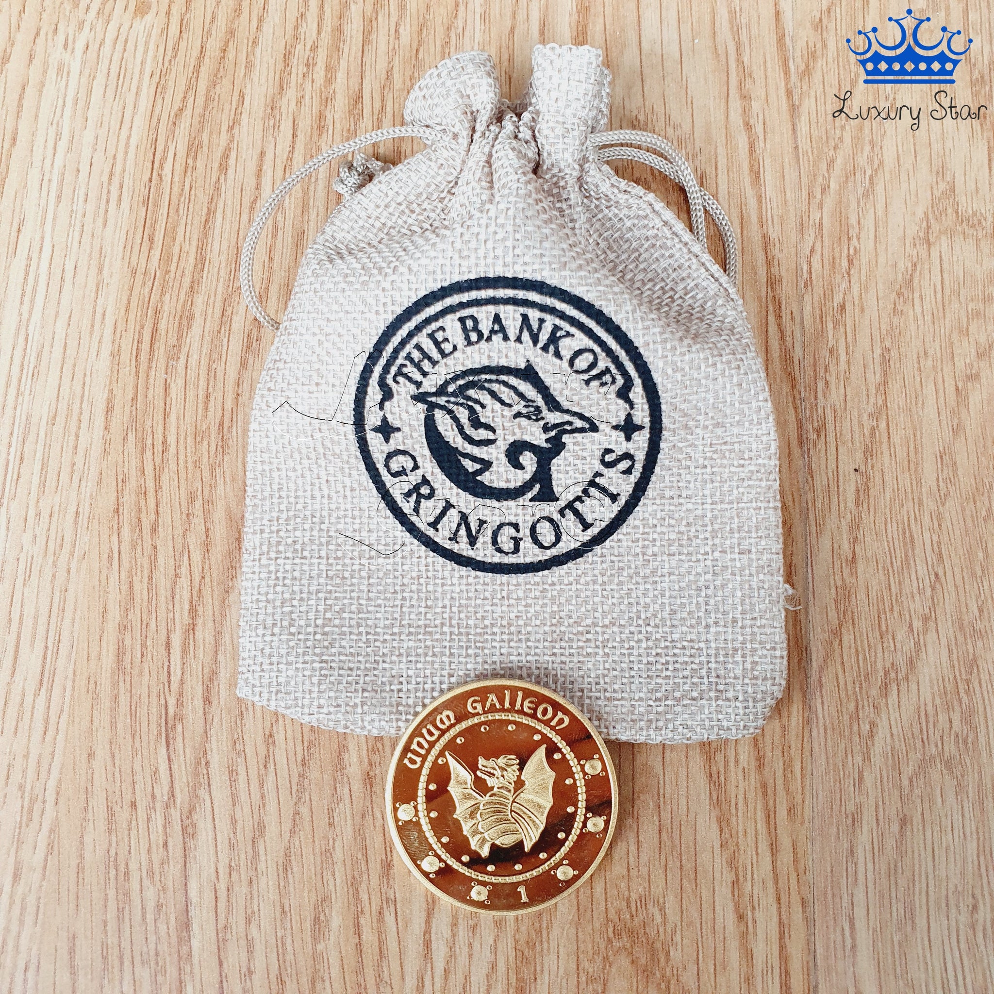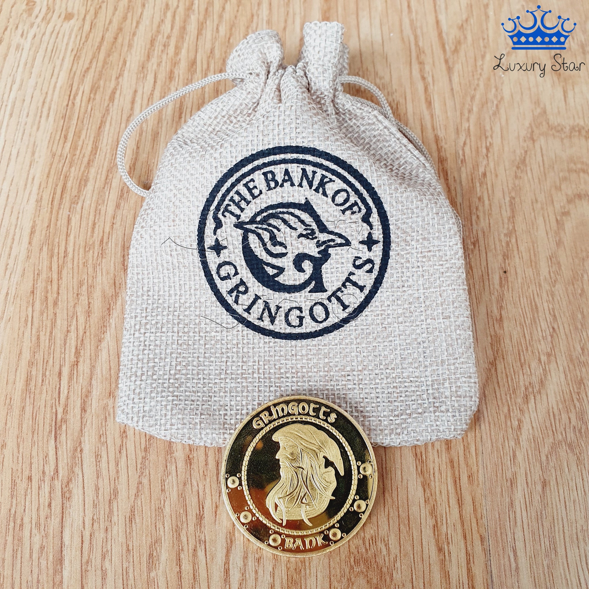 Estas monedas están hechas en aleación de bronce y aluminio, y aunque no tienen valor monetario real, son perfectas para coleccionistas y fanáticos de la saga. Vienen presentadas en una elegante bolsa de fibra, ideal para regalar o exhibir.