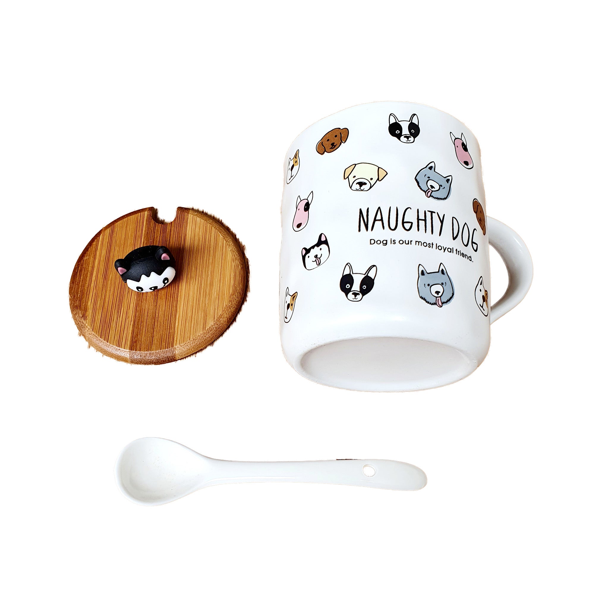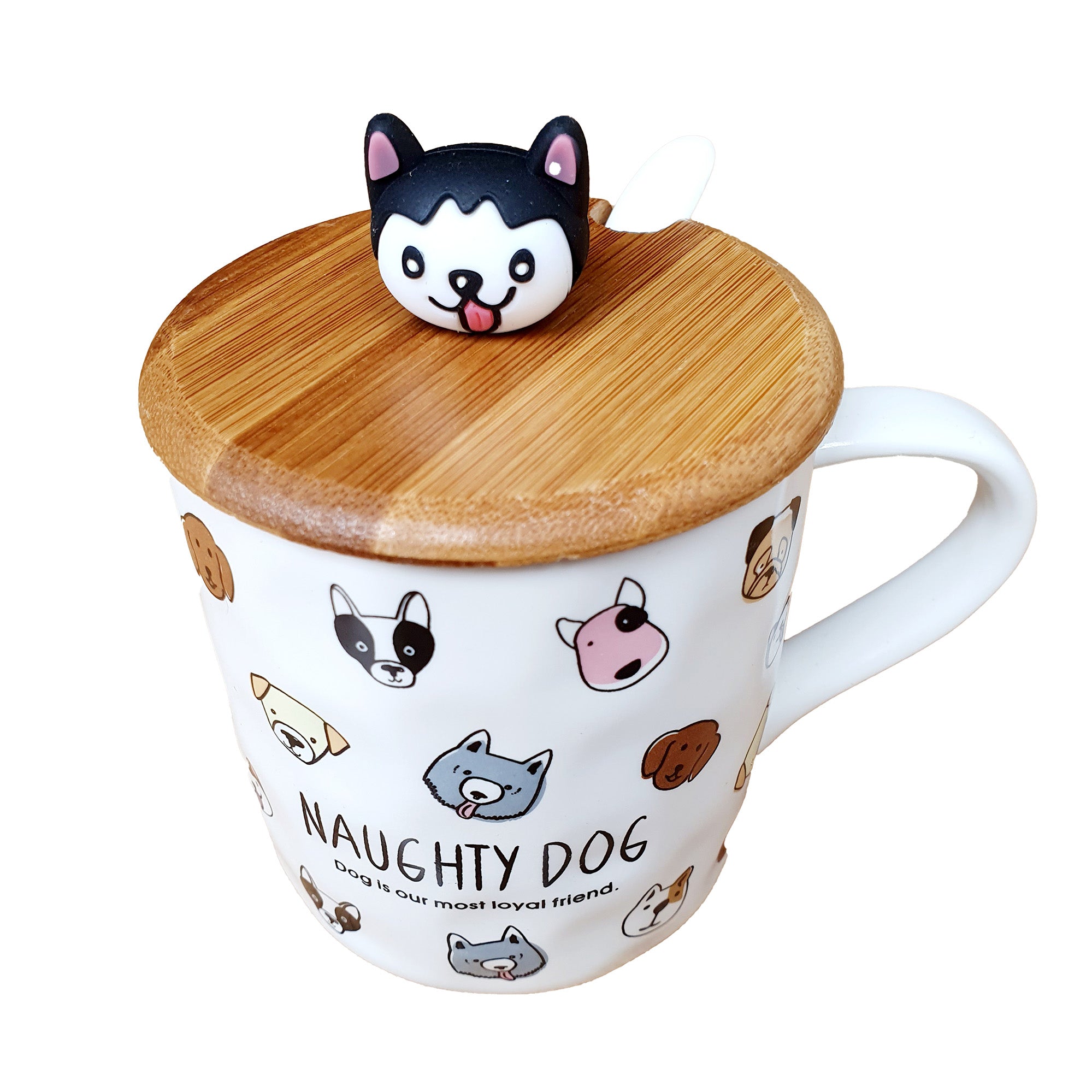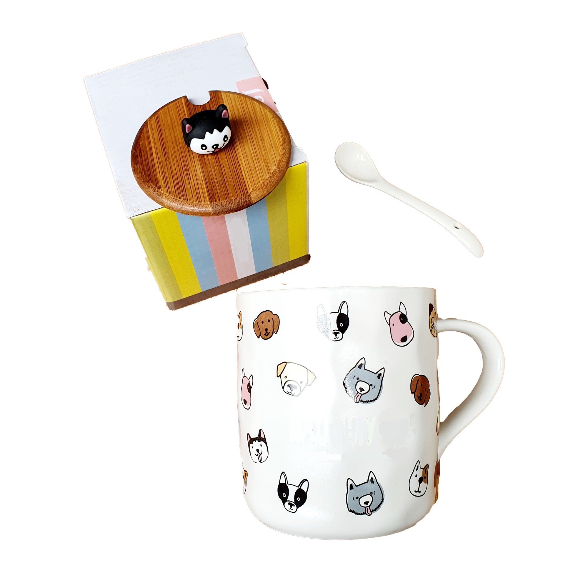 Mug Pocillo Perros Canino Ceramica Detalle + Tapa + Cuchara