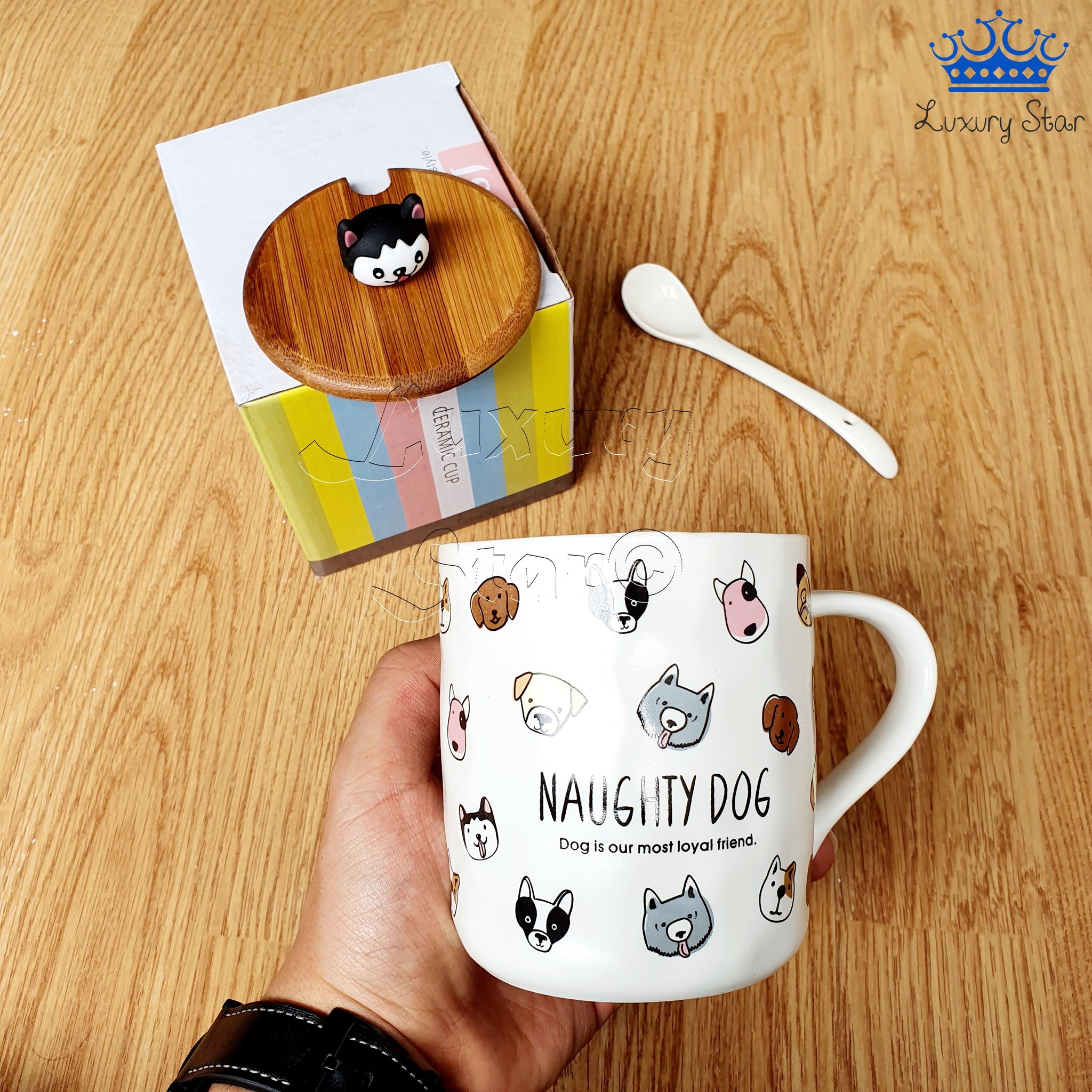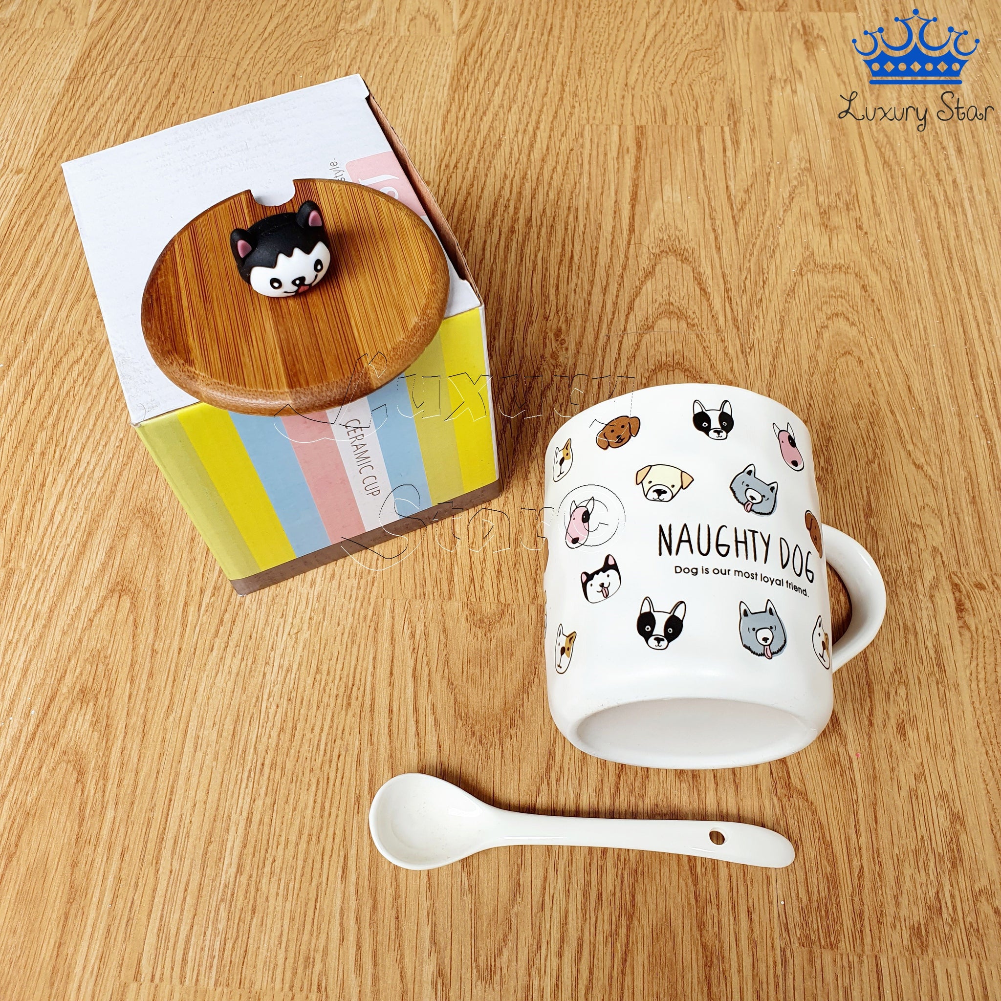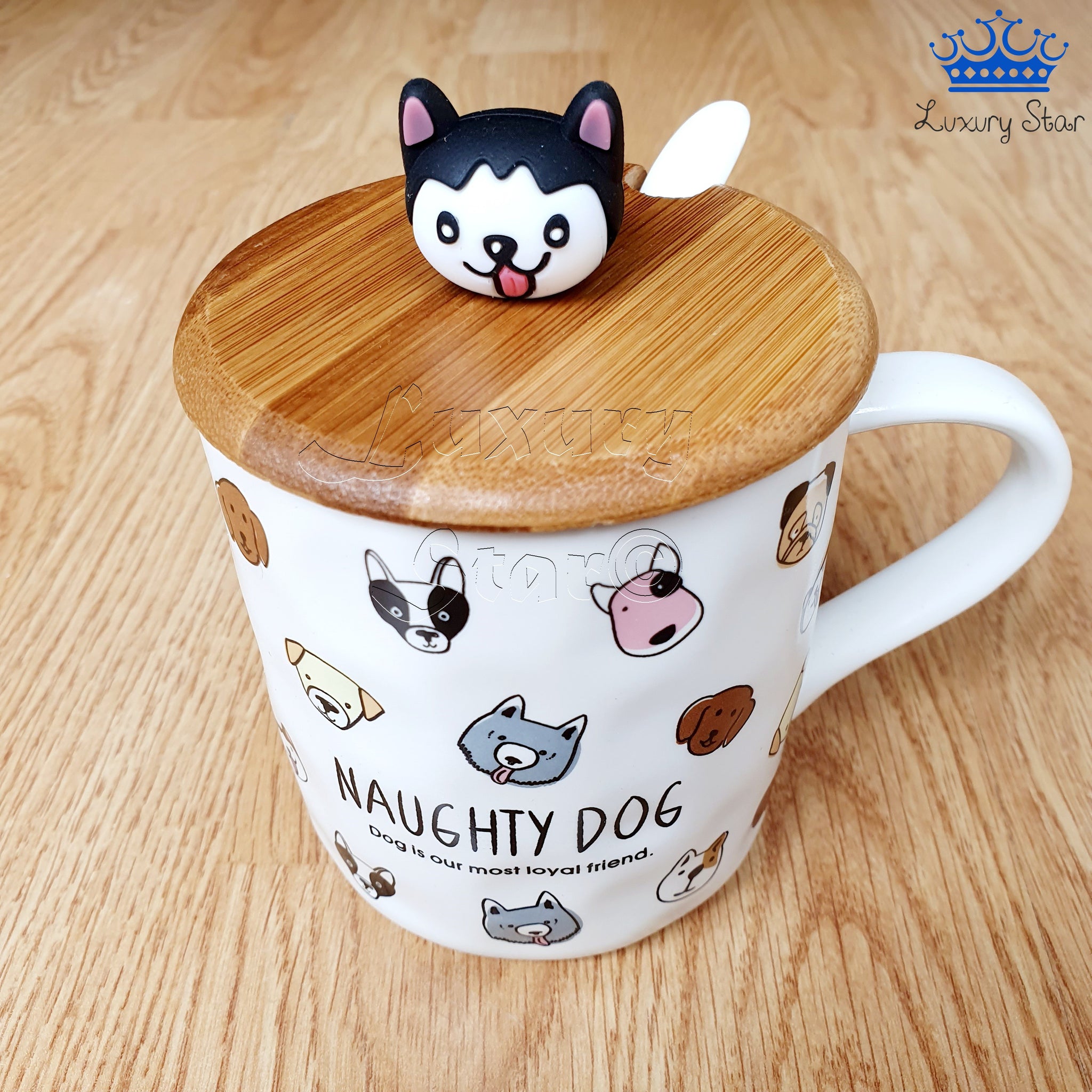 Mug Pocillo Perros Canino Ceramica Detalle + Tapa + Cuchara