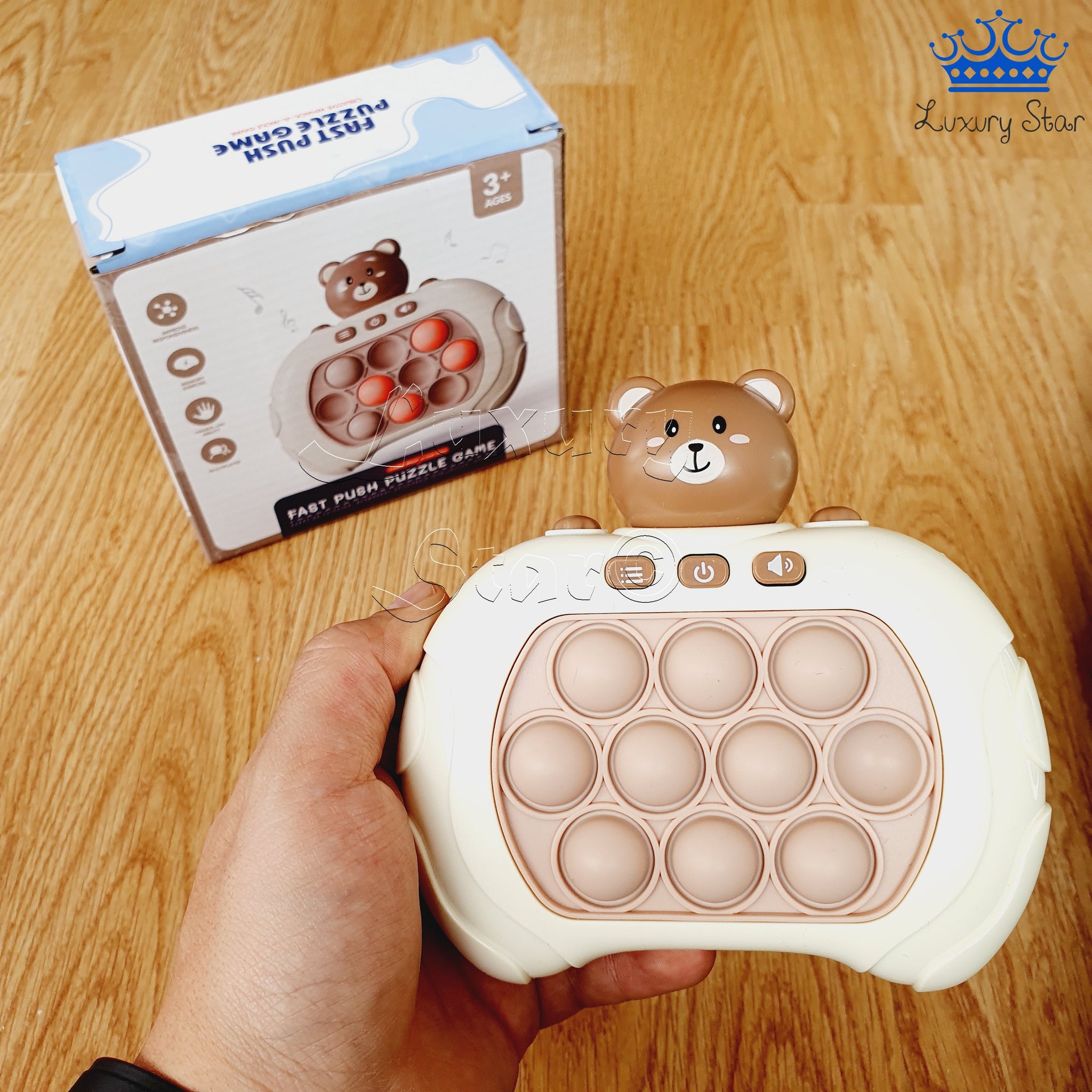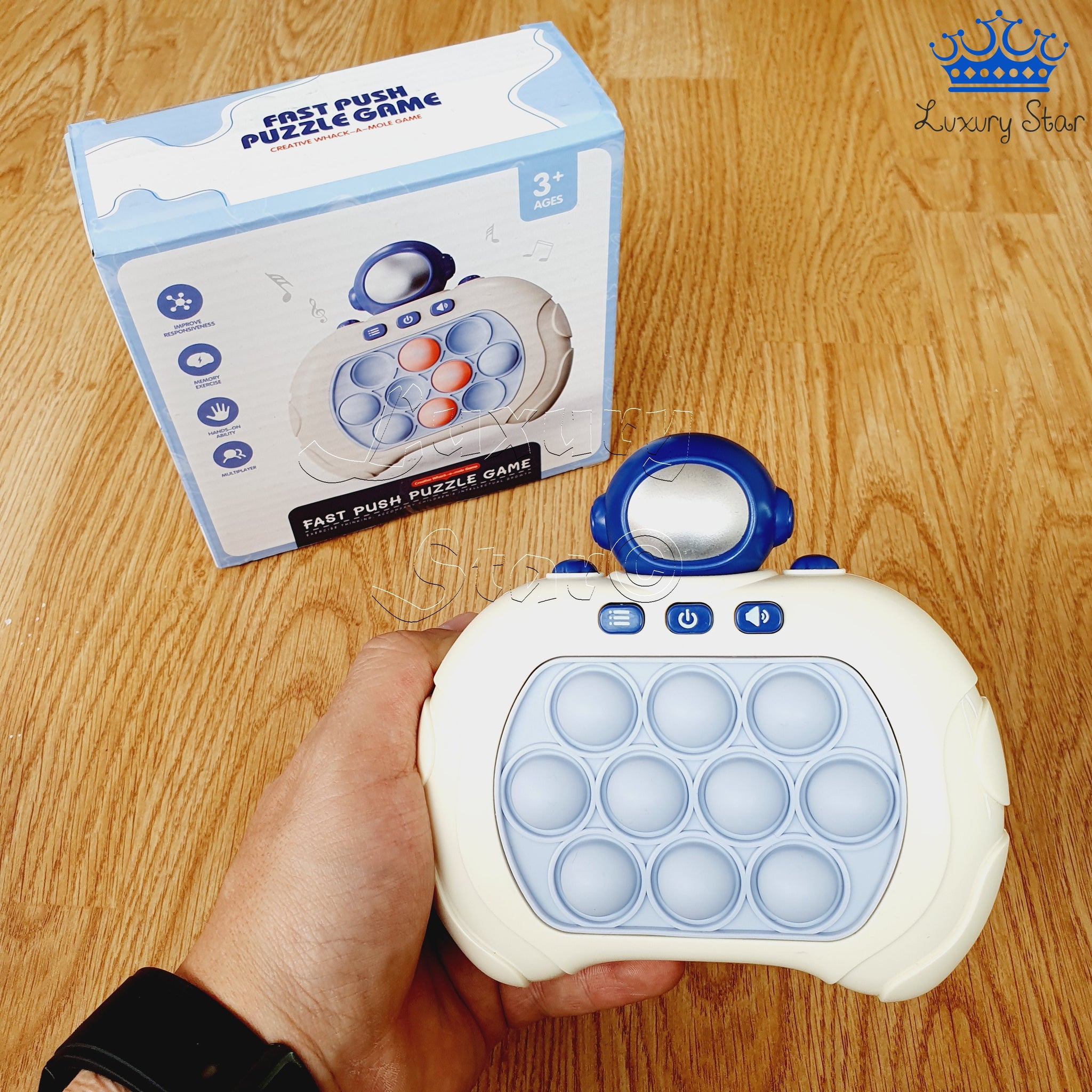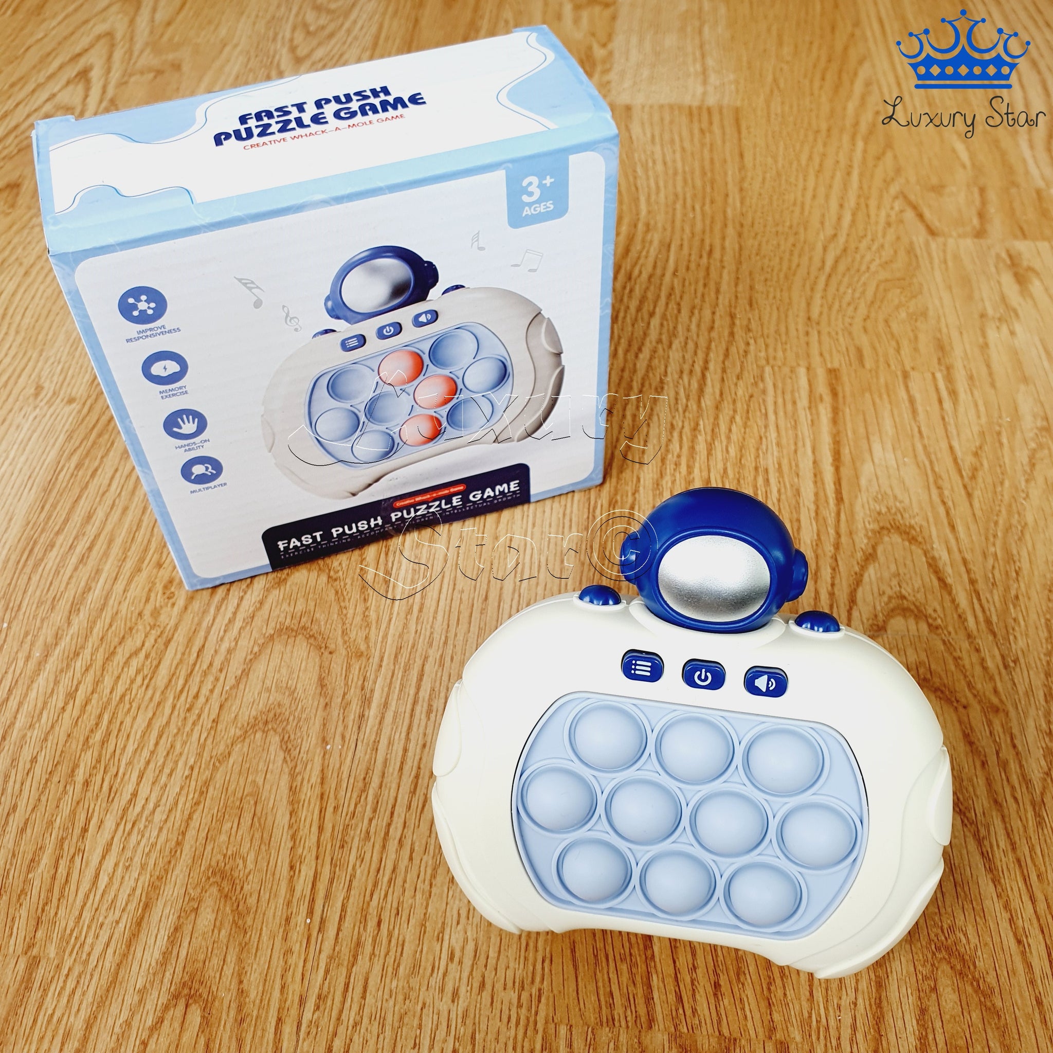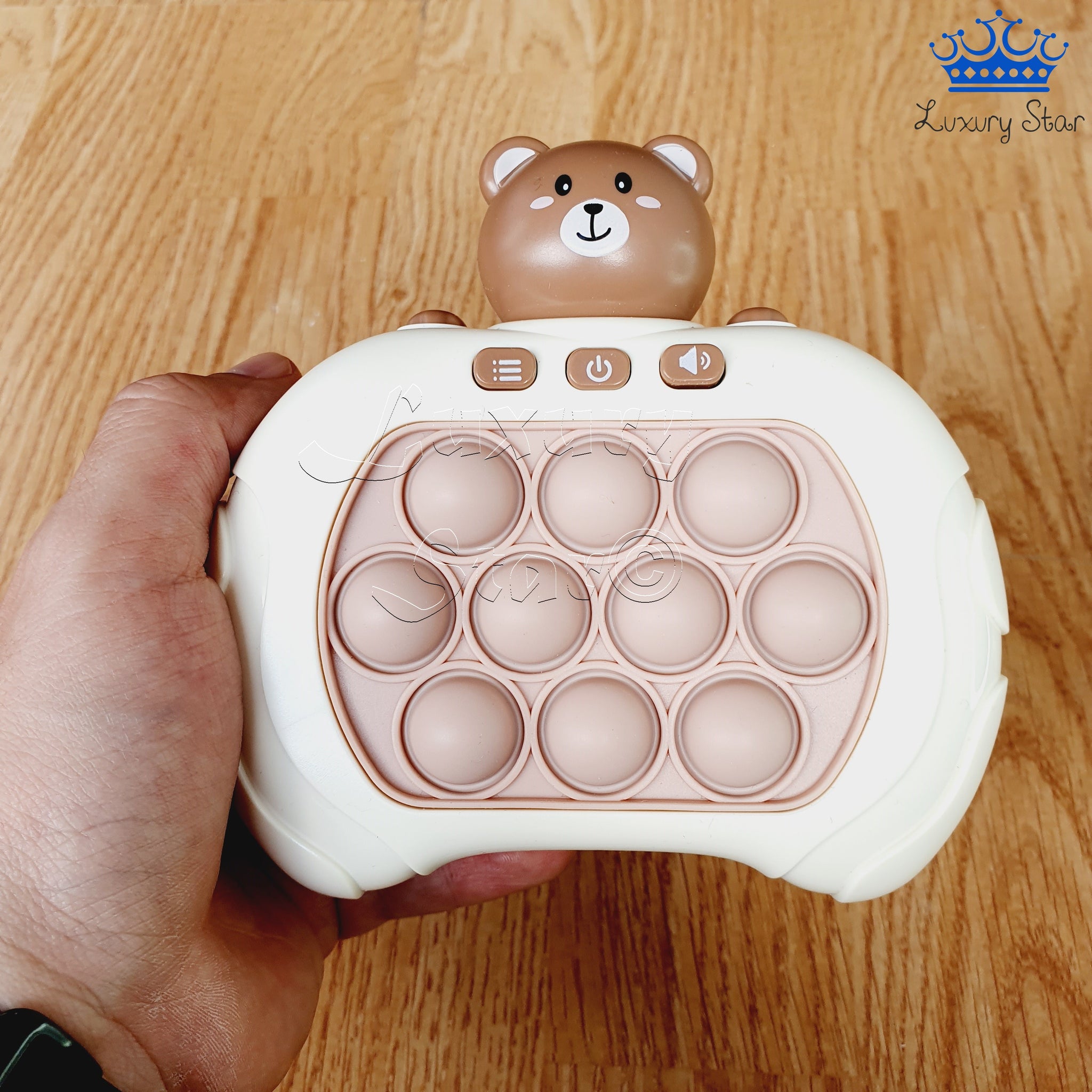 El Pop It Electrónico con figuras renueva el conocido juguete antiestrés que todos adoran. A diferencia del tablero de goma clásico lleno de burbujas, esta versión innovadora está diseñada en plástico con forma de control de videojuegos. El Pop It está incrustado en el centro y cuenta con un mecanismo de empuje en la parte trasera que automáticamente reposiciona las burbujas, eliminando la necesidad de ajustarlas manualmente. Funciona con 3 pilas AAA (no incluidas) y dispone de tres botones para ajustar los modos de juego, encendido/apagado y volumen, además de incorporar música y sonidos para enriquecer la experiencia.