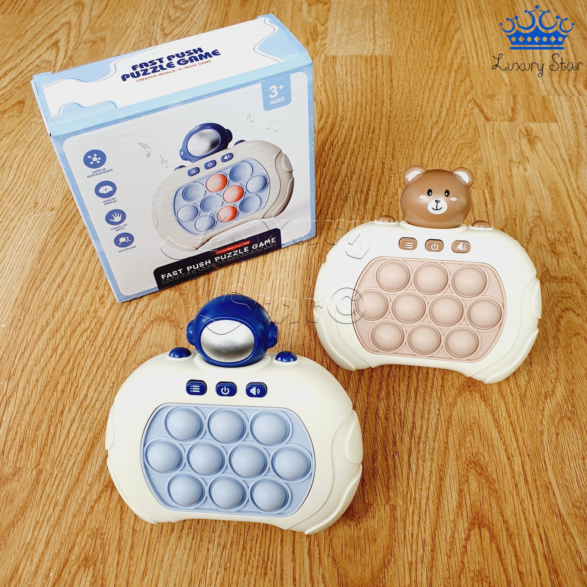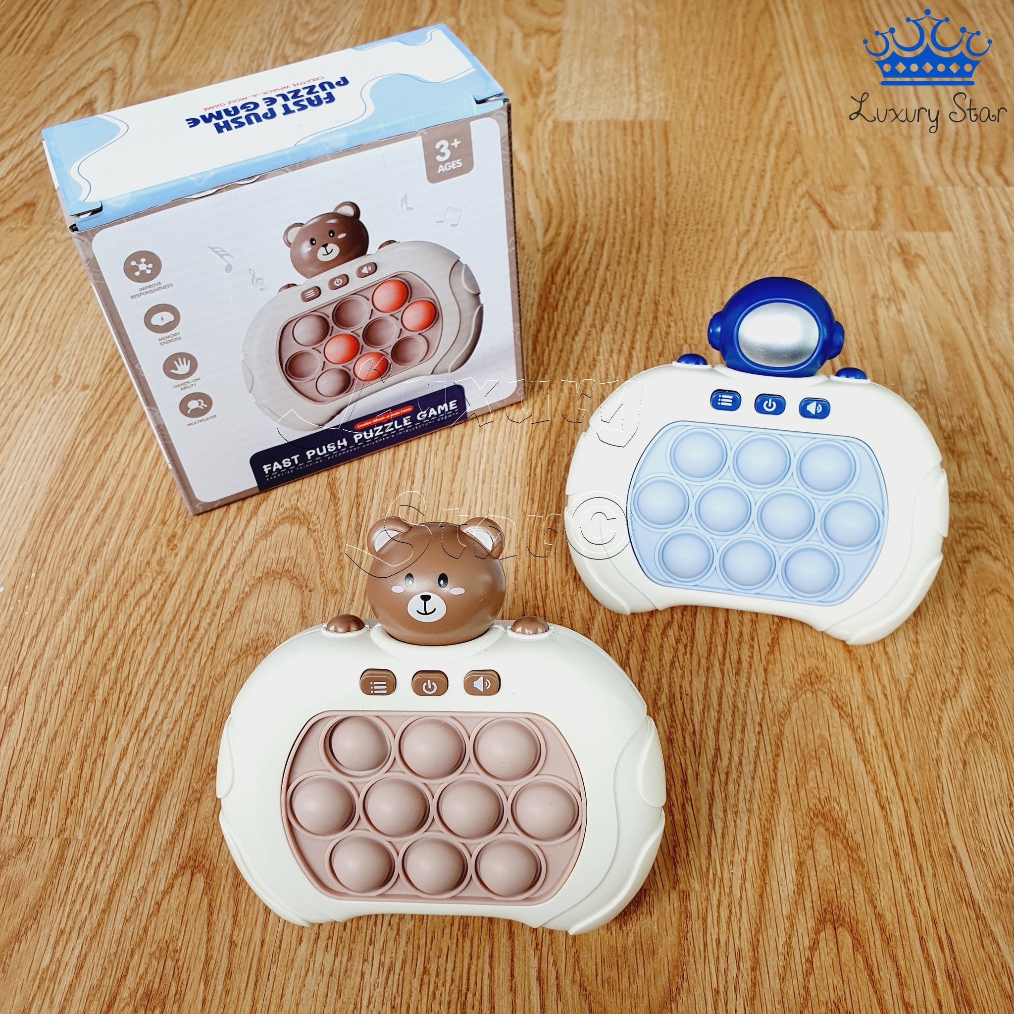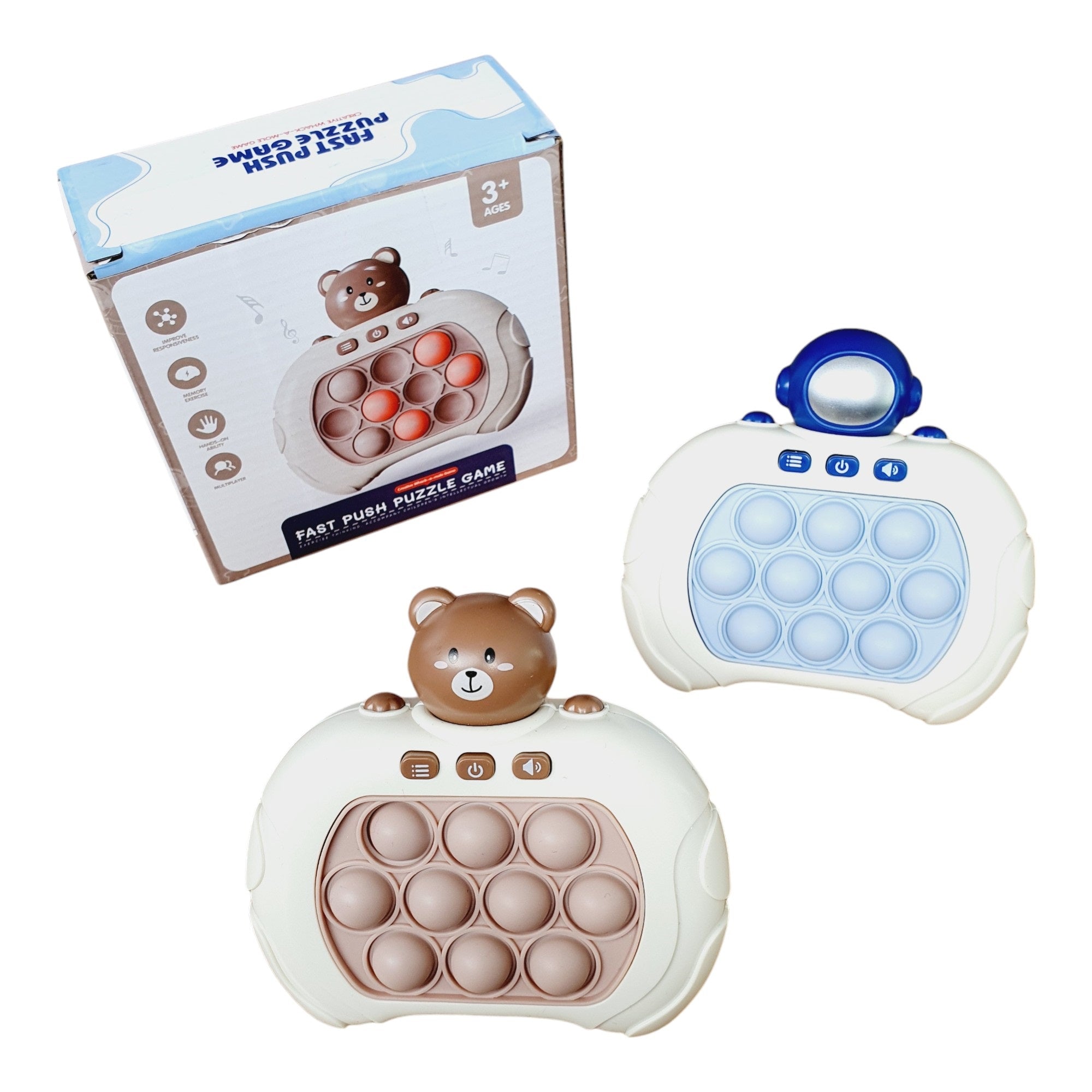 Este Pop It no solo ofrece diversión, sino que también proporciona una herramienta didáctica para mejorar la memoria y aliviar el estrés, adecuada para todas las edades. Está disponible en dos atractivos diseños: oso café y astronauta azul, haciendo de cada versión una pieza única para coleccionar o regalar.}