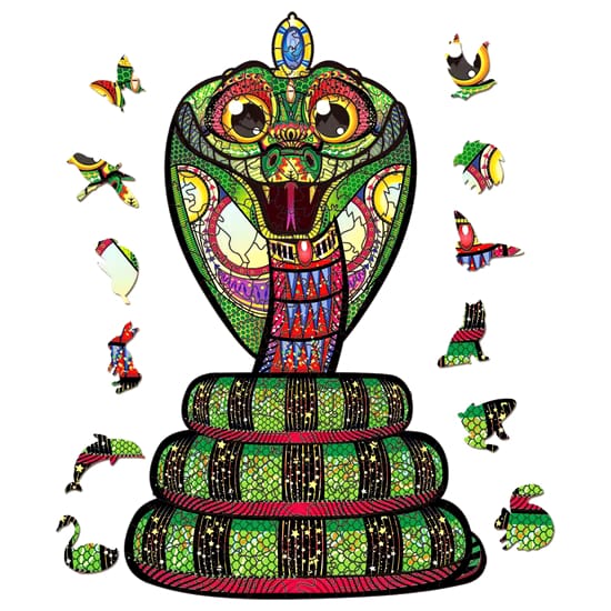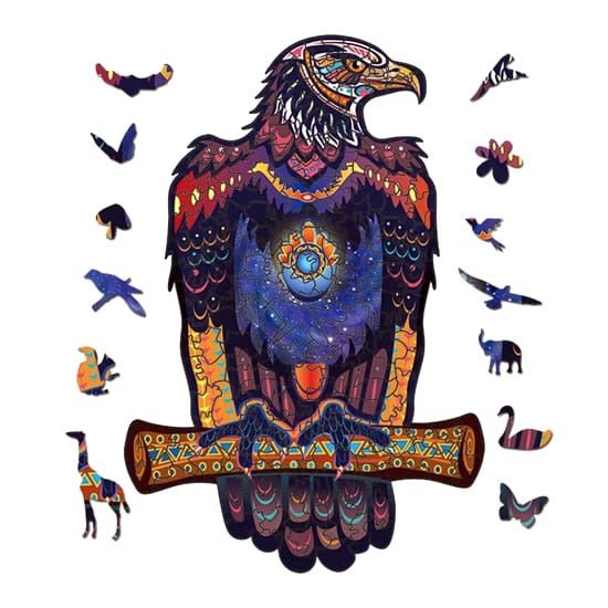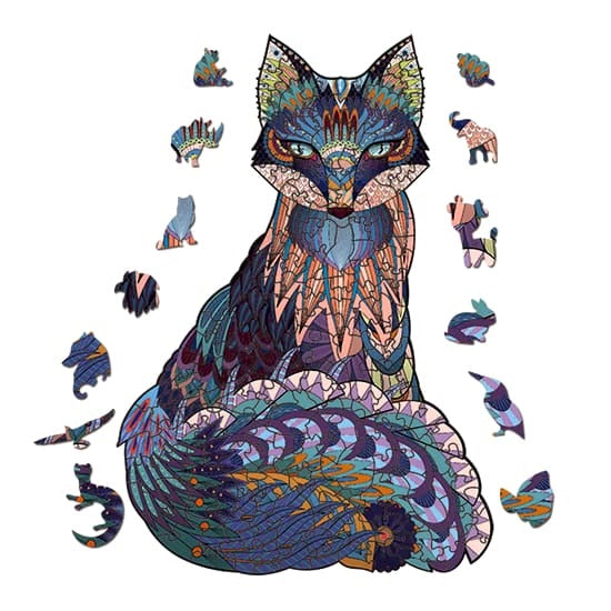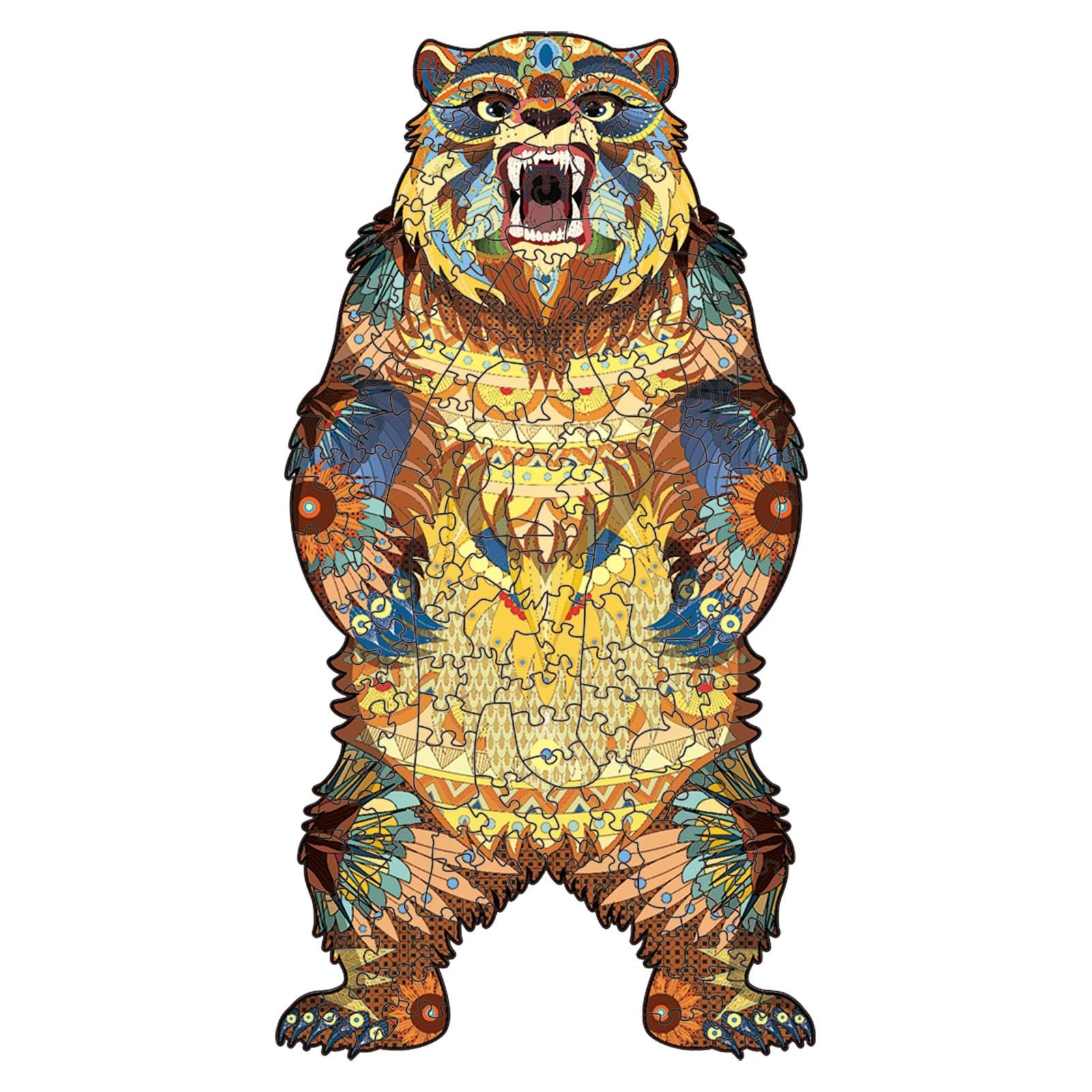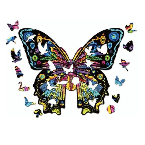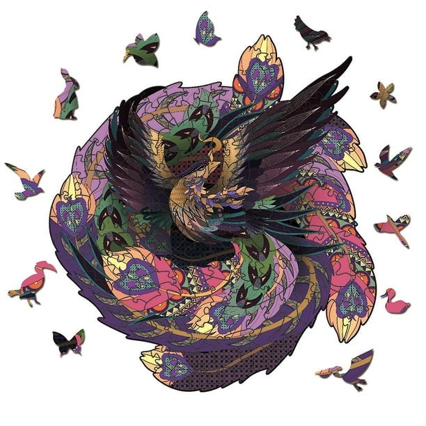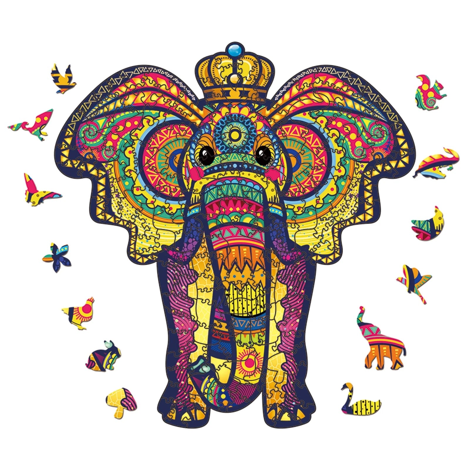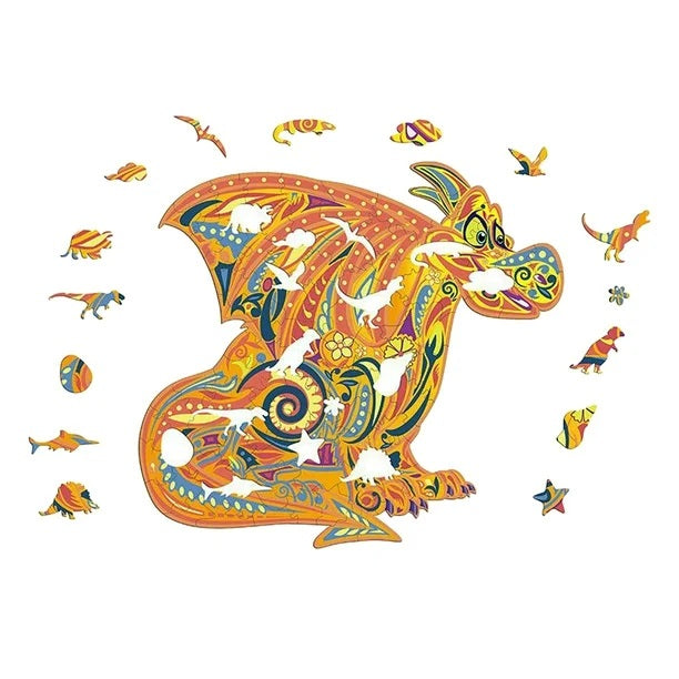 Rompecabezas artístico de madera con formas de animales y piezas coloridas. Ideal para niños y adultos.