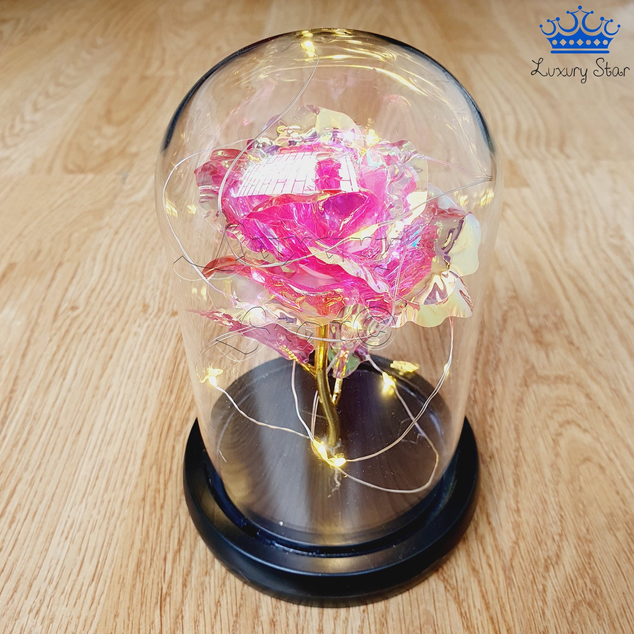 Rosa Eterna Rosada Tornasol Luces Led Alumbra Flor Regalo