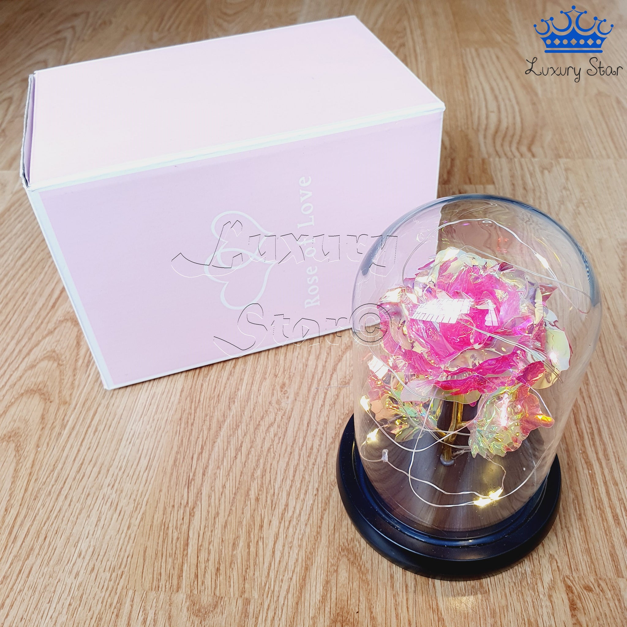 Incluye: 1 rosa eterna tornasol con luz LED en su caja.