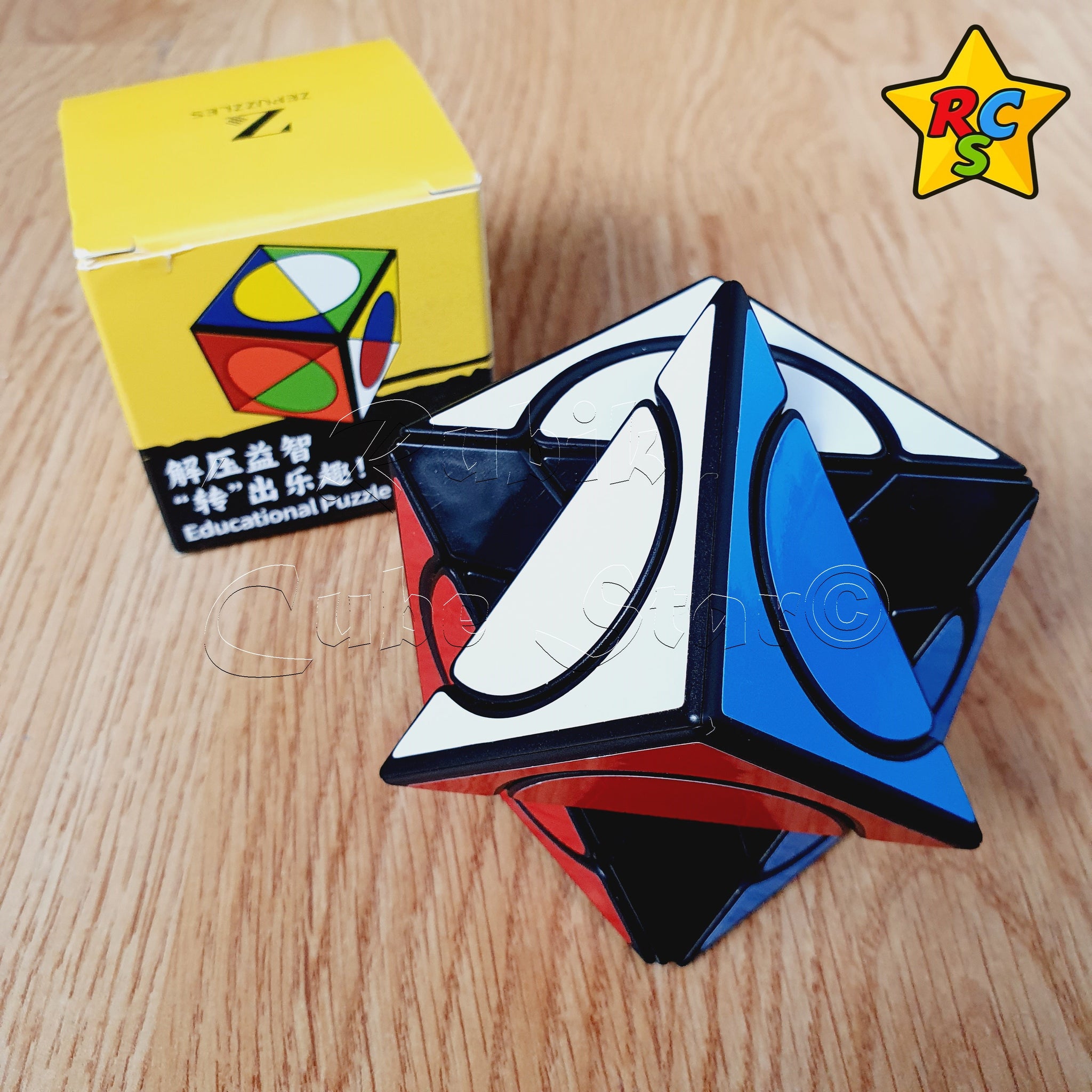 Cubo modificado tipo dino con giros circulares crazy y diseño elegante de fondo negro.