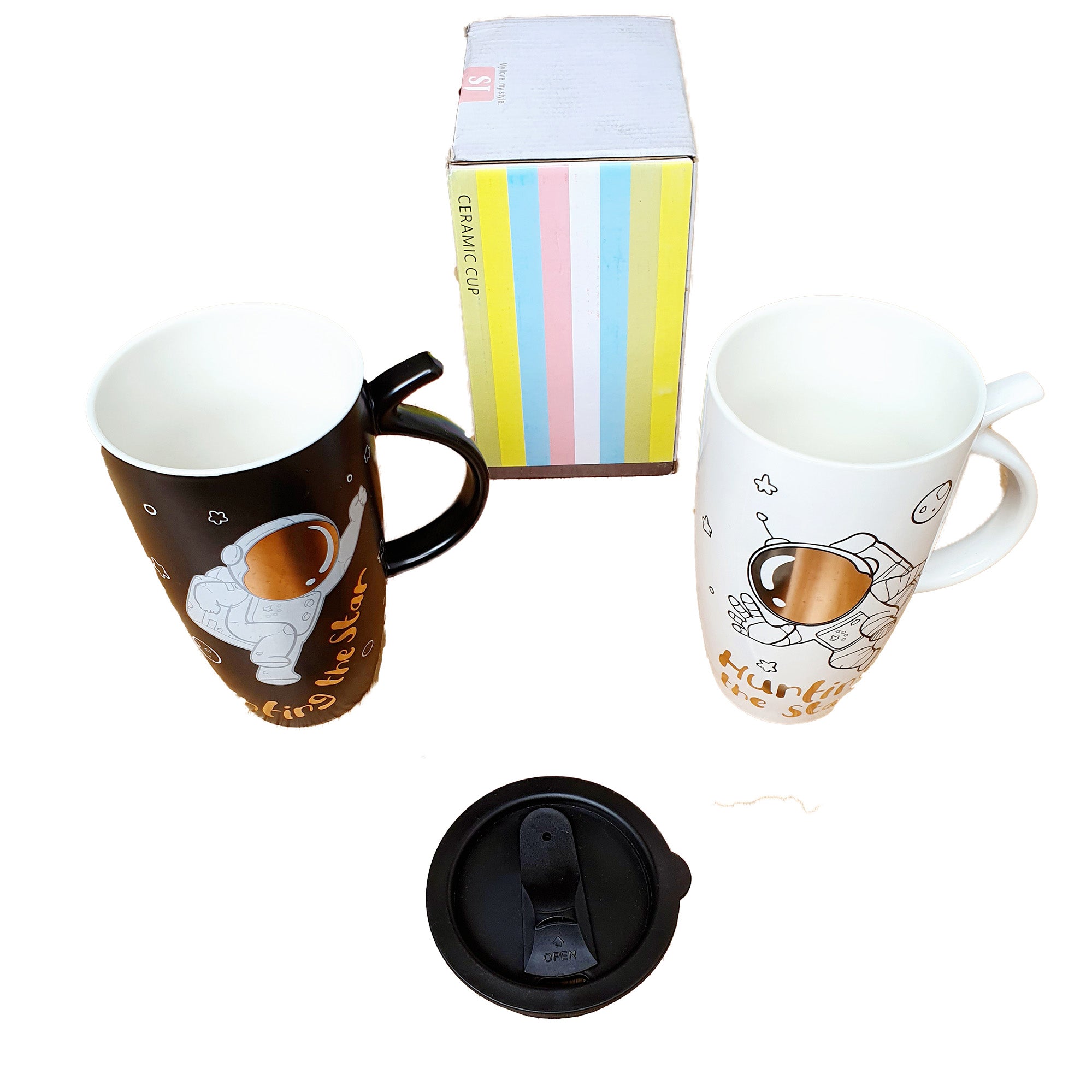 Este Termo mug taza con motivo de astronauta es un excelente detalle para tener con esa persona especial, esta elaborado en cerámica, con un acabado liso y fino, incluye un pitillo de acero inoxidable, una tapa plástica con cierre deslizable y un caucho en la tapa para mantener el calor de las bebidas.Este Termo con hermoso diseño de Astronautas es perfecto para esos días de frío o para decorar cualquier parte de tu casa o trabajo.