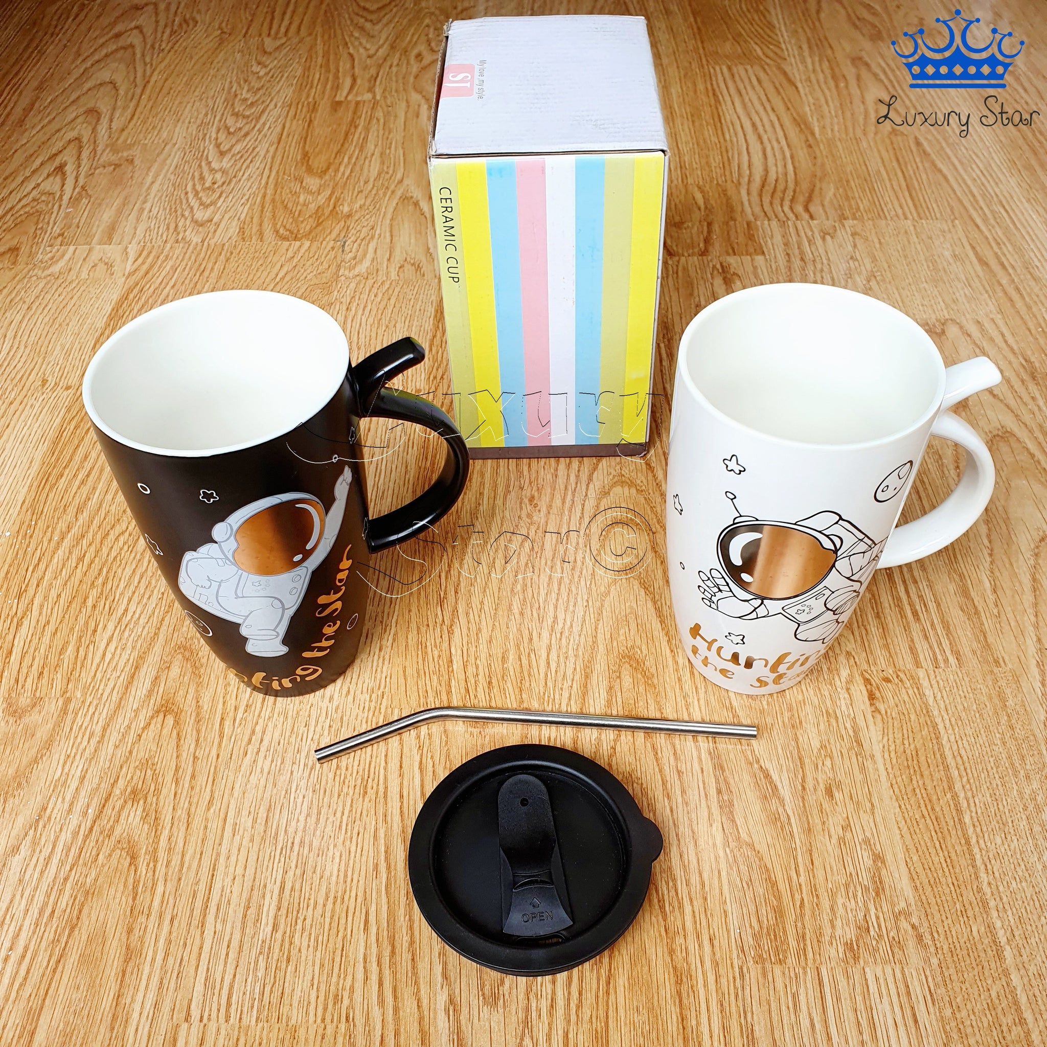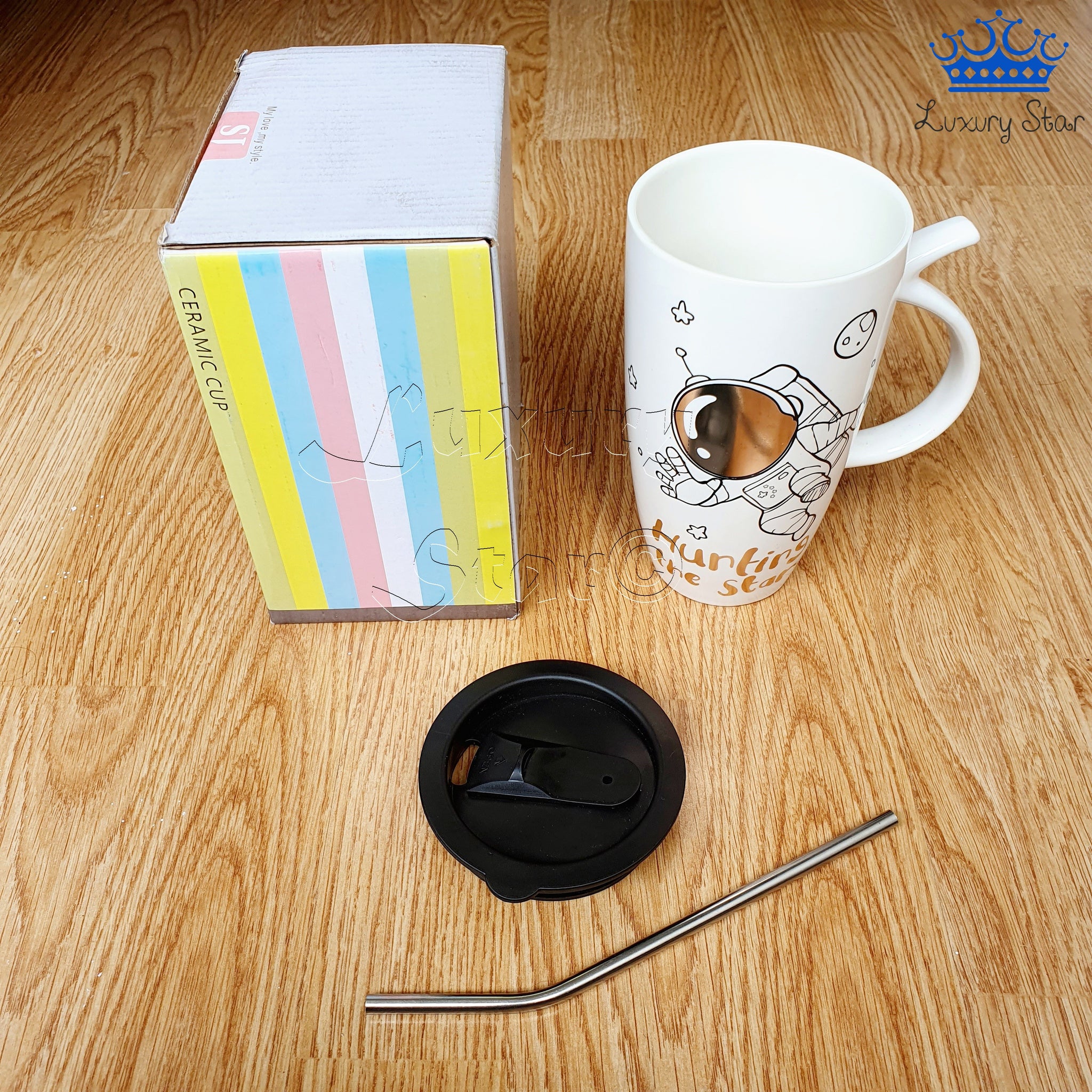Termo Taza Astronauta Ceramica Mug Espacio Detalle + Pitillo